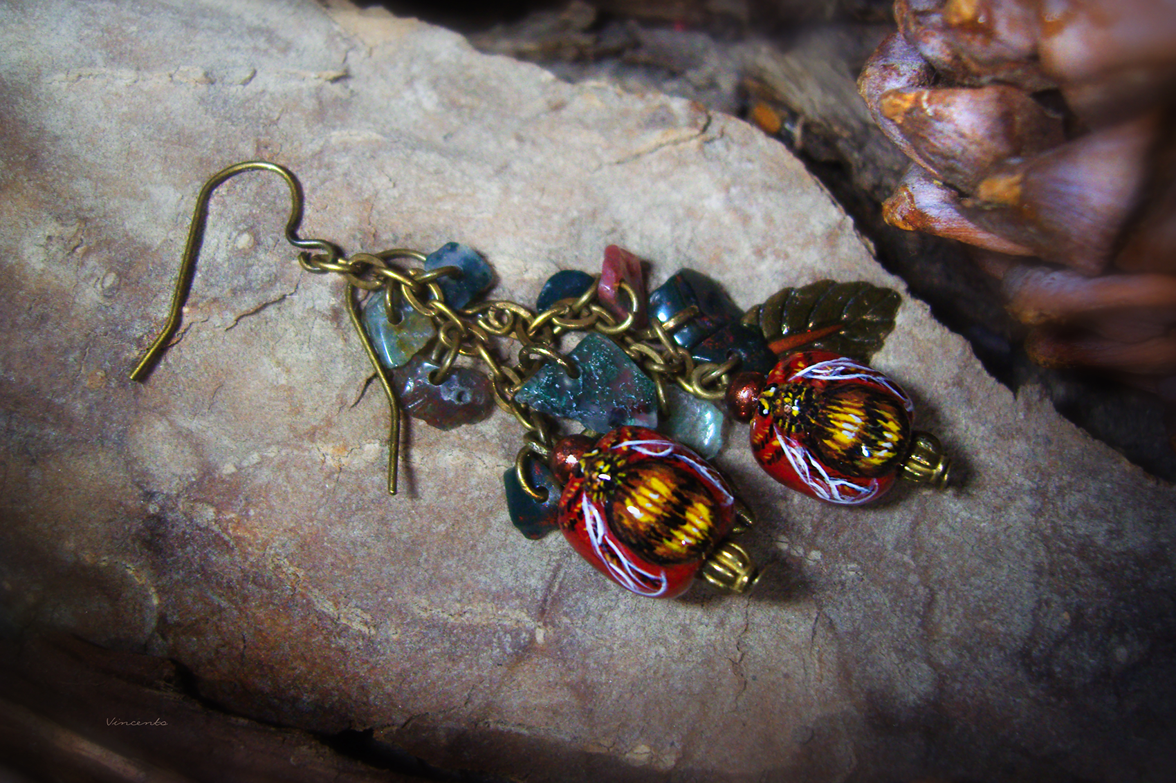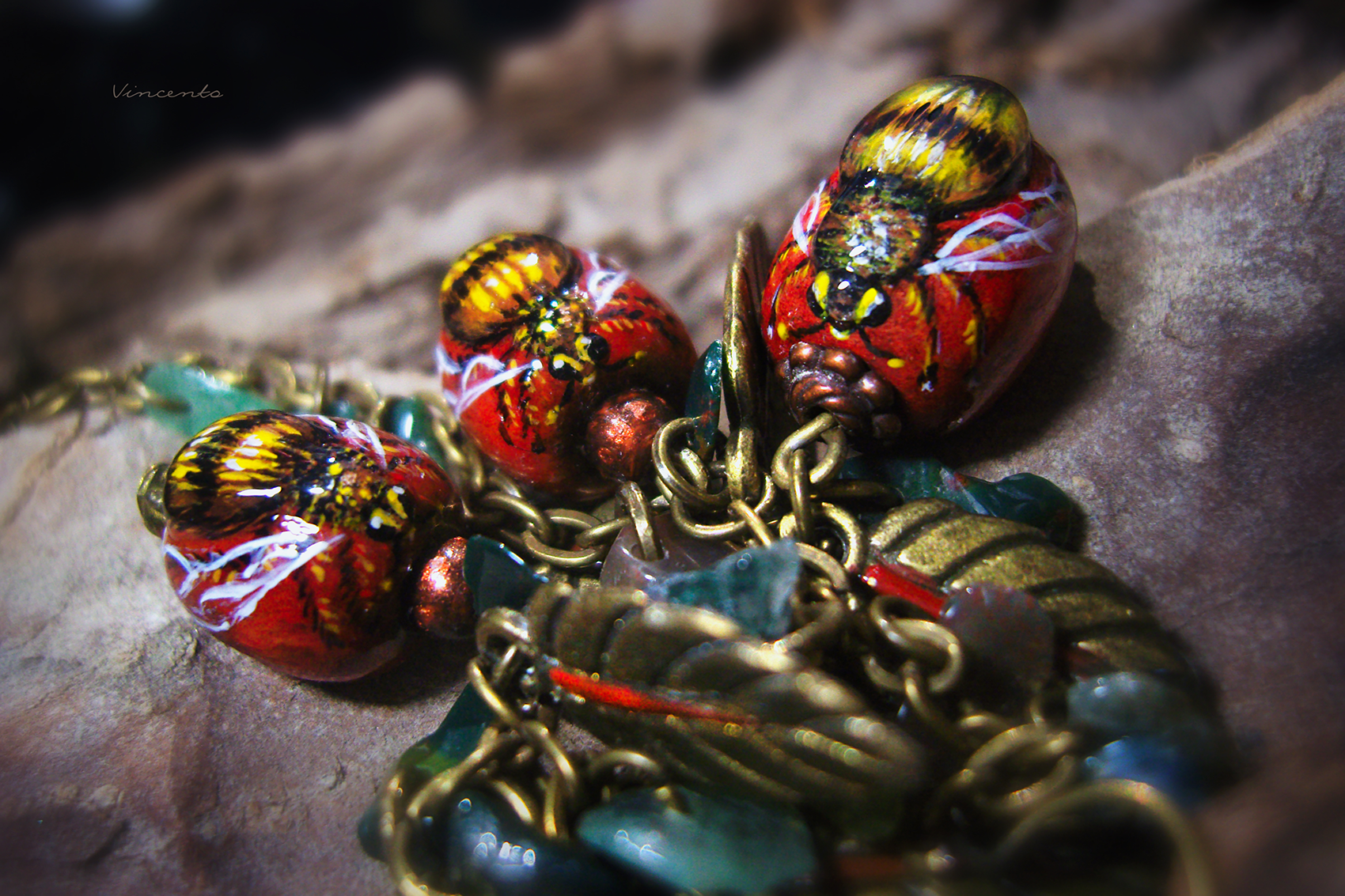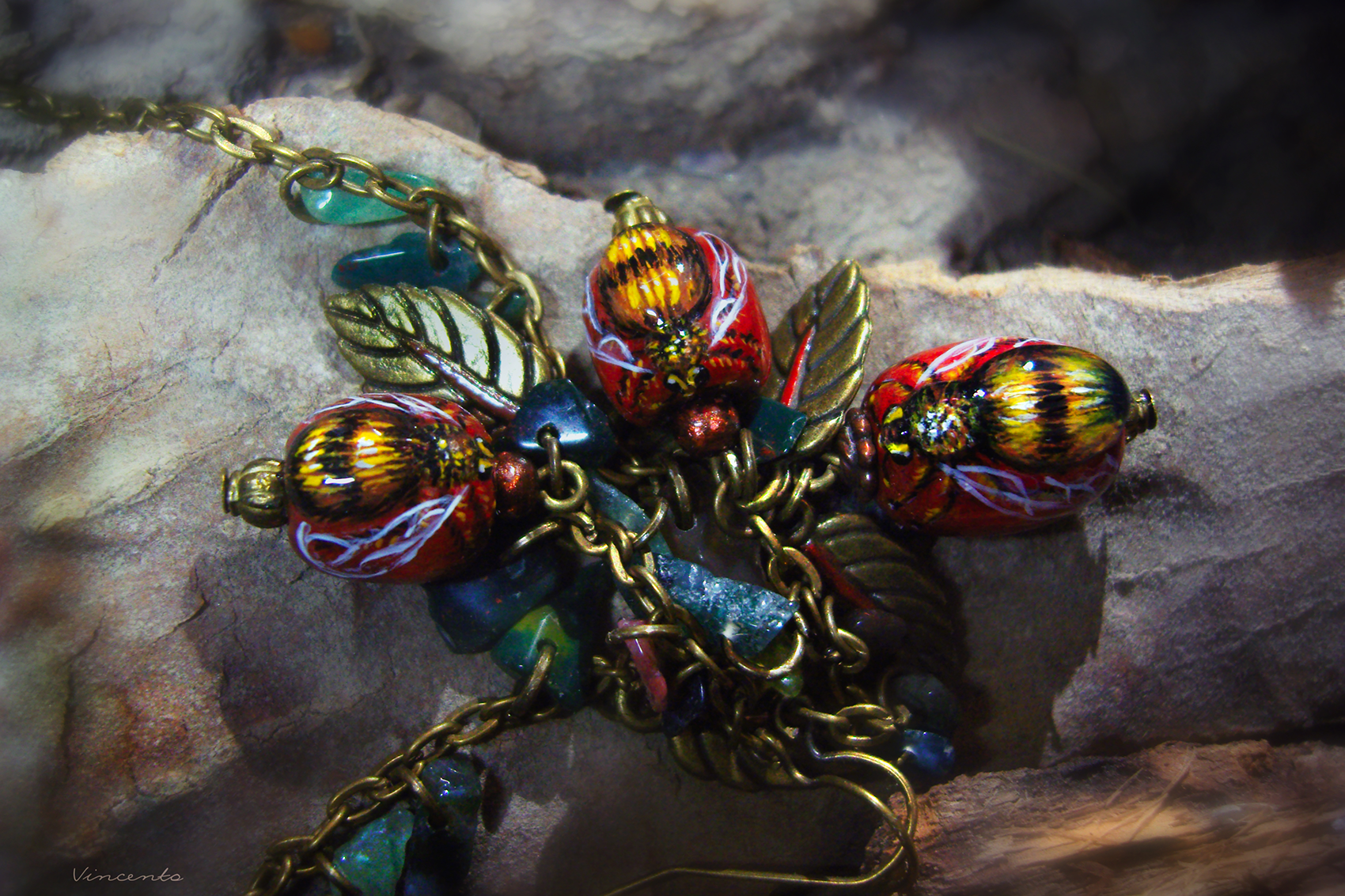 - Материалы: деревянные бусины, металлическая фурнитура, акриловые краски, пигменты, лак, стекловидная масса, натуральный кварц.