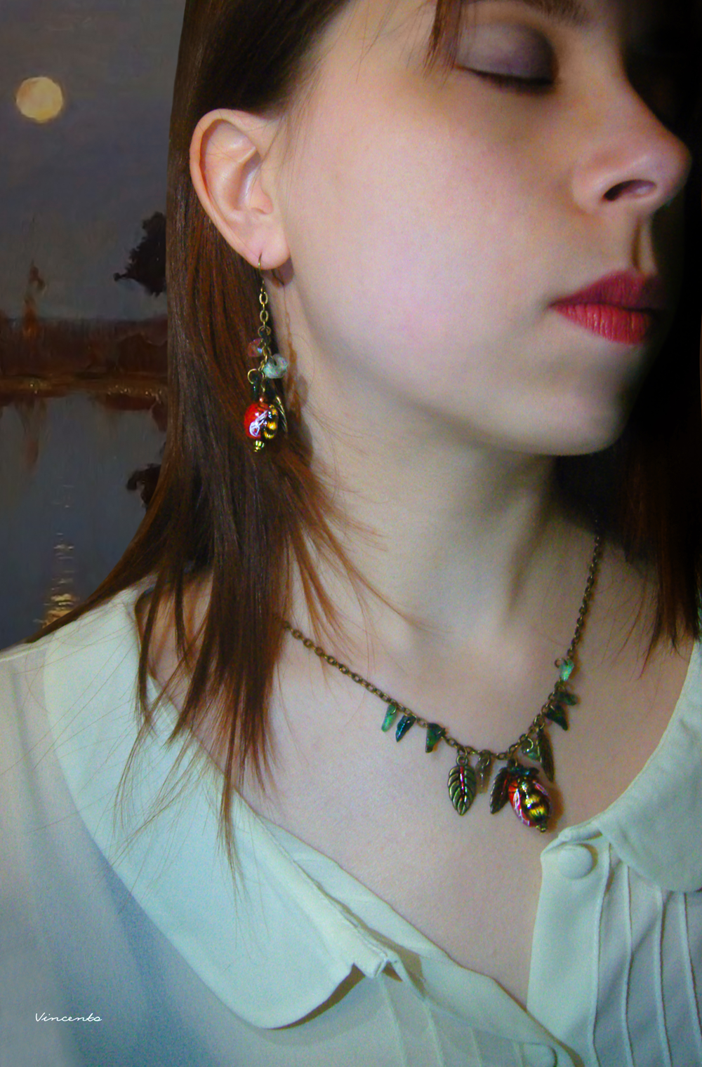 Точную копию этого комплекта украшений мы не делаем. Но мы можем предложить изготовить украшения в похожей стилистике. Для этого, пожалуйста, напишите нам через форму обратной связи, на WhatsApp или на электронный адрес: mail@legendavincento.ru