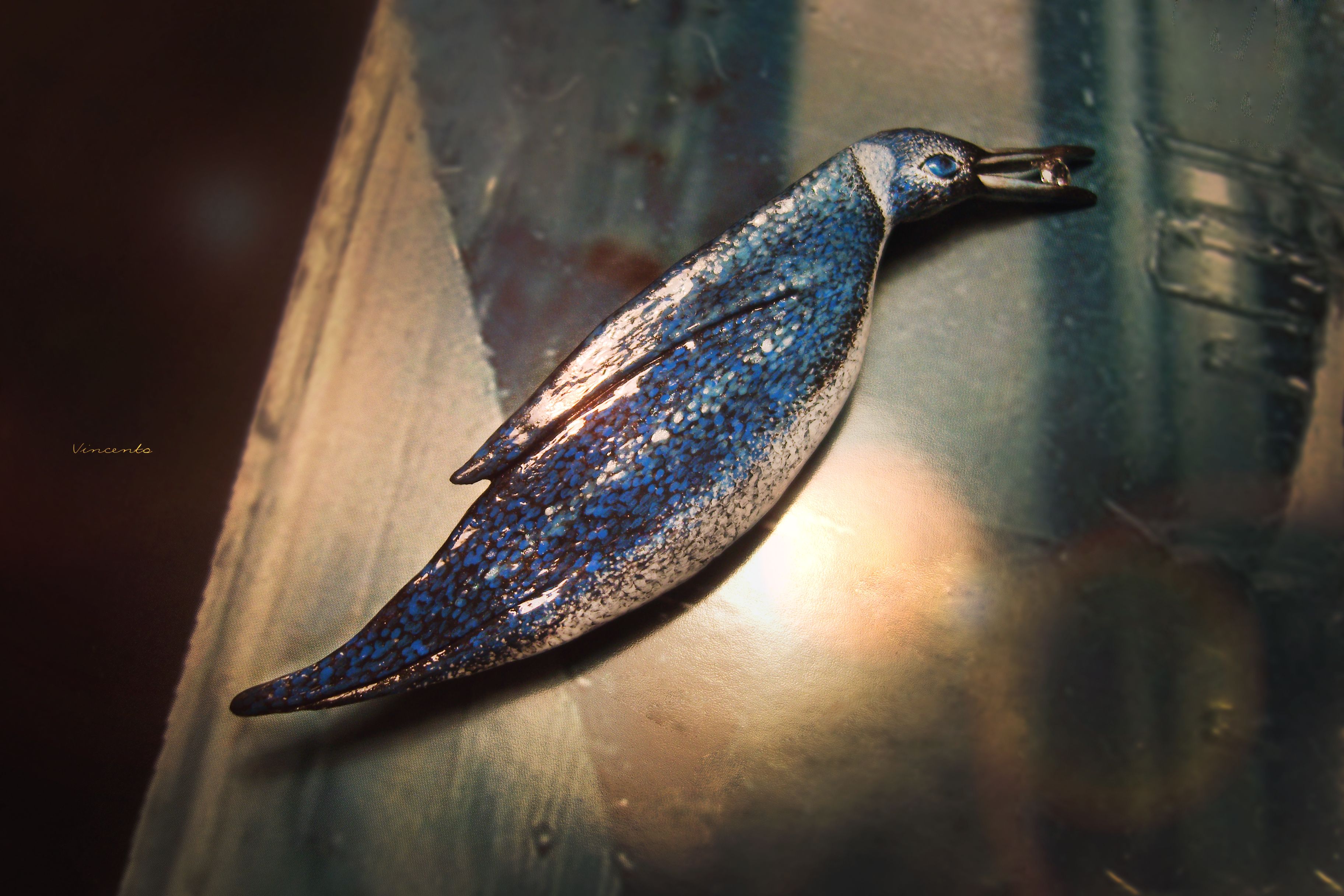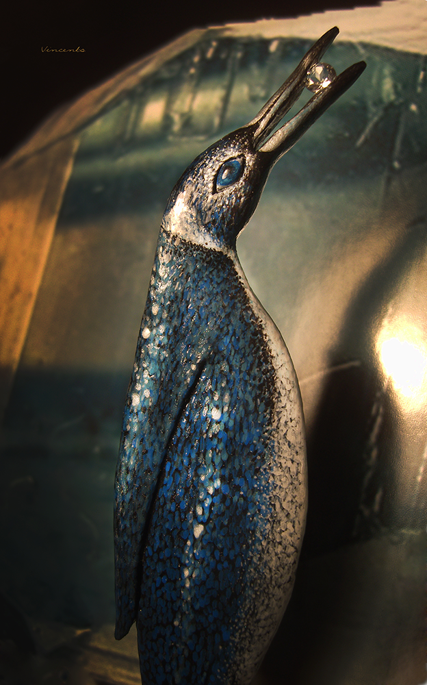 - Волшебная брошь в виде пингвина Мерилии с гранёным камешком натурального морганита.