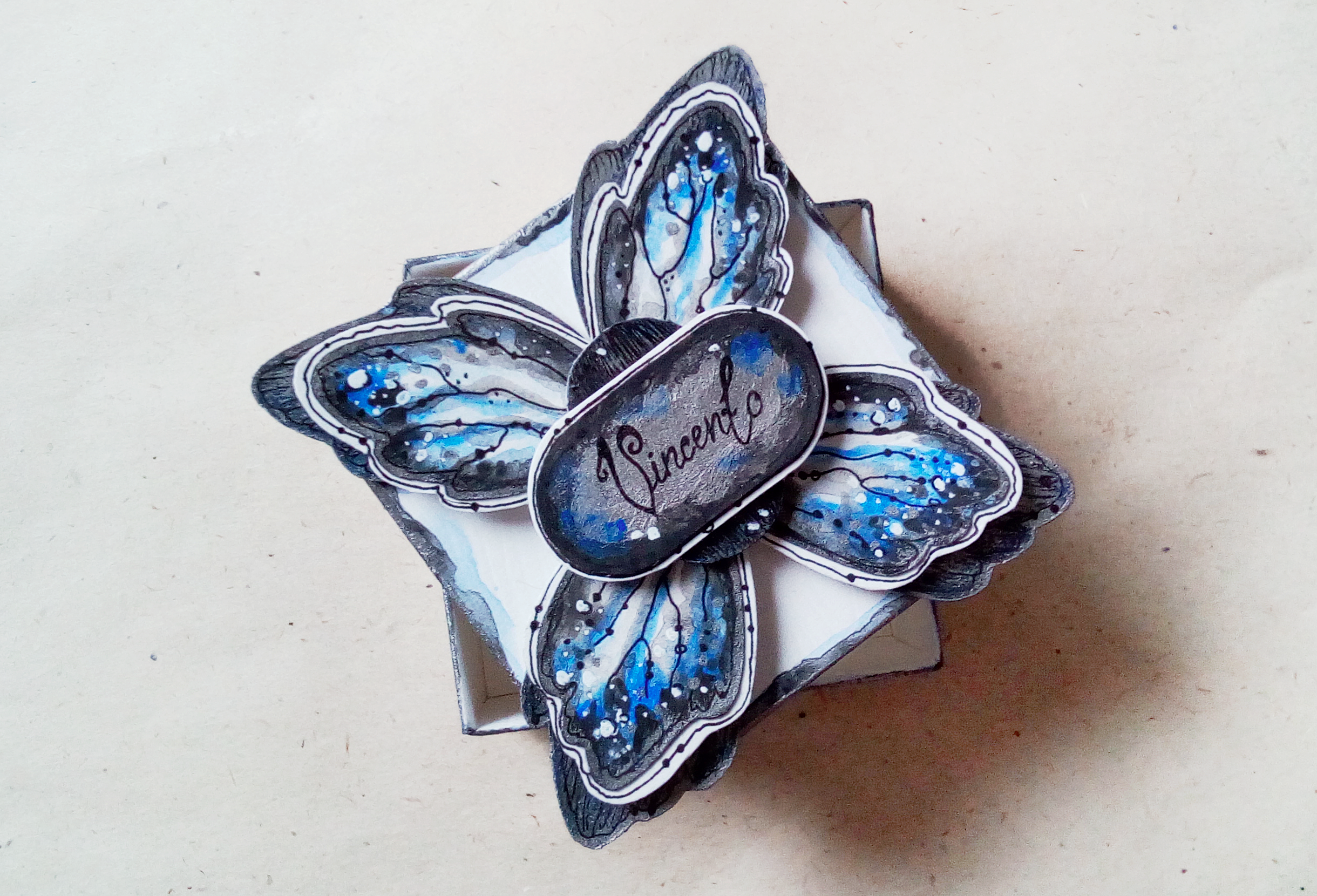 - Крышечка оформлена объёмными 3D-элементами в стиле pop-up открыток, роспись выполнена вручную несколькими видами красок и цветных лайнеров.