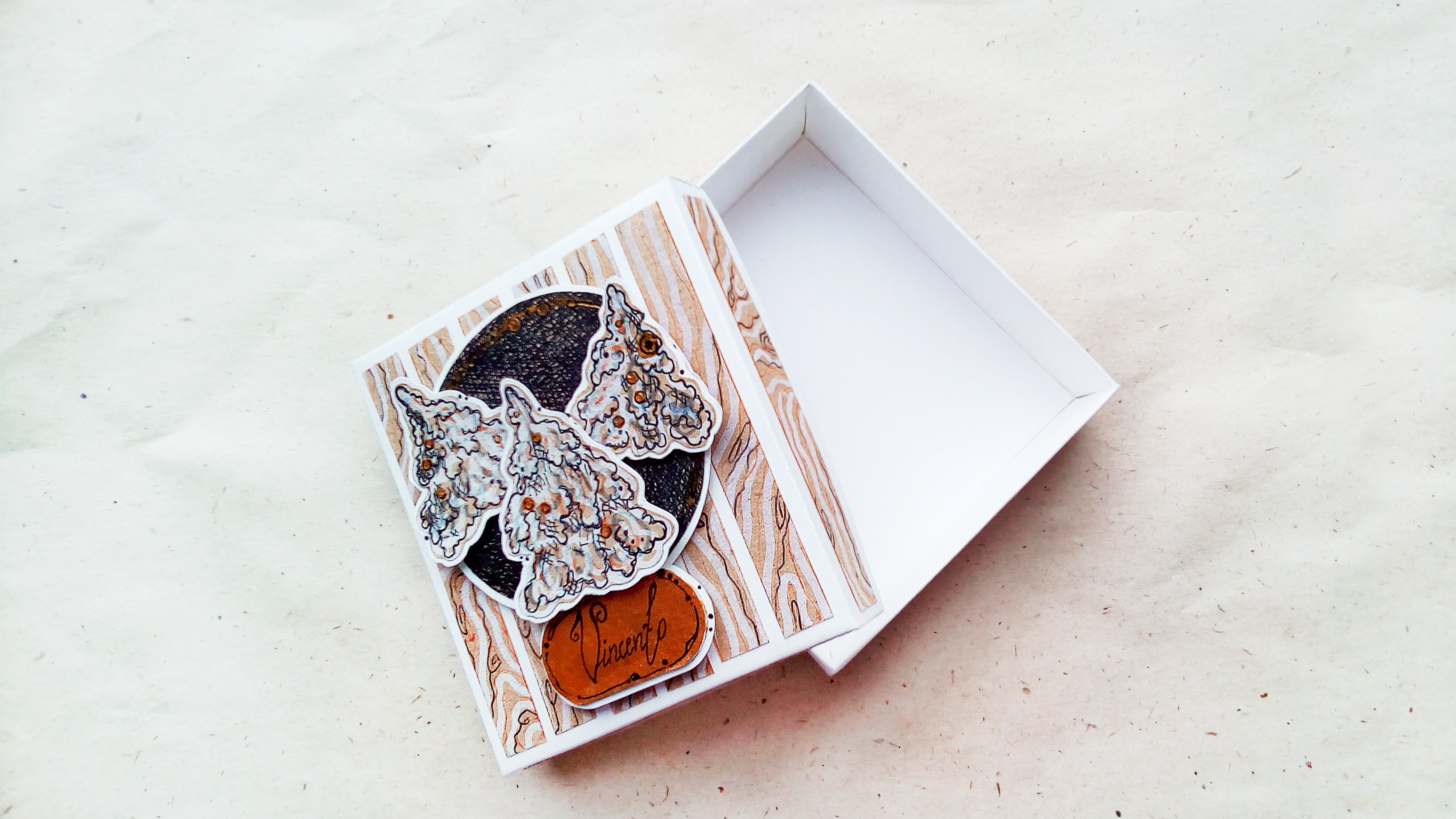 - Всё оформление коробочки построено вокруг образа украшения, которое вы будете в ней дарить, дизайны не повторяются и прорабатываются для каждого нового заказа с нуля!