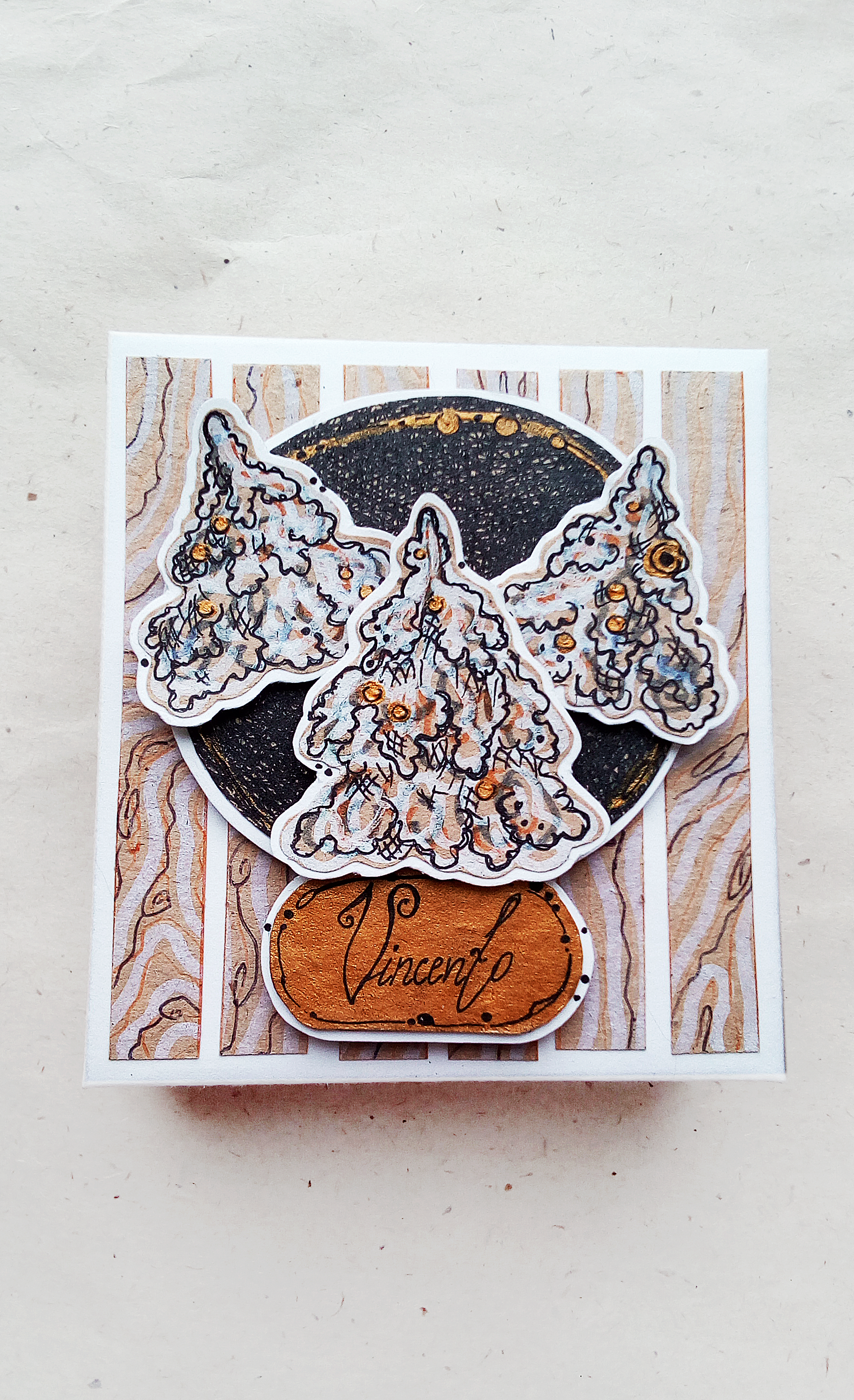 - Материалы: плотная дизайнерская бумага или картон, клеи, акриловая лента, пигменты, лаки, акварельные или акриловые краски, масляная пастель, лайнеры.