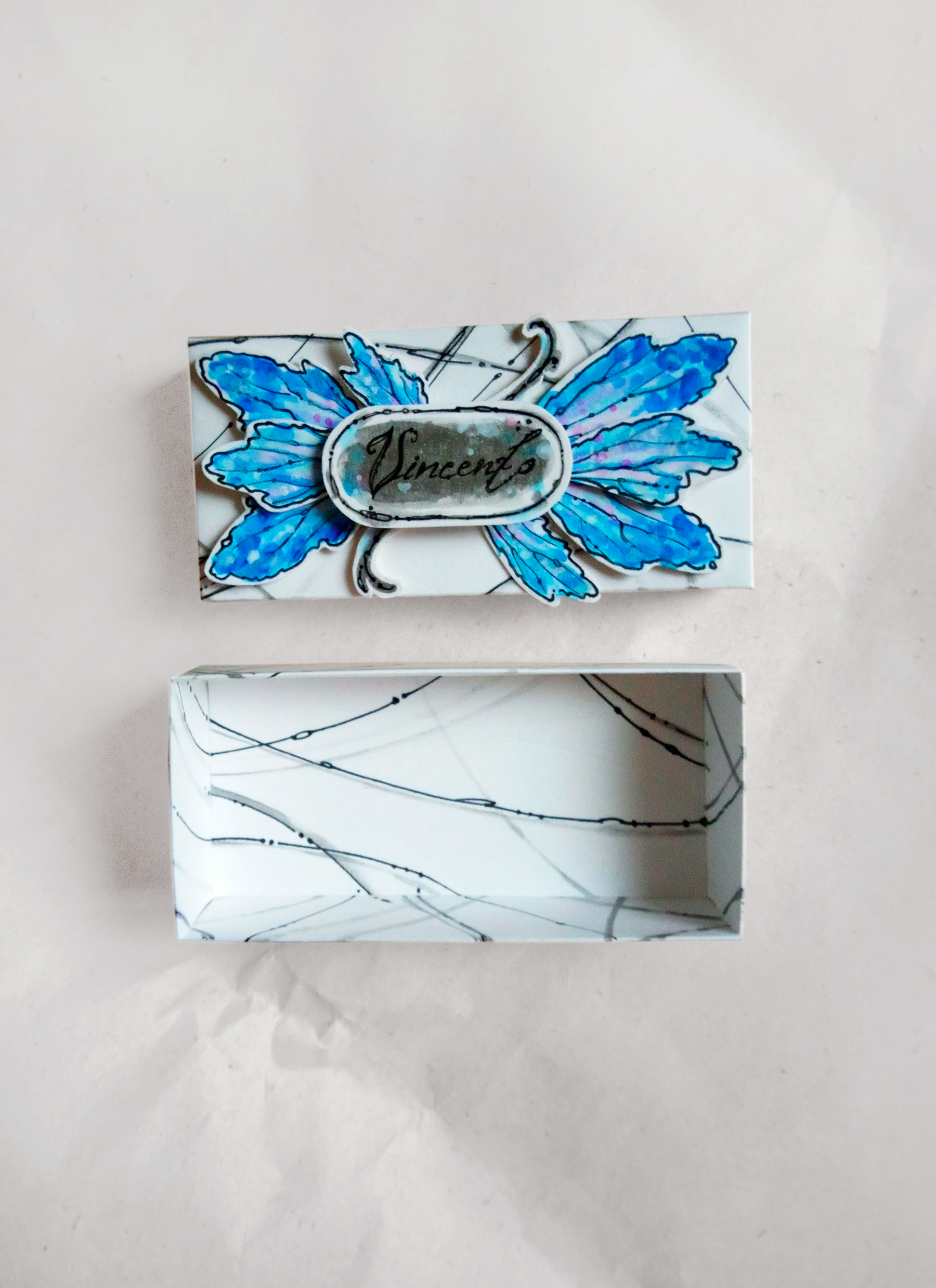 - Красивая подарочная коробочка из дизайнерской бумаги, расписанная в стиле выбранного вами украшения (в том числе возможно исполнение по вашим пожеланиям). Коробочка на фото была создана для "Крылышек феи Небесной Лазури".
