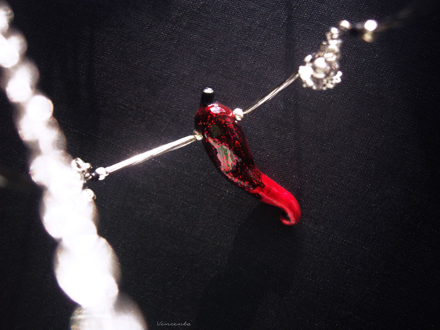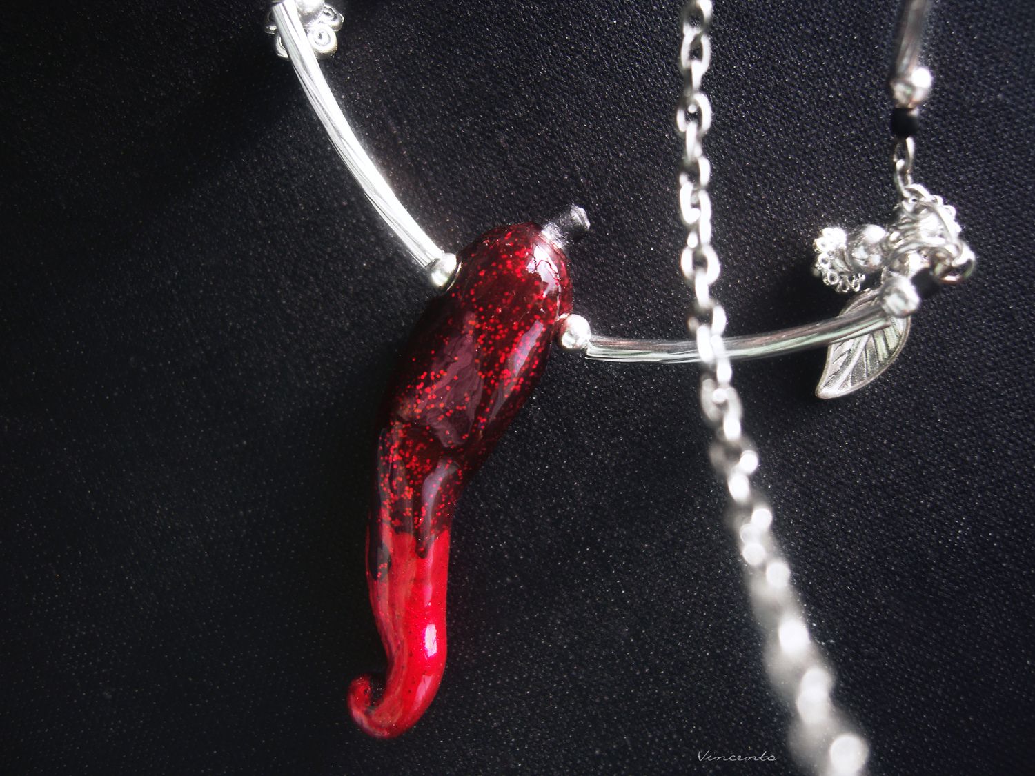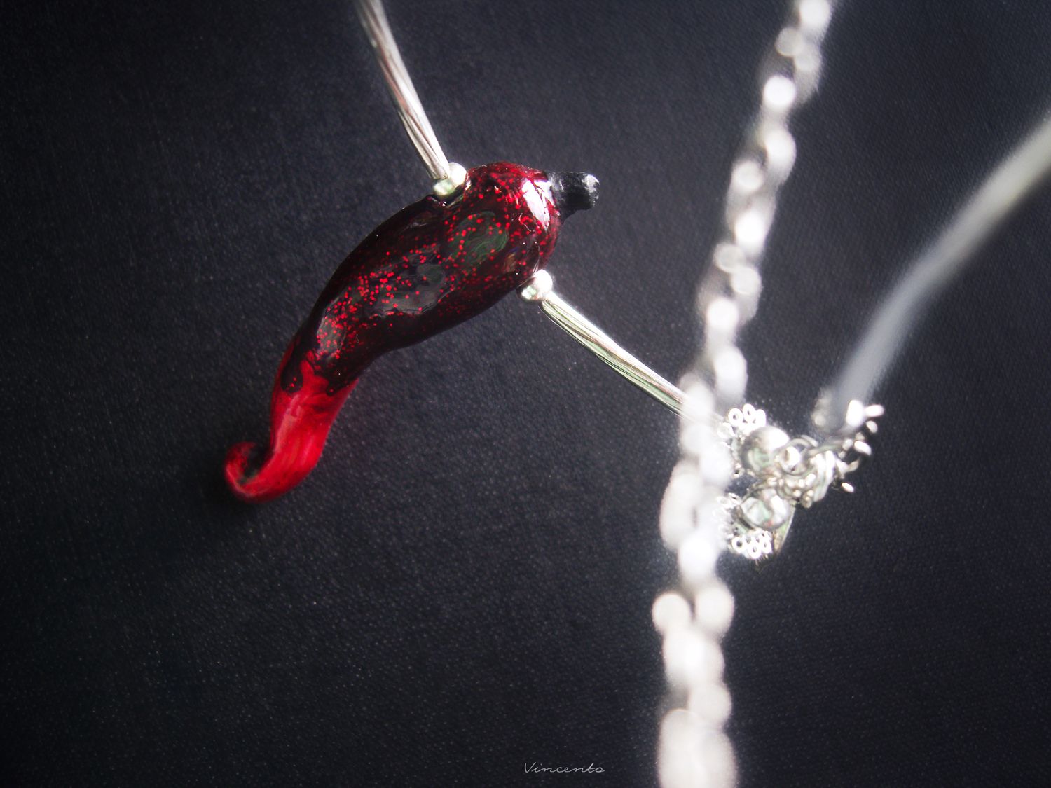 - Красивая подвеска в виде лакированного перчика насыщенного алого цвета с крупинками сияющего глиттера.