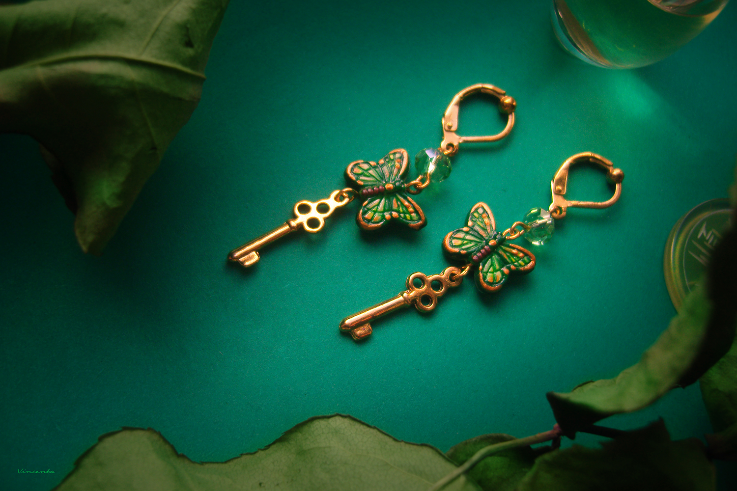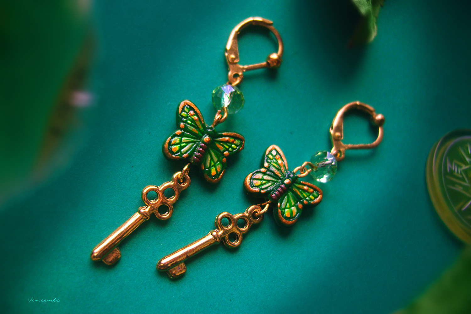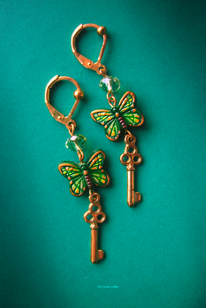 "Посланницы чудес", серьги с бабочками и ключиками (благотворительность)