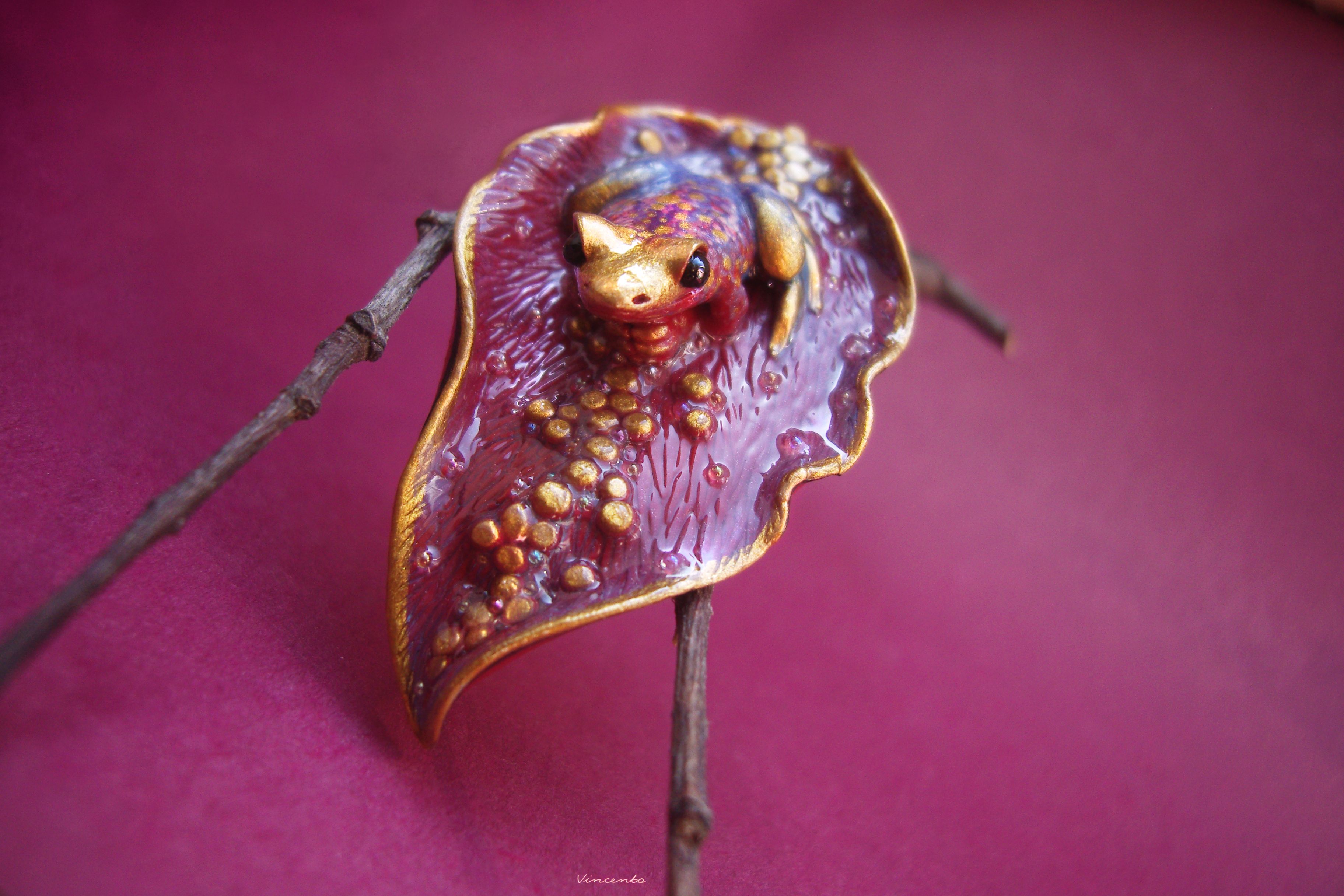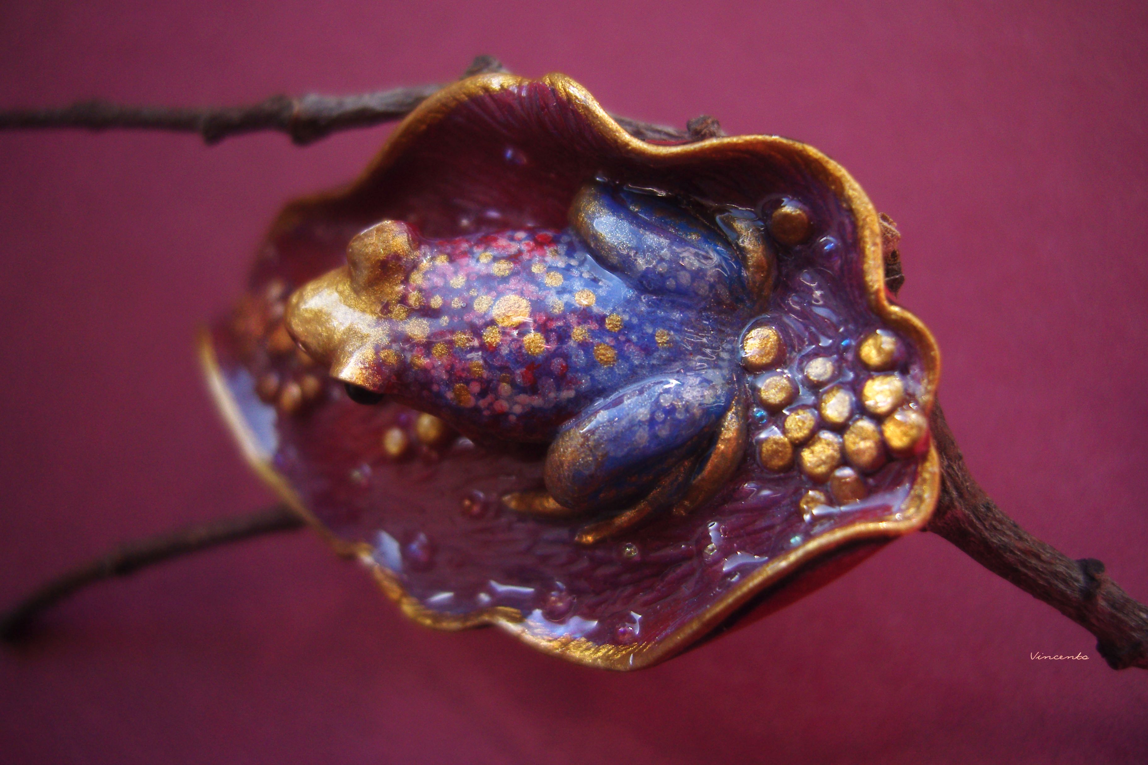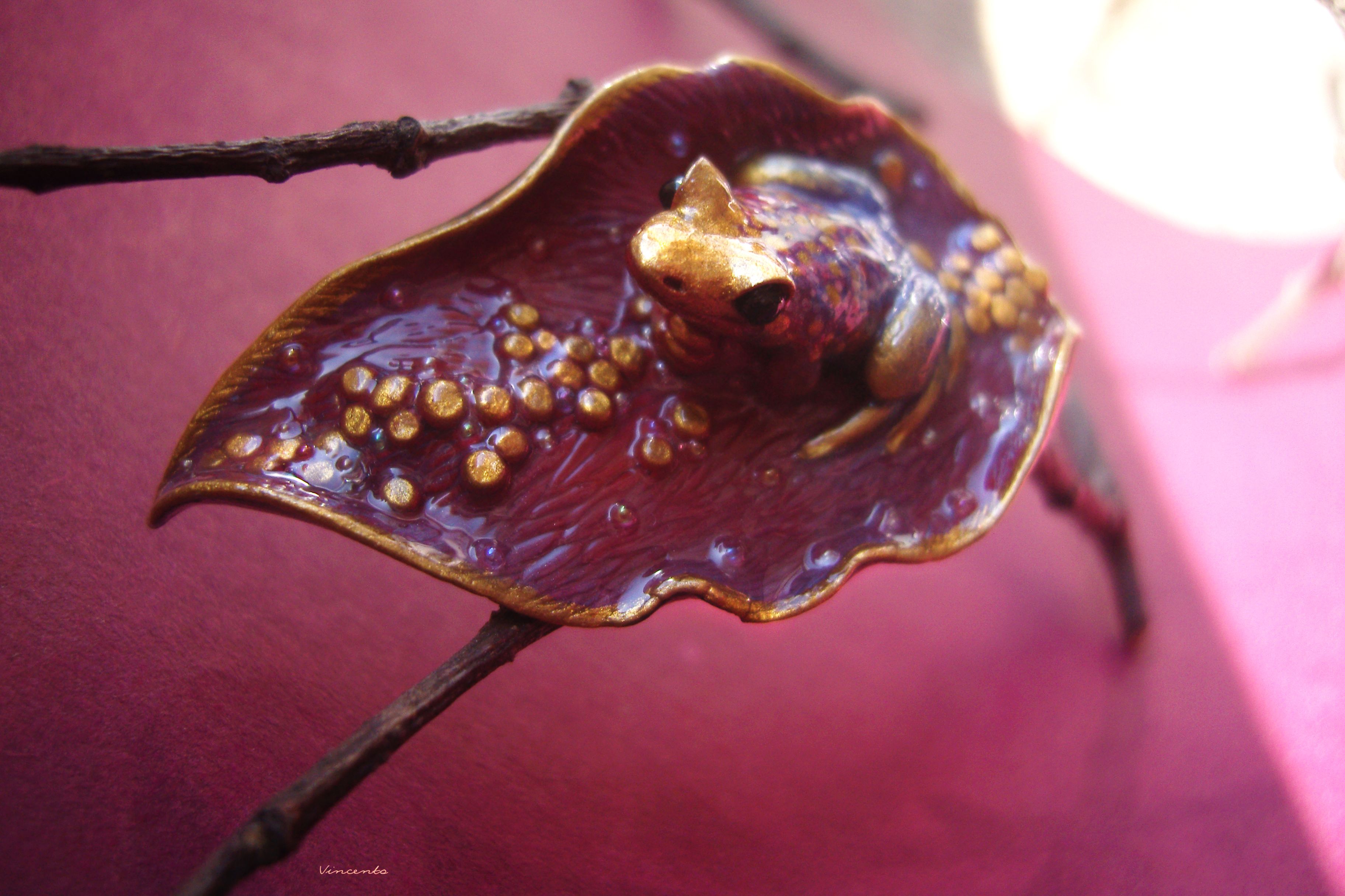 - Коллекционная брошь в виде миниатюрной принцессы-лягушки на утончённом лепестке волшебного лотоса, Вишнёвого Цветка Познания, бесценного артефакта бессмертных ду?хов природы.