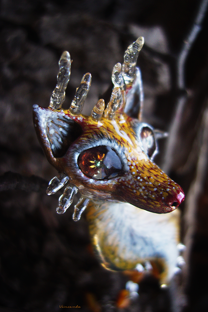 - Голову лисички венчает роскошная ледяная корона, оживающая белым мерцанием при малейшем движении света.