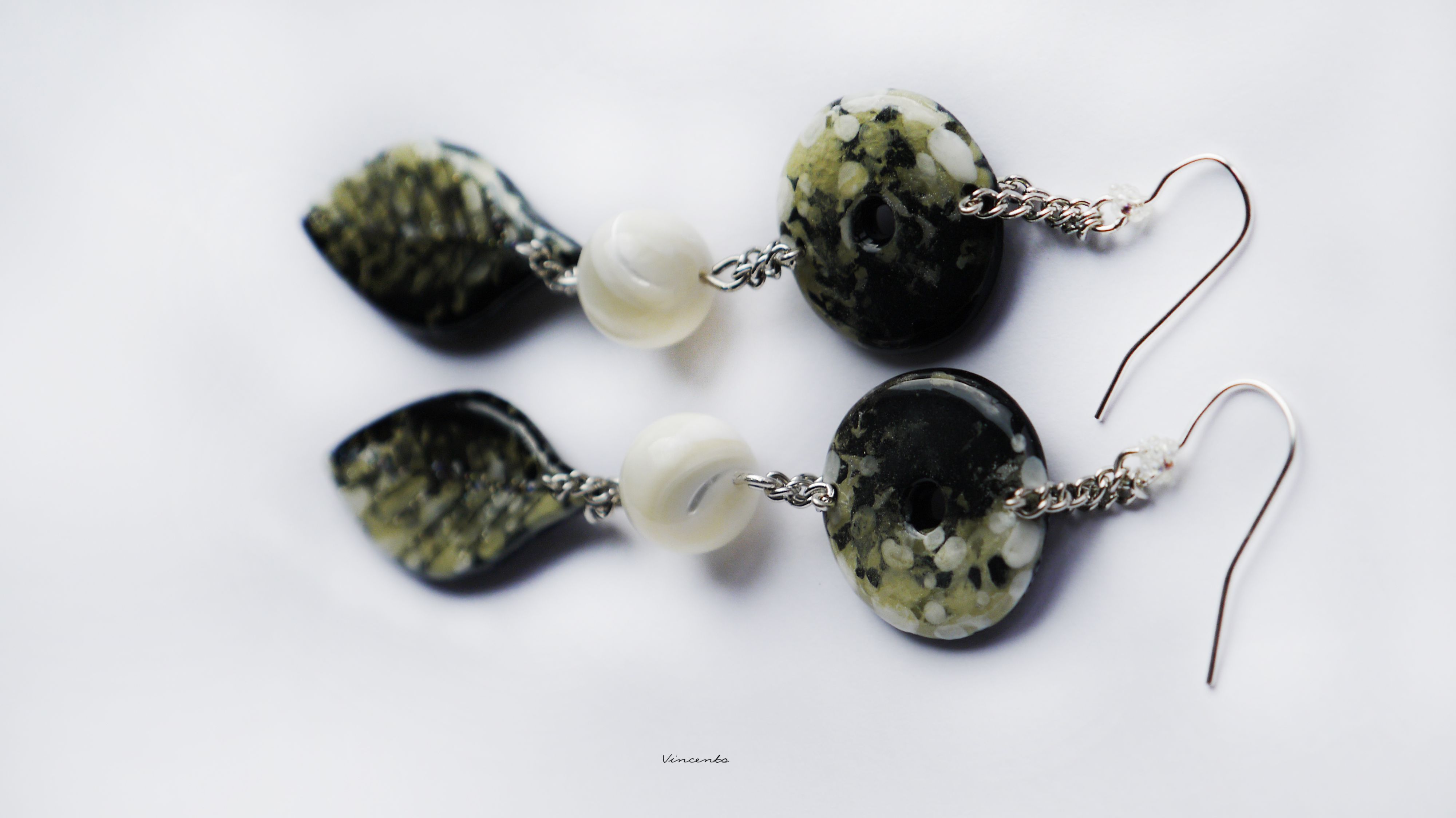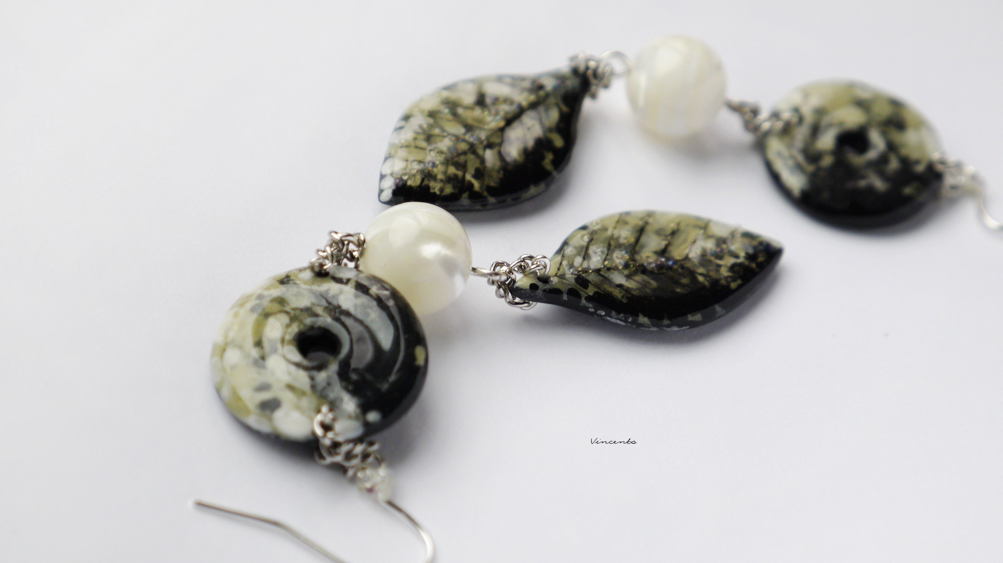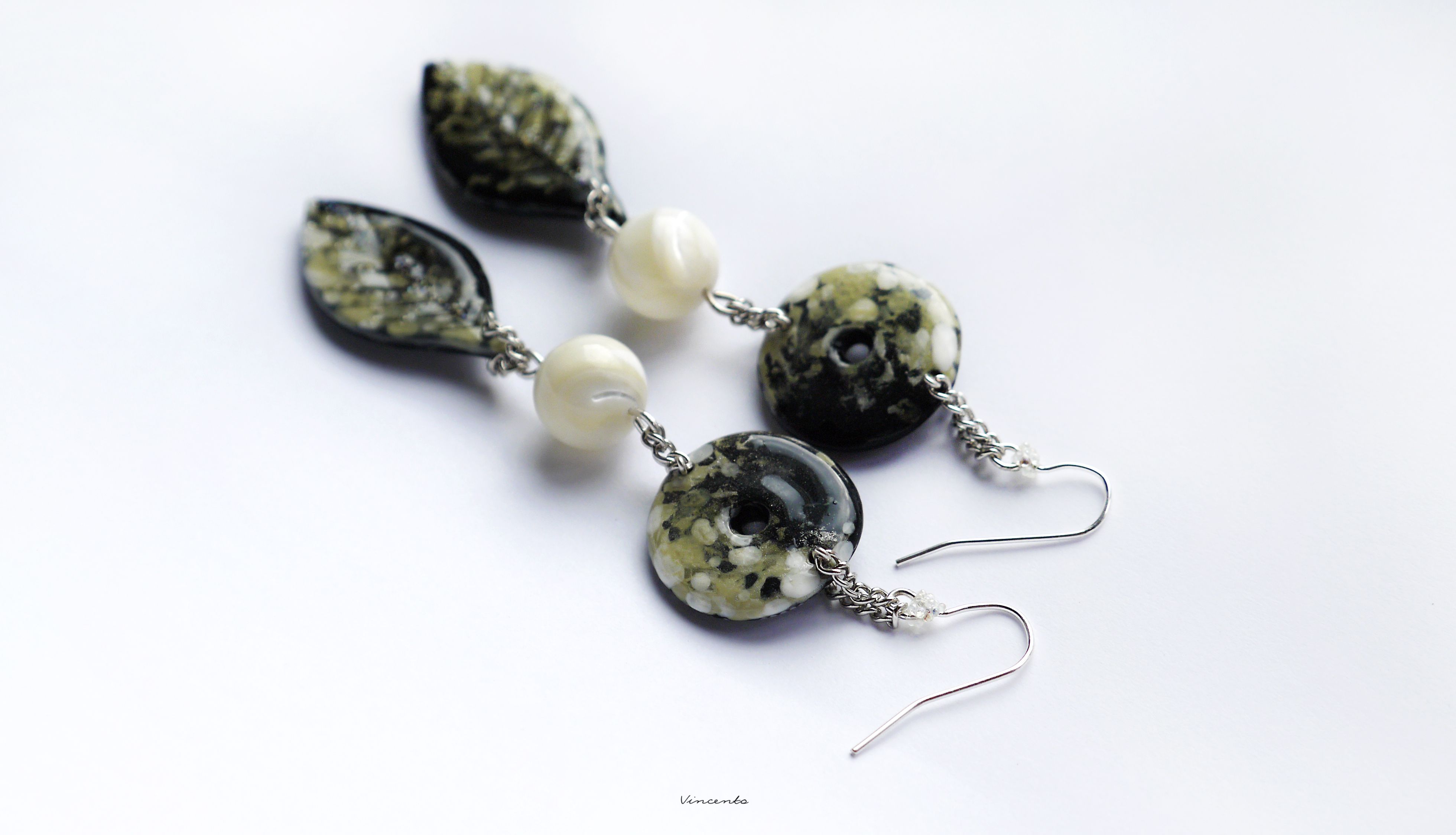 - Изысканные длинные серьги в пограничном стиле между благородной глазурованной керамикой и лесным бохо-шиком с натуральным перламутром и авторскими фигурными бусинами.