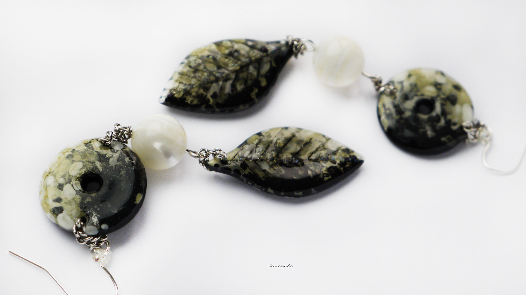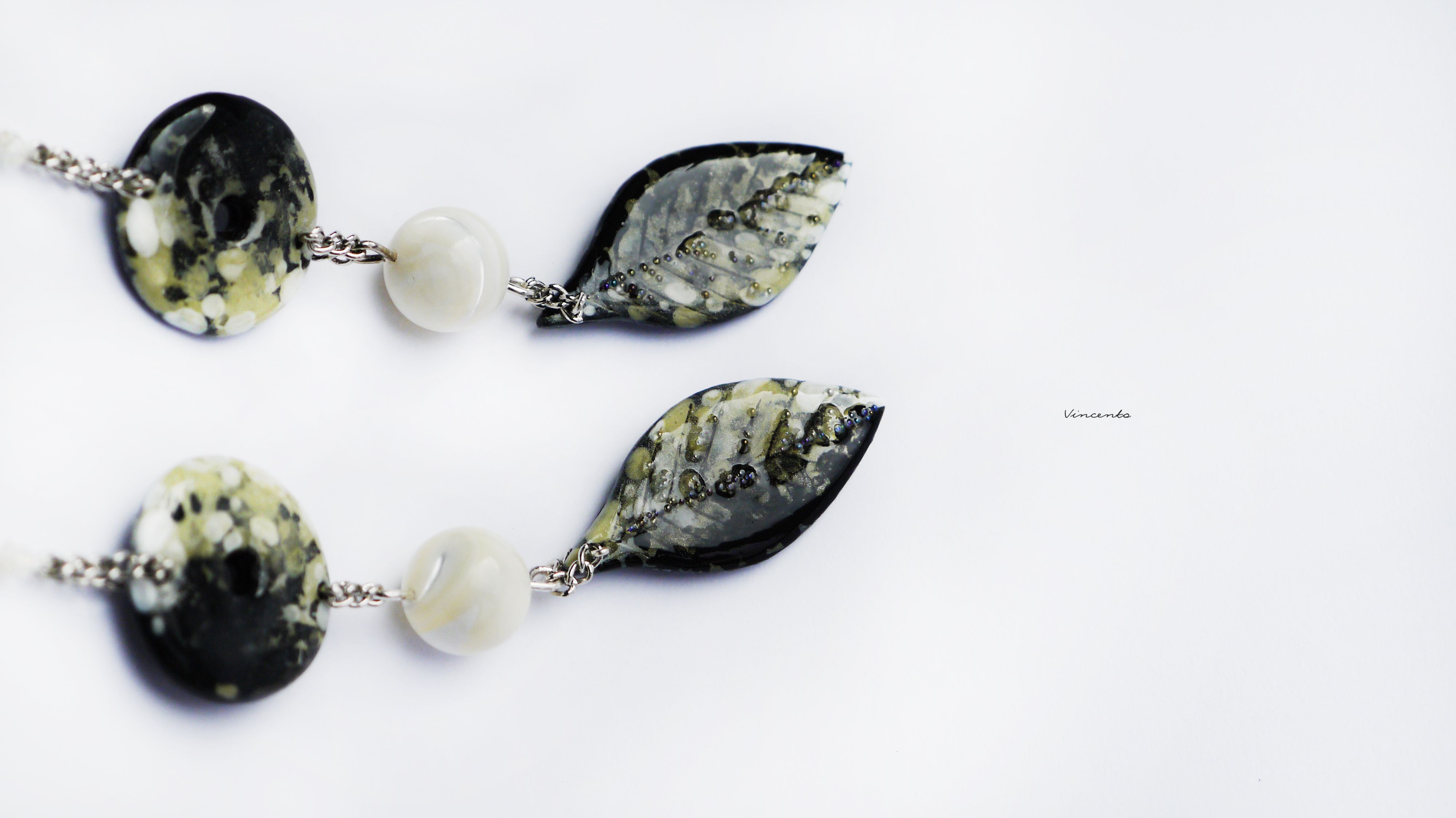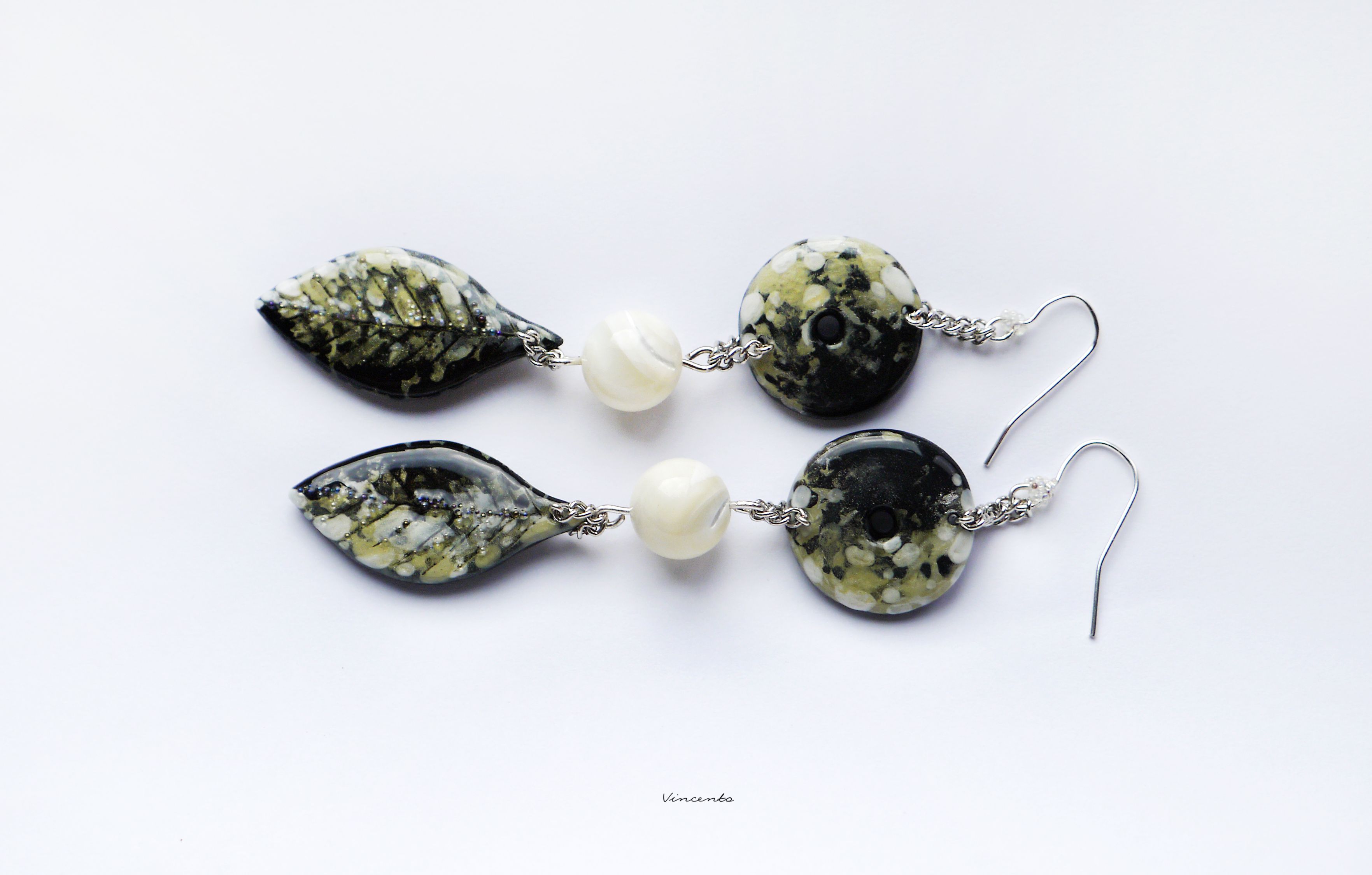 - Подвески-листочки дополнены крупицами мерцающего микробисера с эффектом "мистик".
