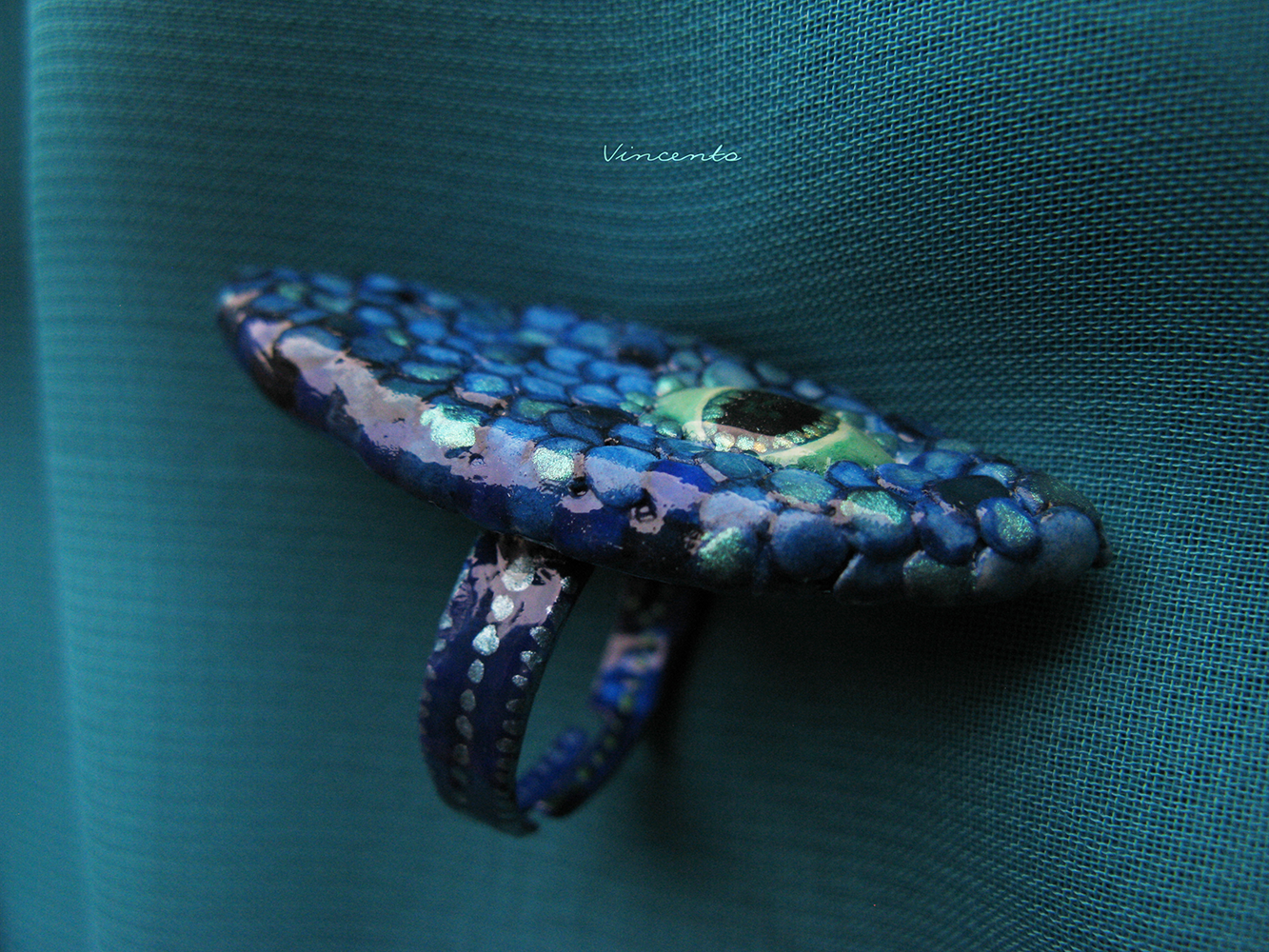 Рыбка Дракон. Кольцо Рыбка. Авторское кольцо из полимерной глины
