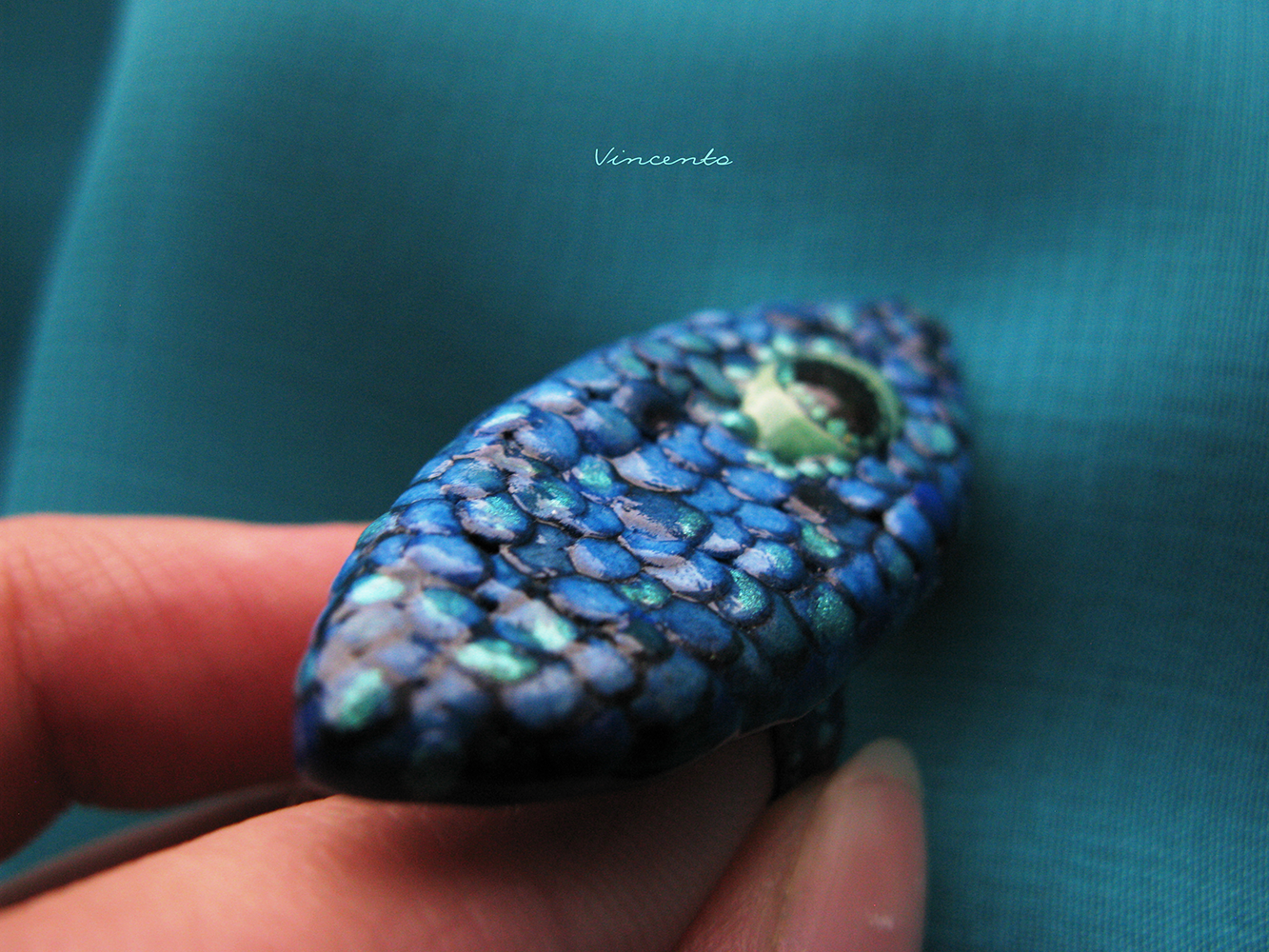 Кольцо с рыбкой станет талисманом, привлекающим в вашу жизнь всё новое и увлекательное. Интересно, что символика рыбы напрямую связана с обновлением и перерождением. Усиливает значение и цвет драконьей чешуи: синий - символ бесконечности, оттенки зелёного - зарождение жизни, начало начал...