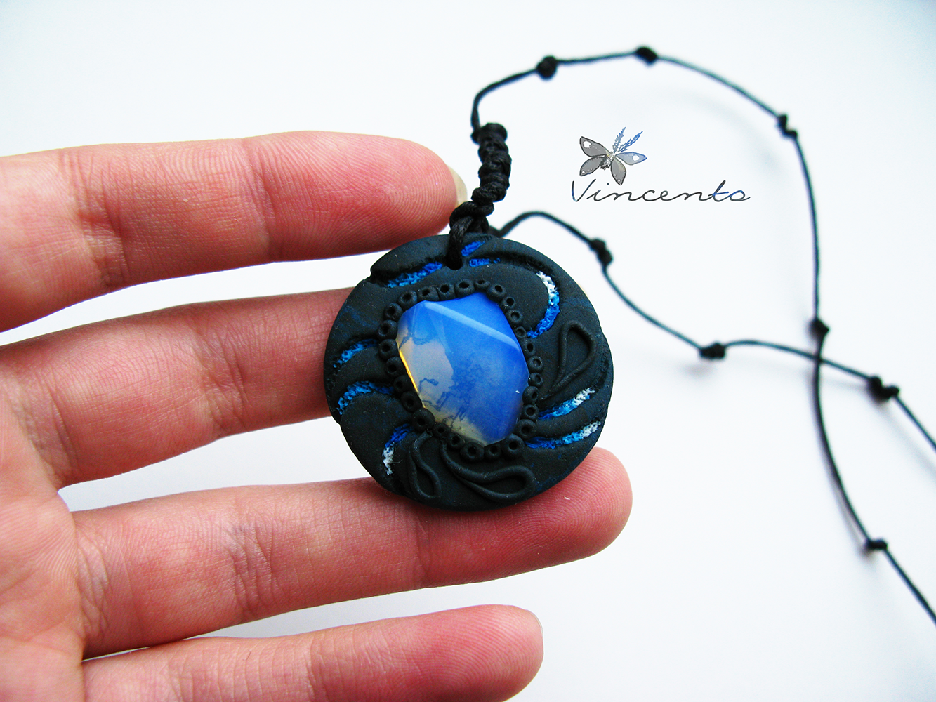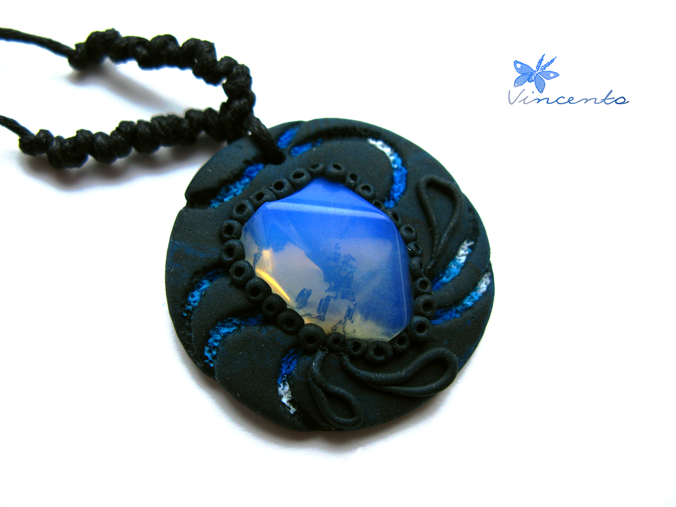 - Кулон "Сердце феникса" выполнен из полимерной глины и искусственного лунного камня, подвешен на вощёный шнур, заплетённый в необычный узор. Полностью ручная работа (все украшения с лунным камнем мы делаем на заказ). Точная копия невозможна (по желанию заказчика мы предоставляем эскиз будущего украшения)!