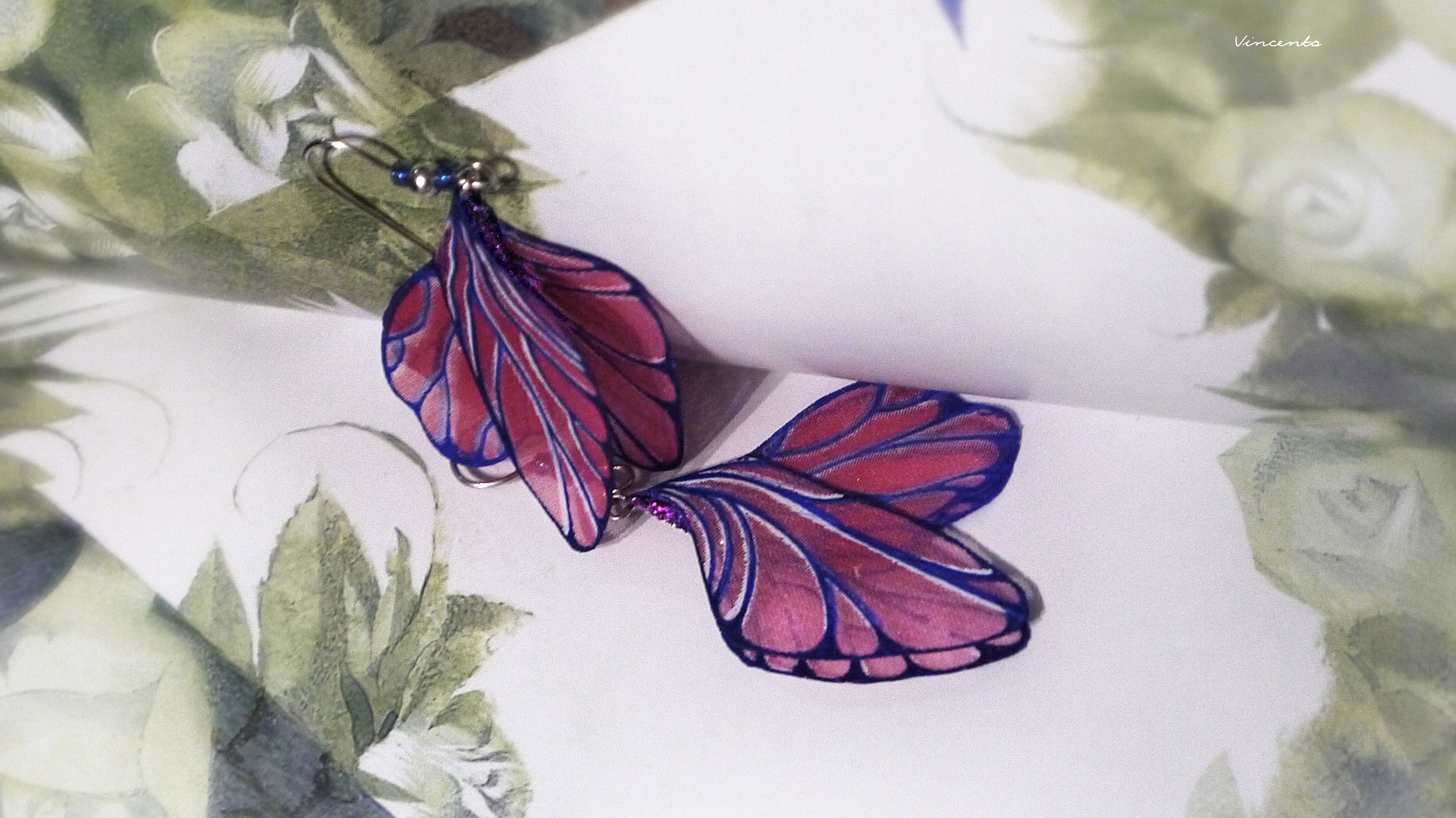 - Каждая серёжка собрана из двух пар мистических полупрозрачных крылышек, соединённых фиолетовой пыльцой, той самой, волшебной...