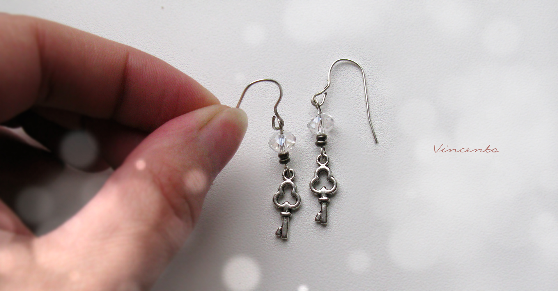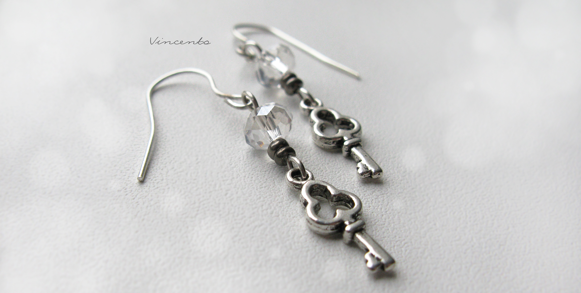 - Воздушные серьги-ключики в стиле Алисы в Стране Чудес.