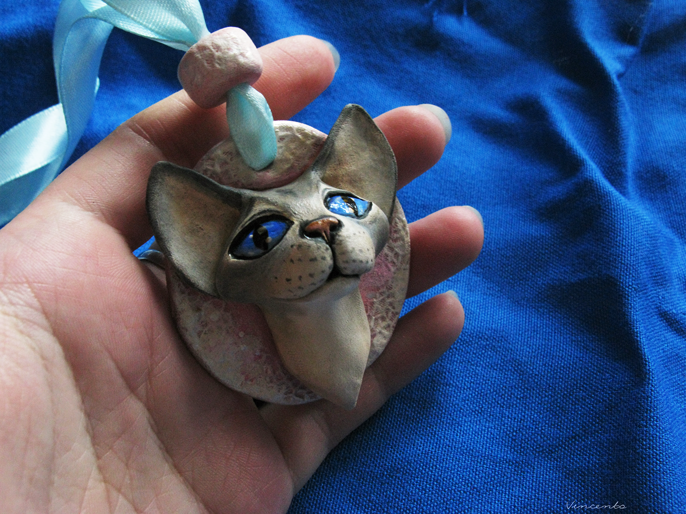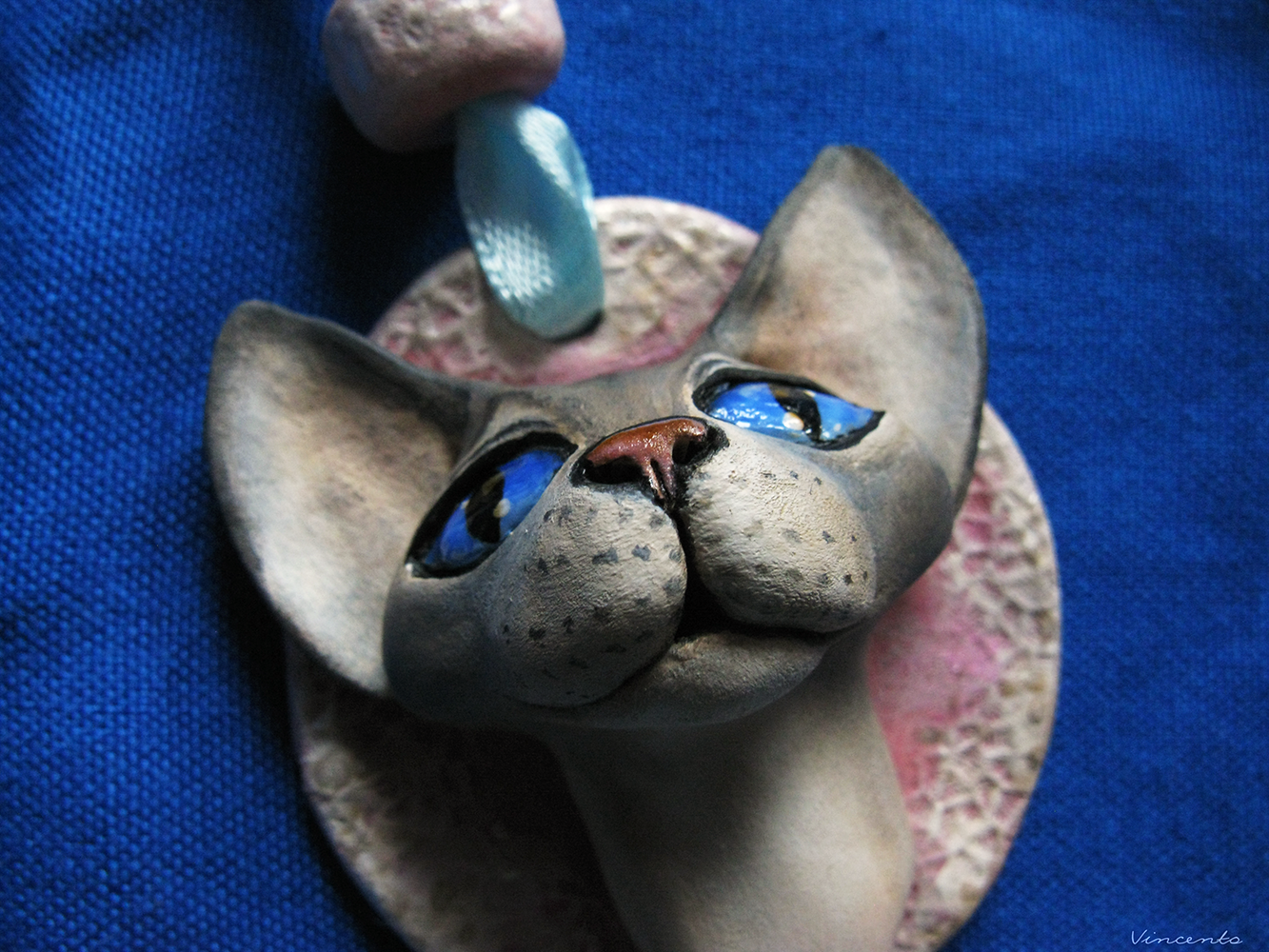 - Подвеска-кошка выполнена из лёгкой термоглины, тонирована акрилом.