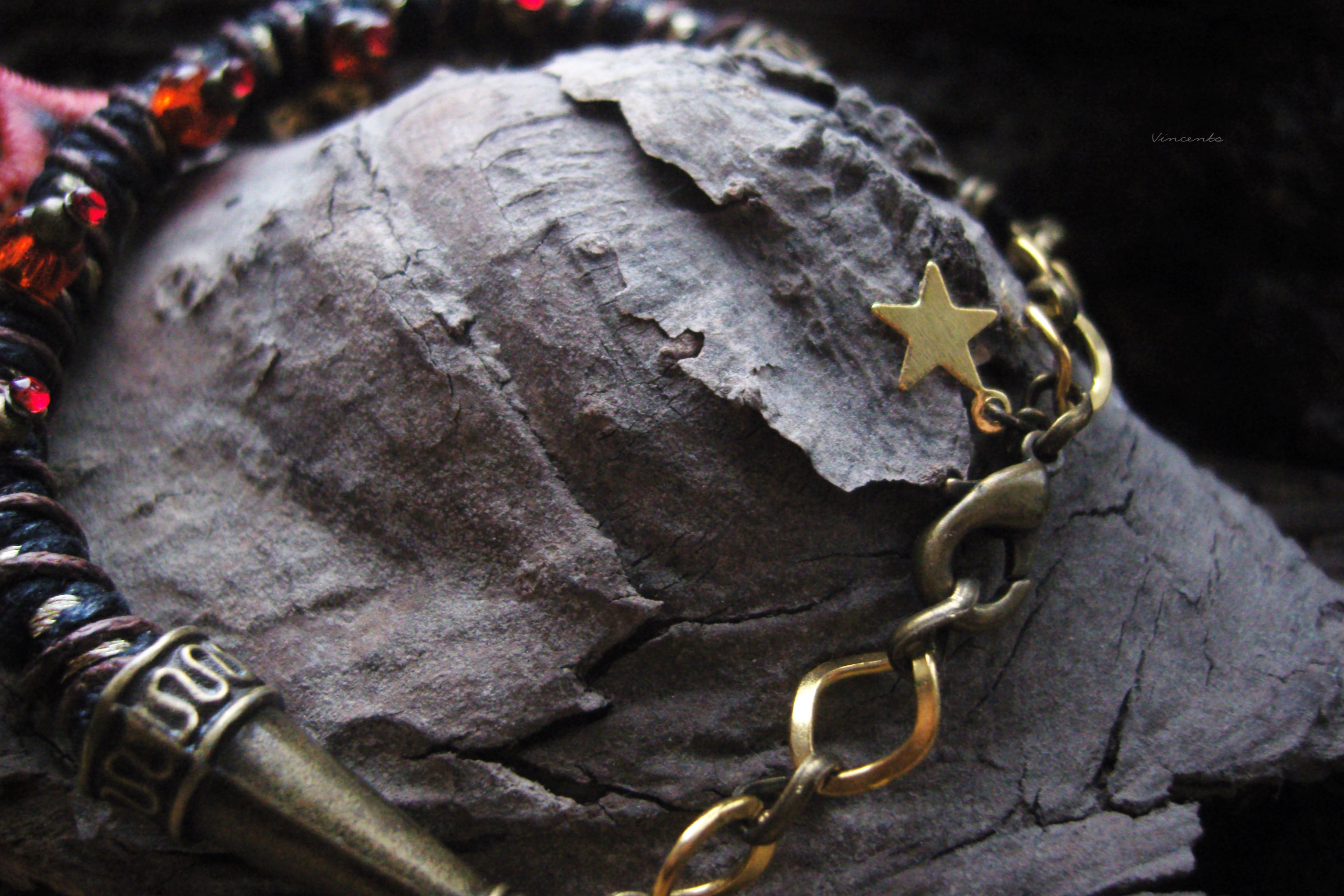 - Материалы: вощёный шнур, люрекс, металлическая фурнитура, термоглина, акриловые краски, лак, стекловидная масса, чешское стекло, акриловые кристаллы, чешский бисер.