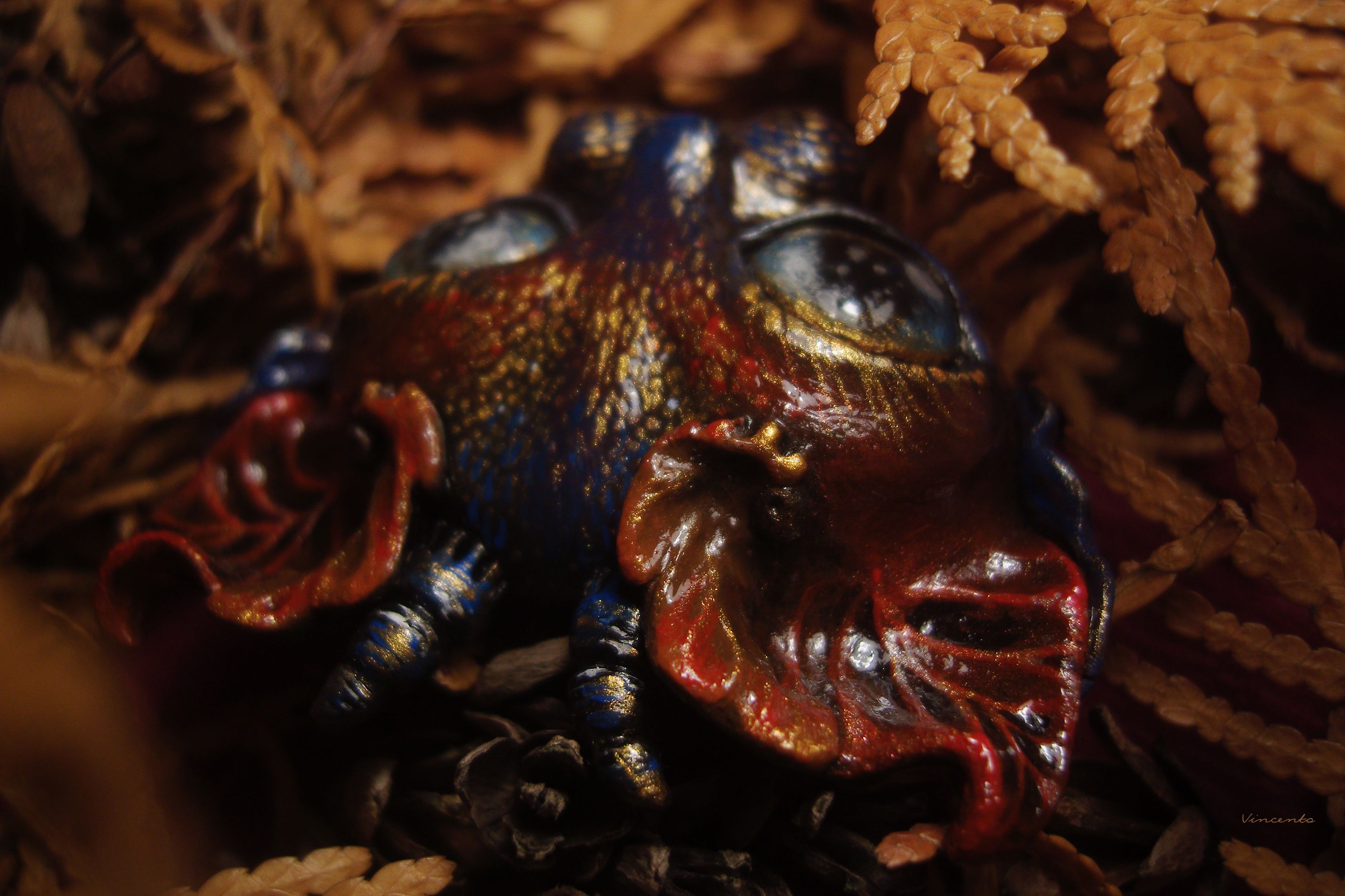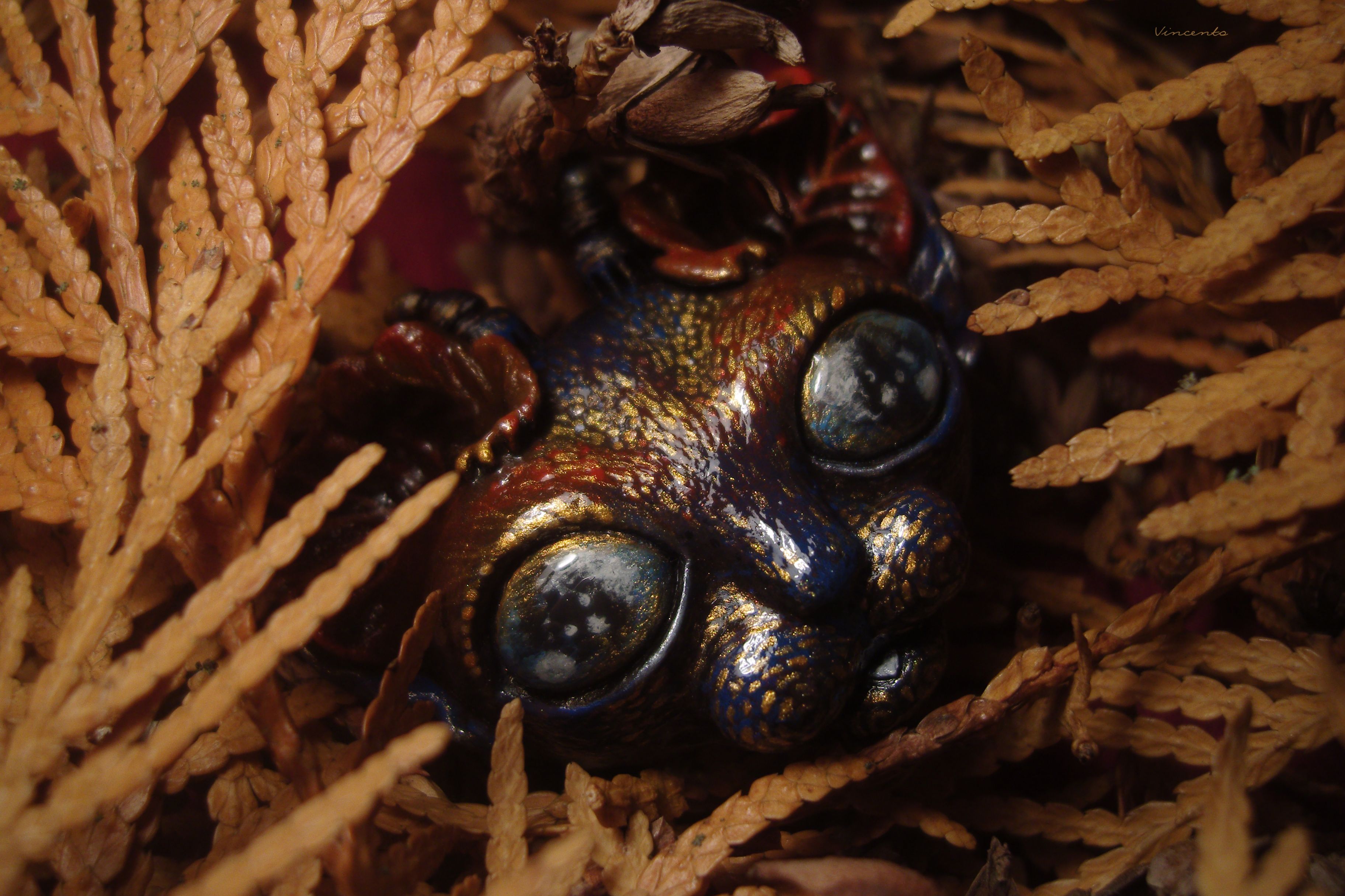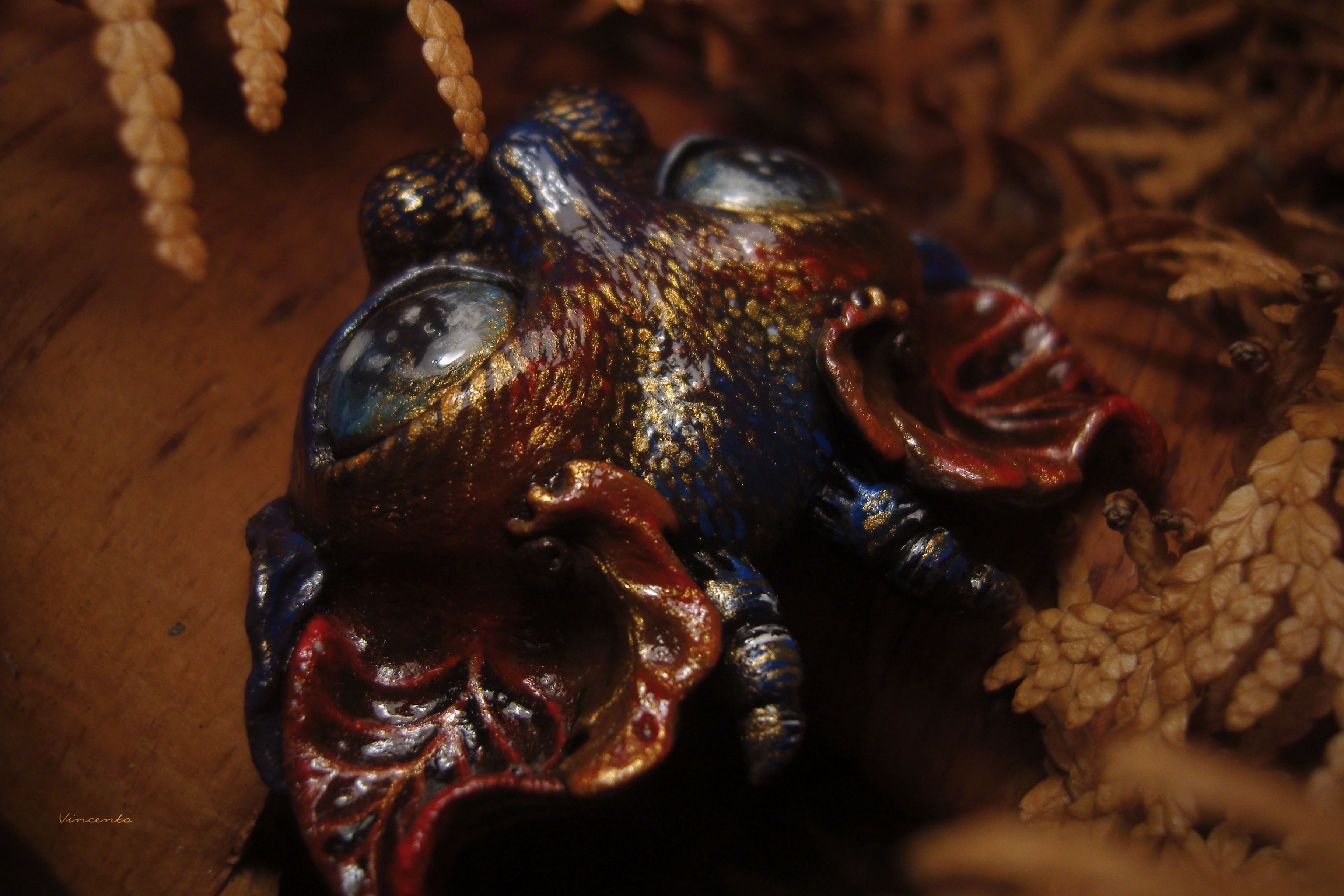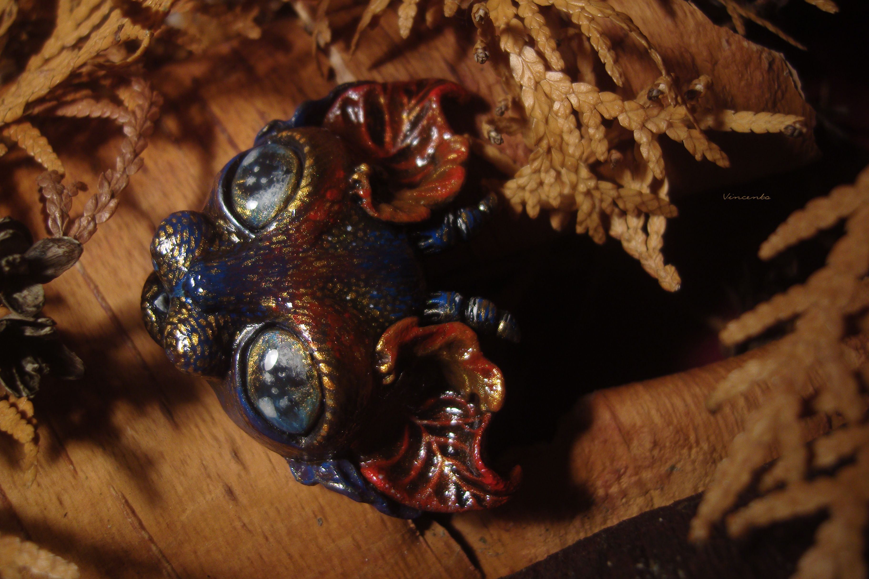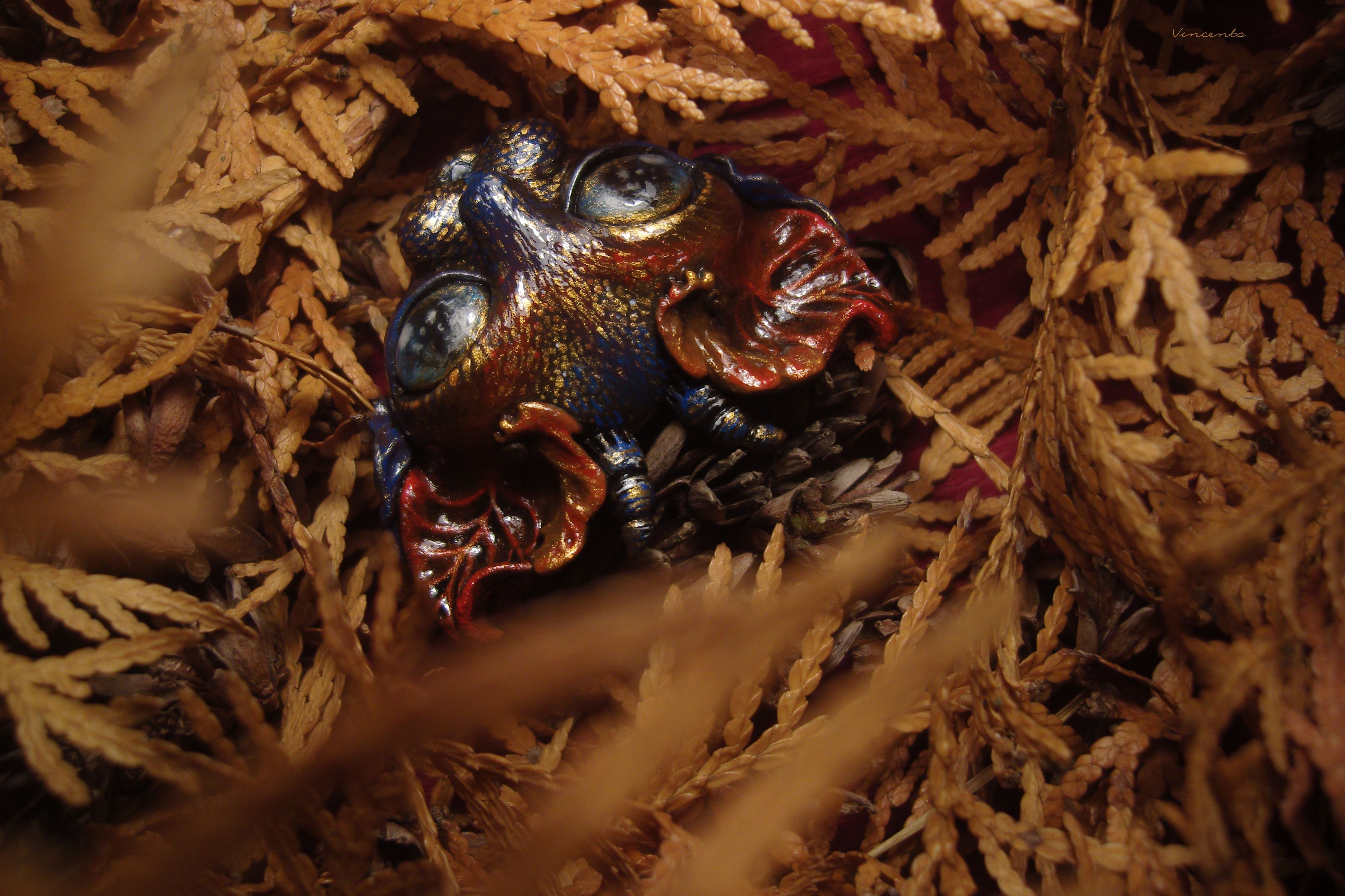 - Необычная, пожалуй, даже немного авангардная брошь в стиле фэнтези, выполненная в технике скульптурной миниатюры с авторской росписью.