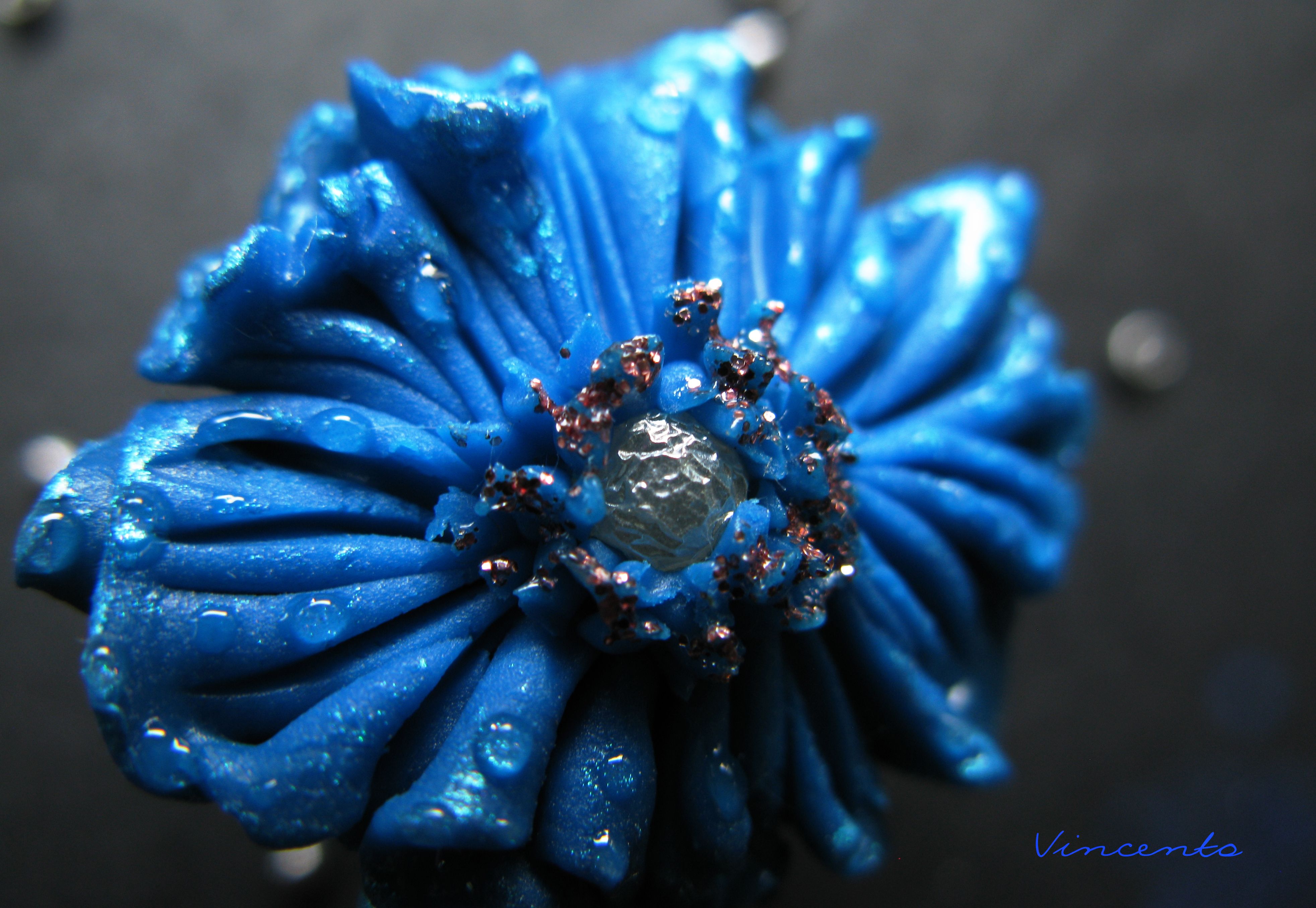 - Небольшое яркое колечко в виде синего цветка с перламутровой сердцевинкой и глиттером.