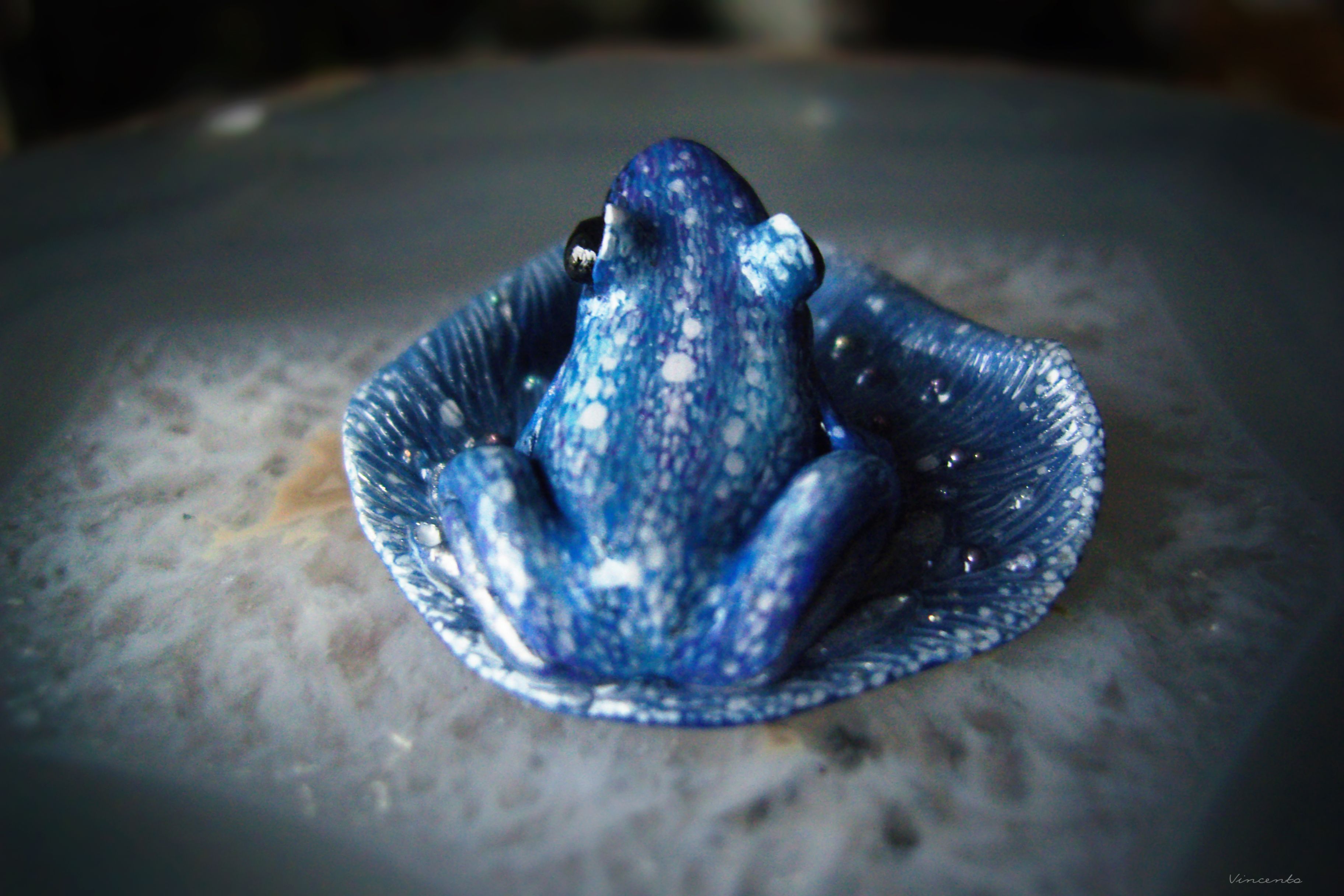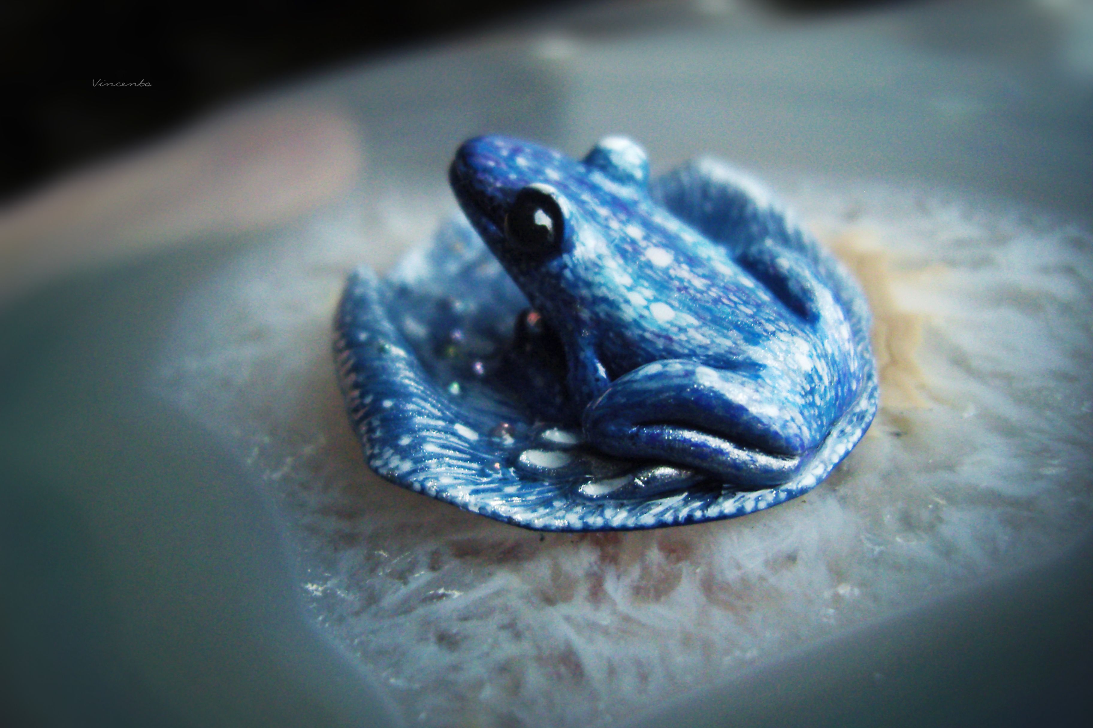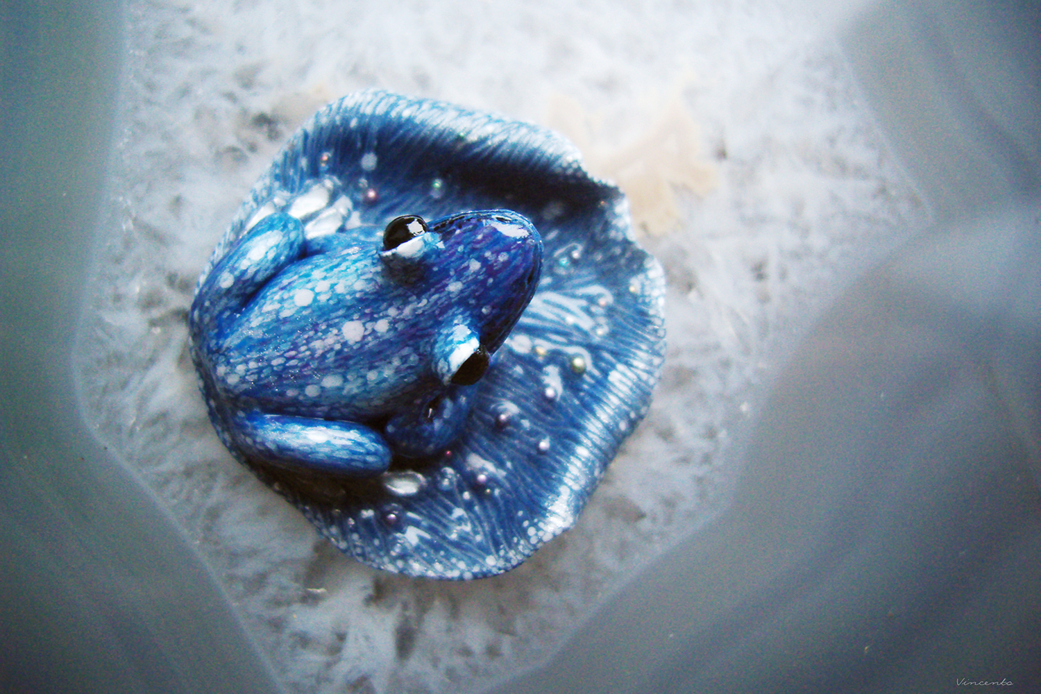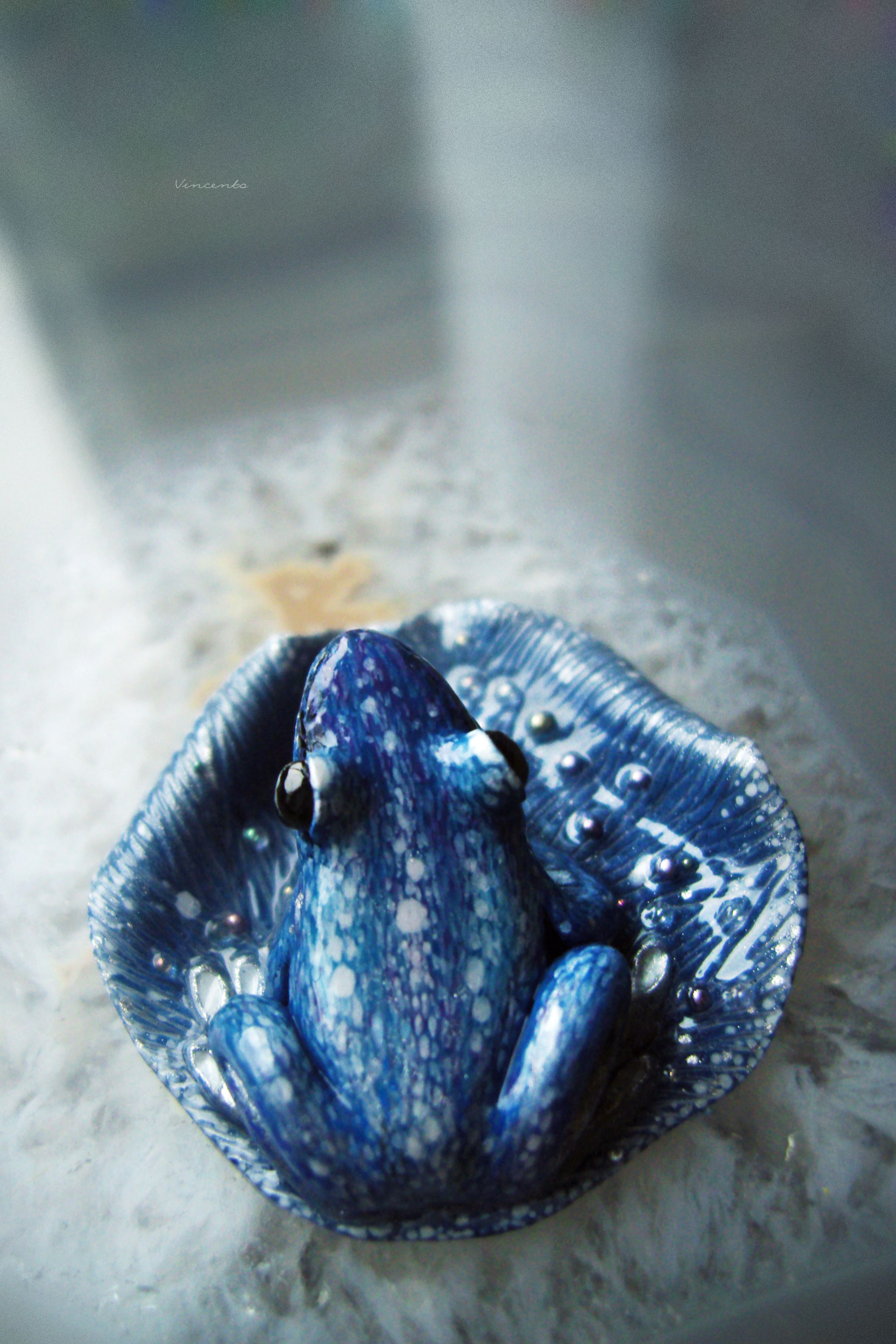 - Фэнтезийная миниатюрная брошь с тёмно-синей лягушкой и серебристой звездой из гематита - волшебное украшение в технике скульптурной миниатюры.