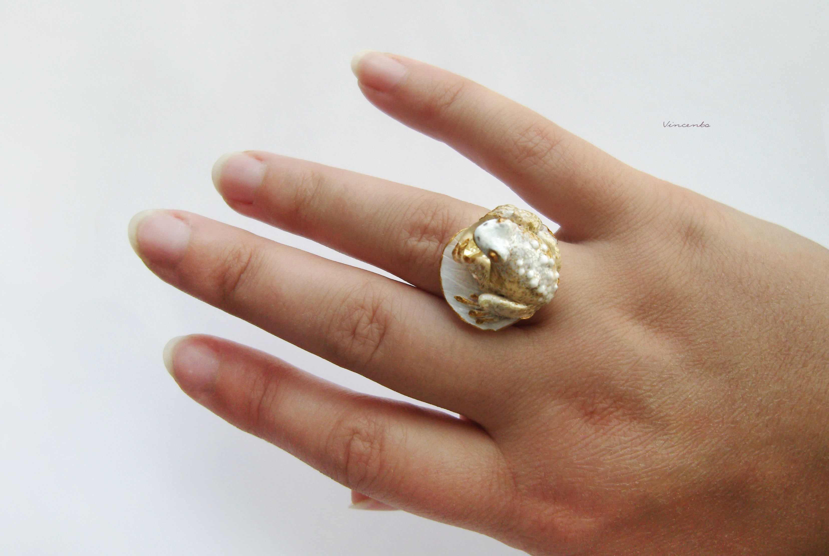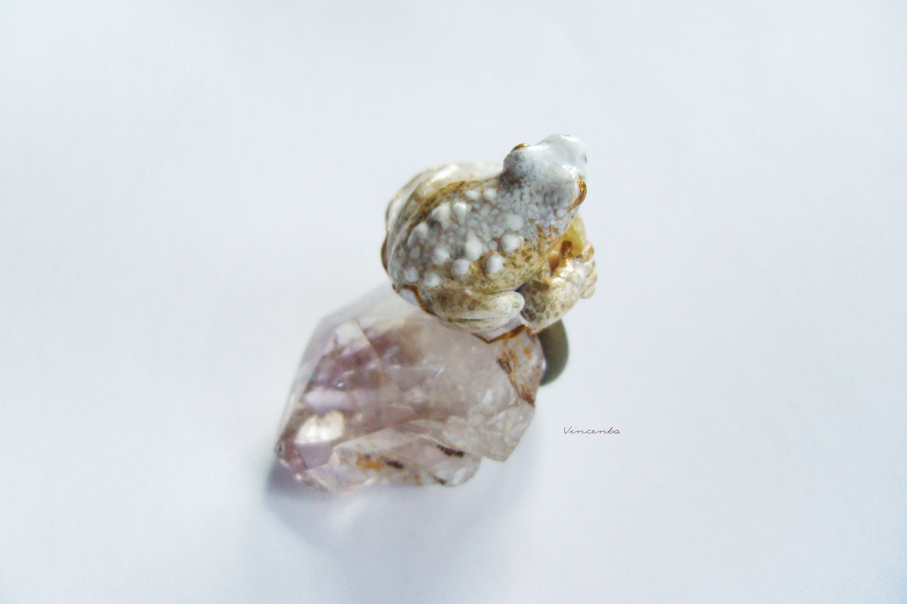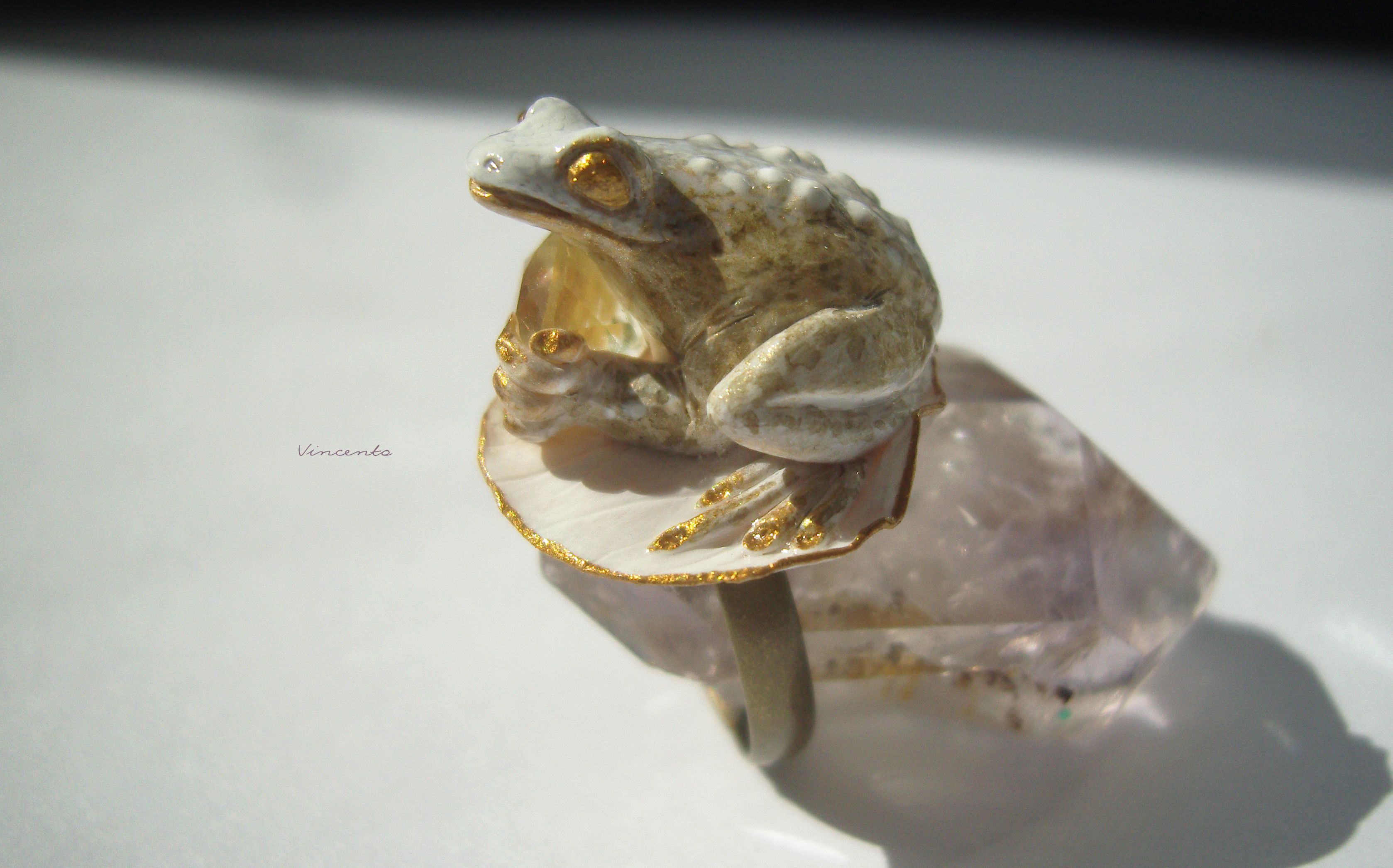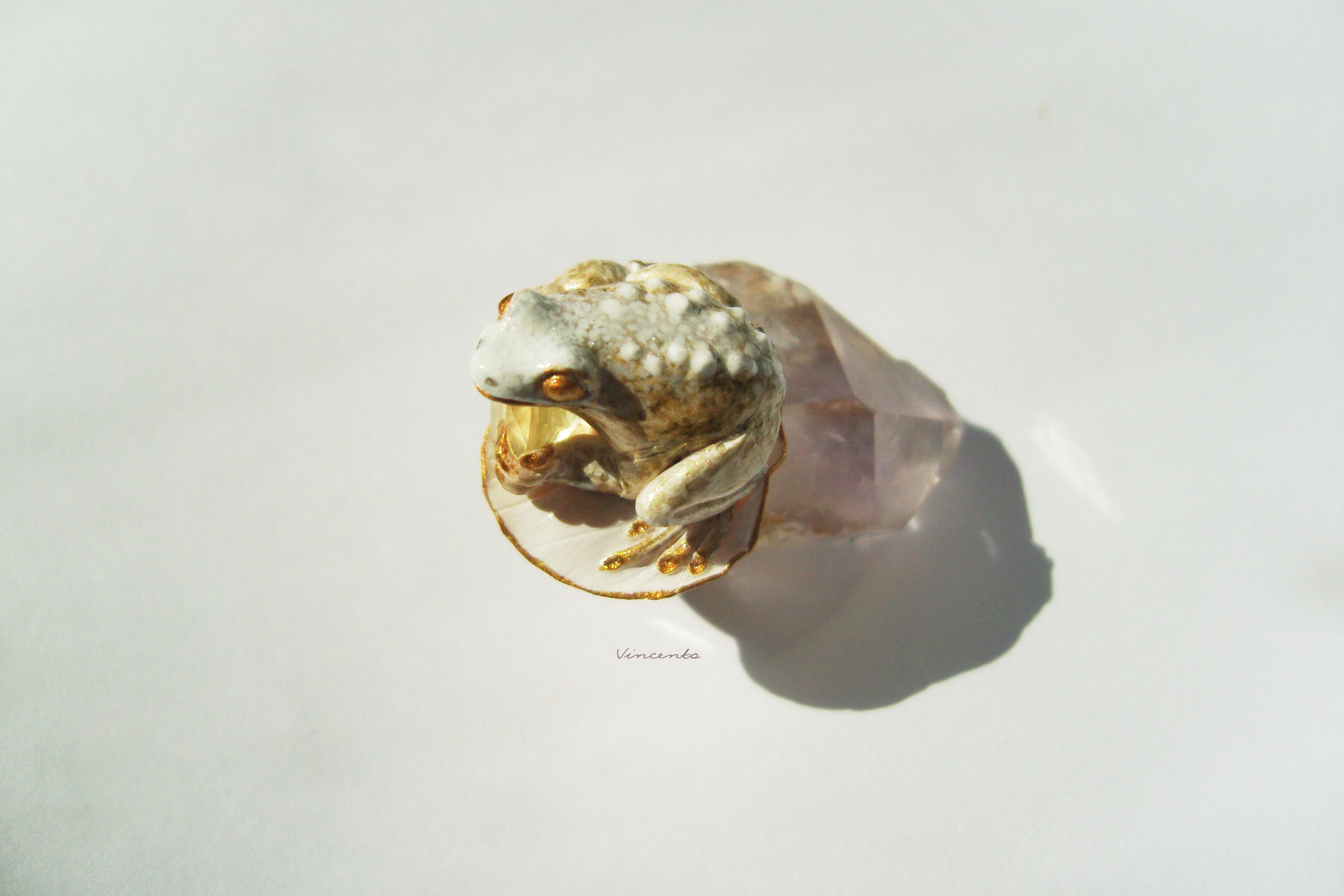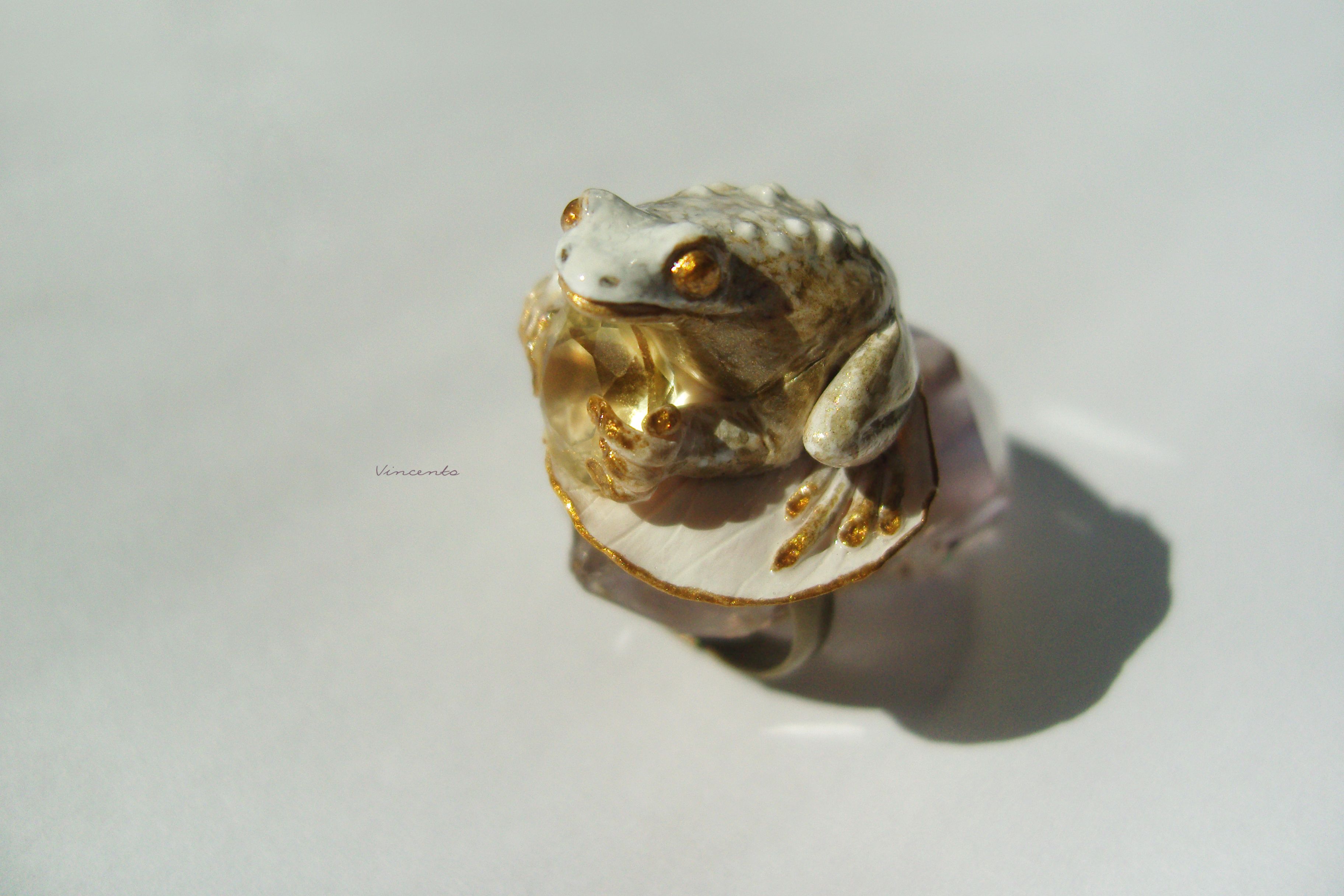 - Изящное фэнтезийное кольцо с золотистой лягушкой - зачарованным принцем из Солнечной Долины, - и камешком натурального кварца.