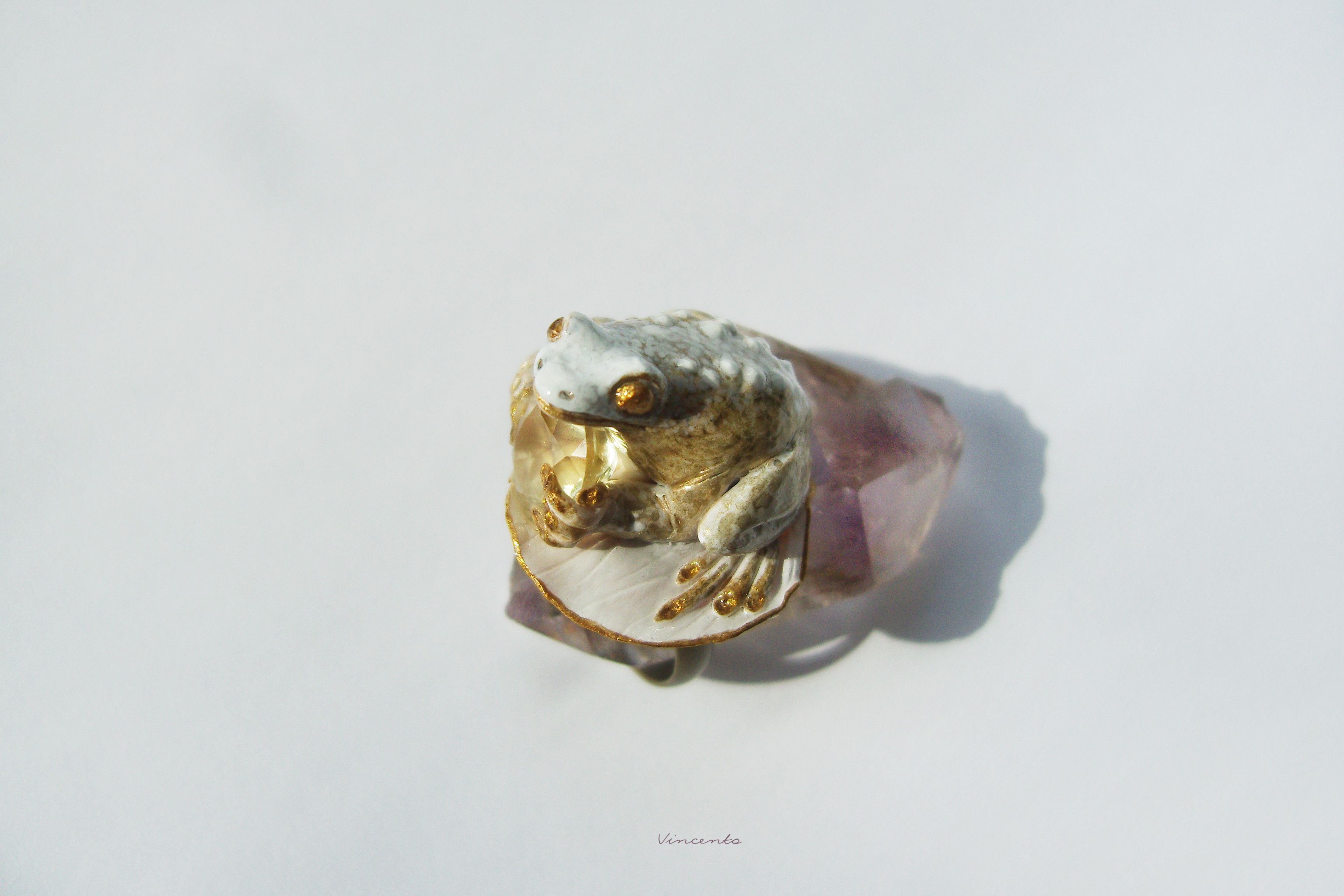 "Солнечная лягушка", фэнтезийное кольцо с кварцем