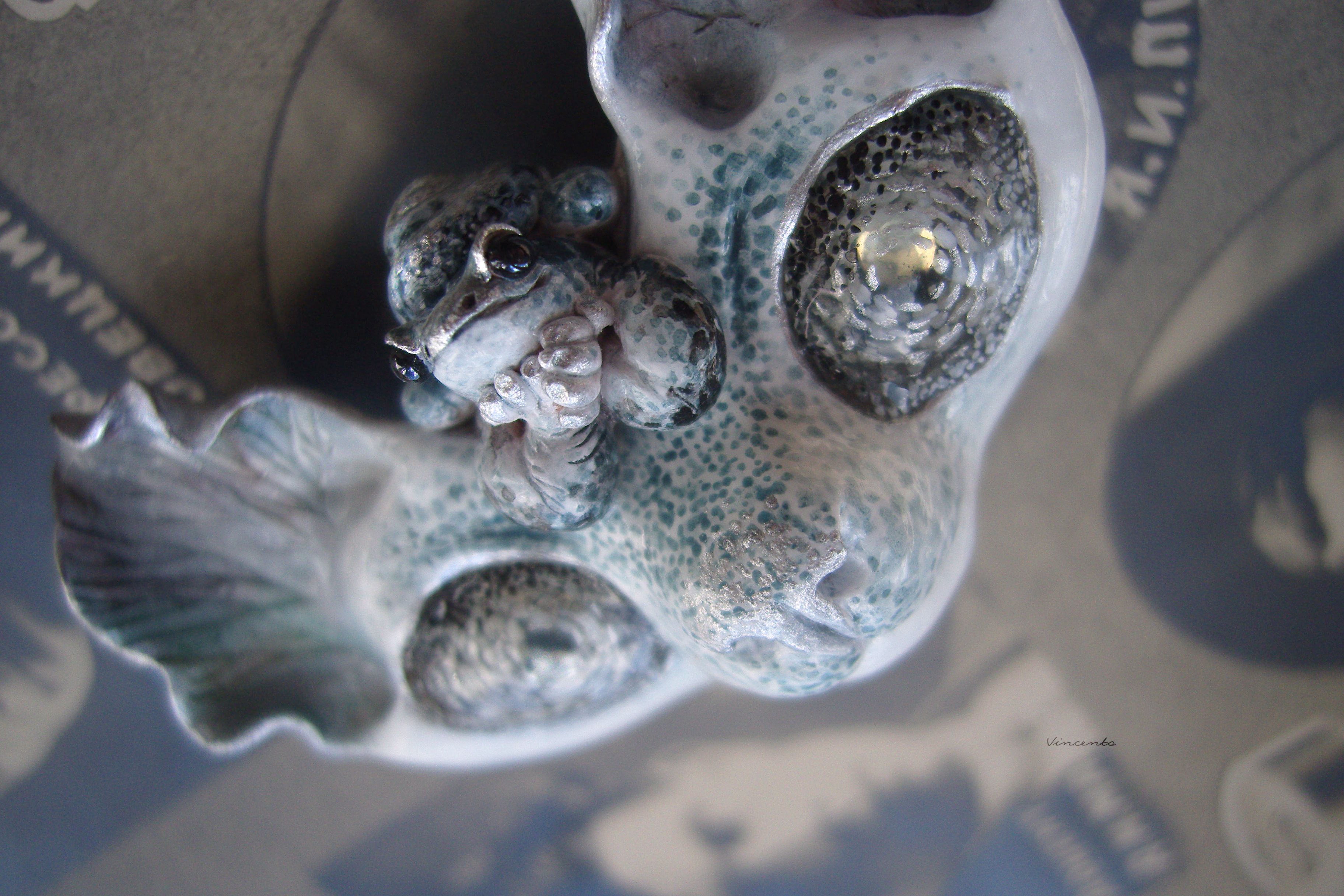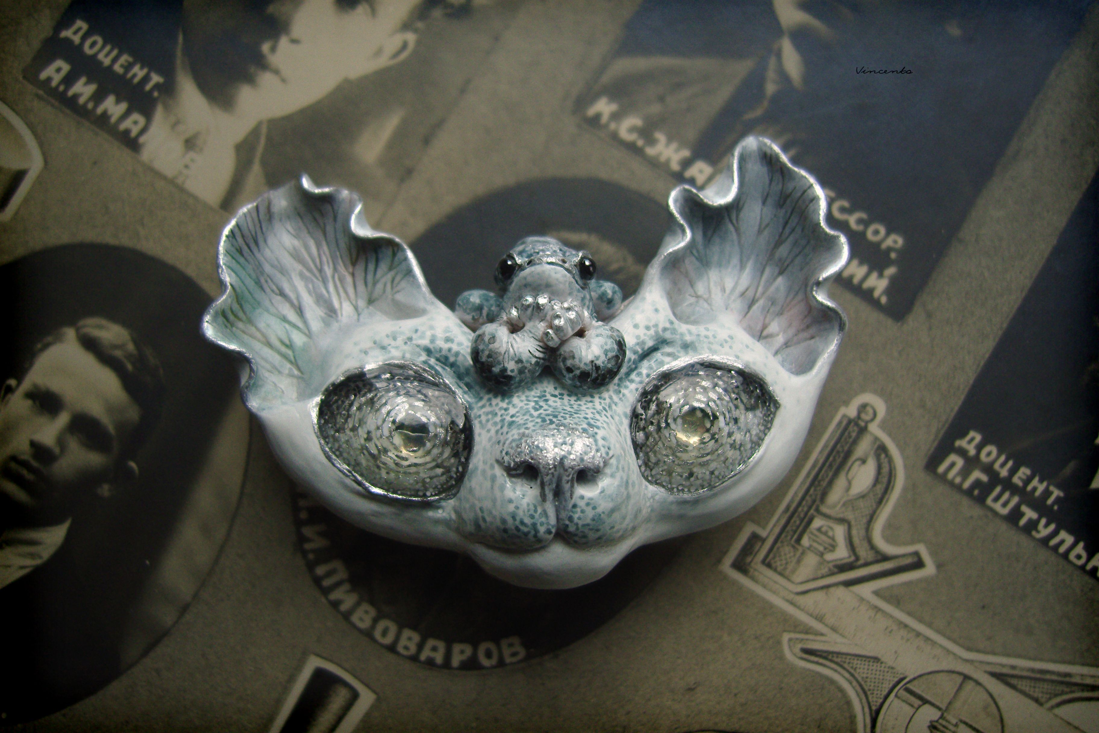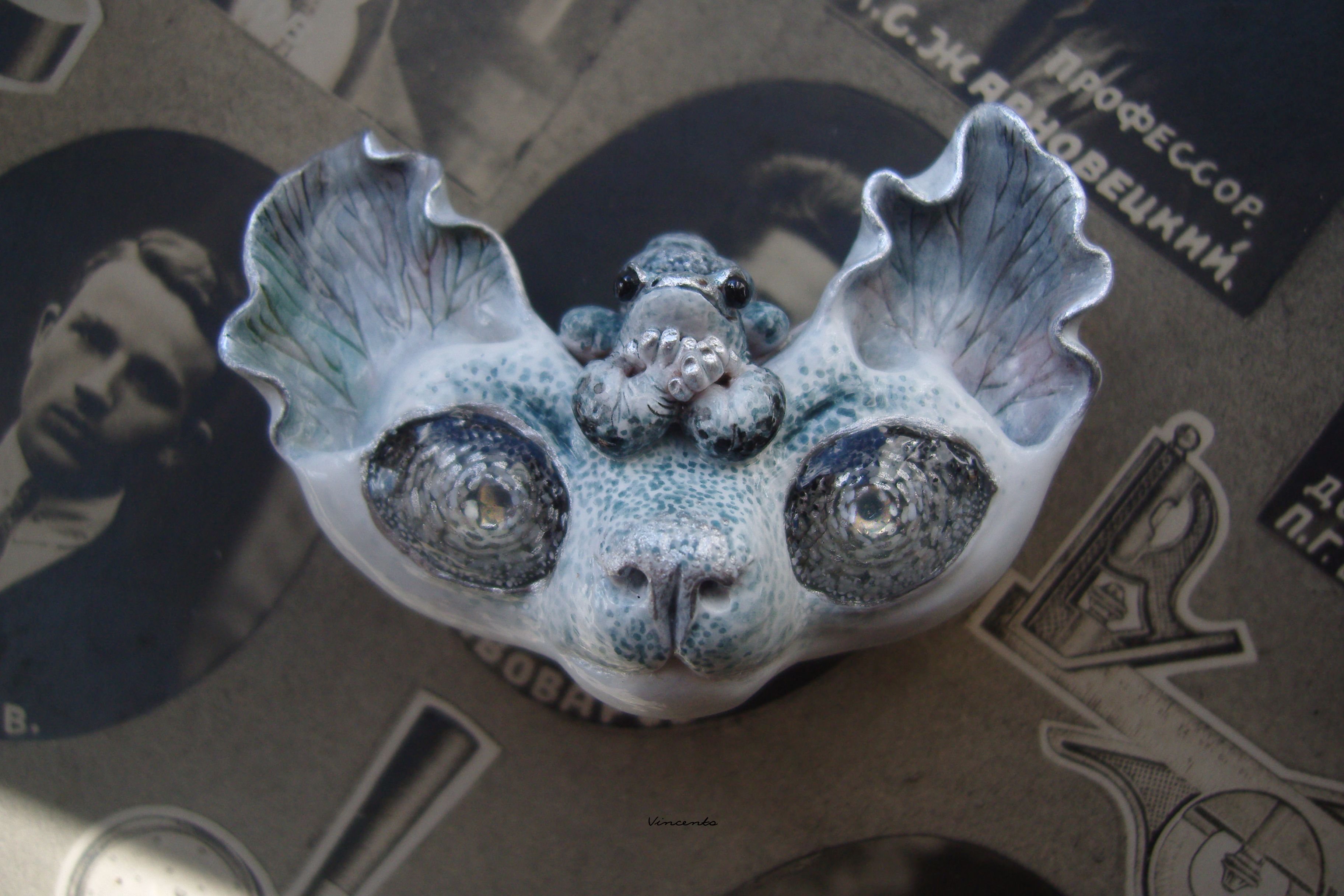 - Материалы: термоглина, папье-маше, акриловые краски, лак, стекловидная масса, металлическая фурнитура, акриловые кристаллы.