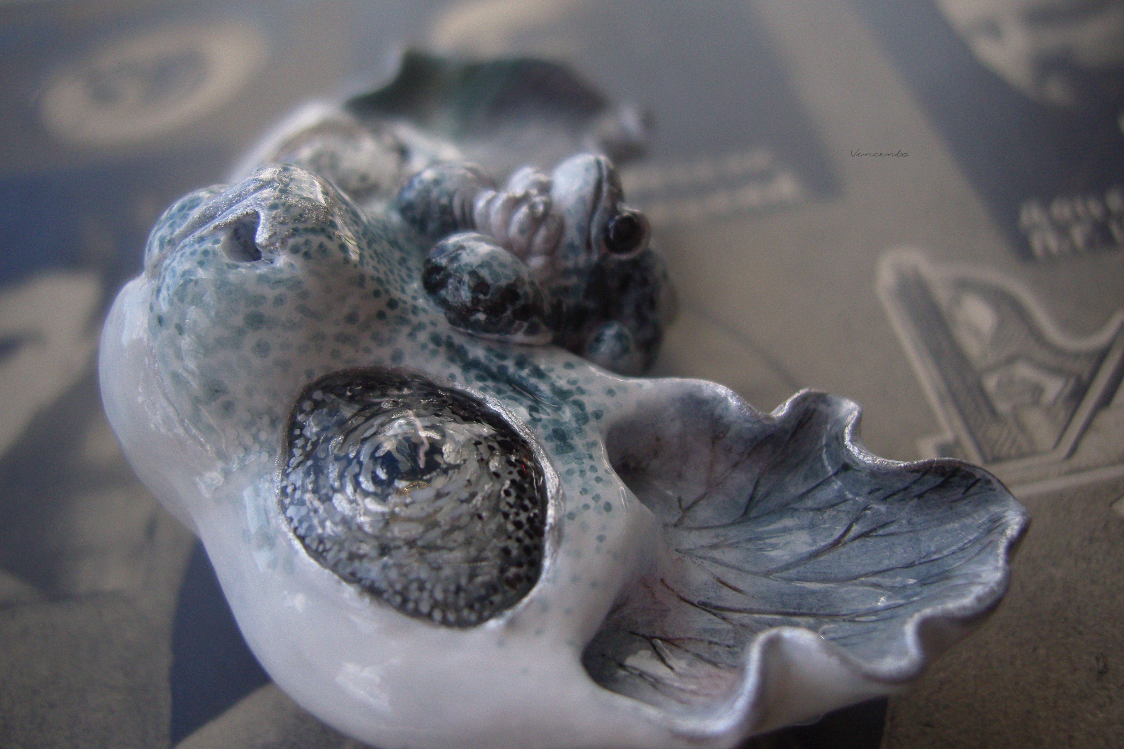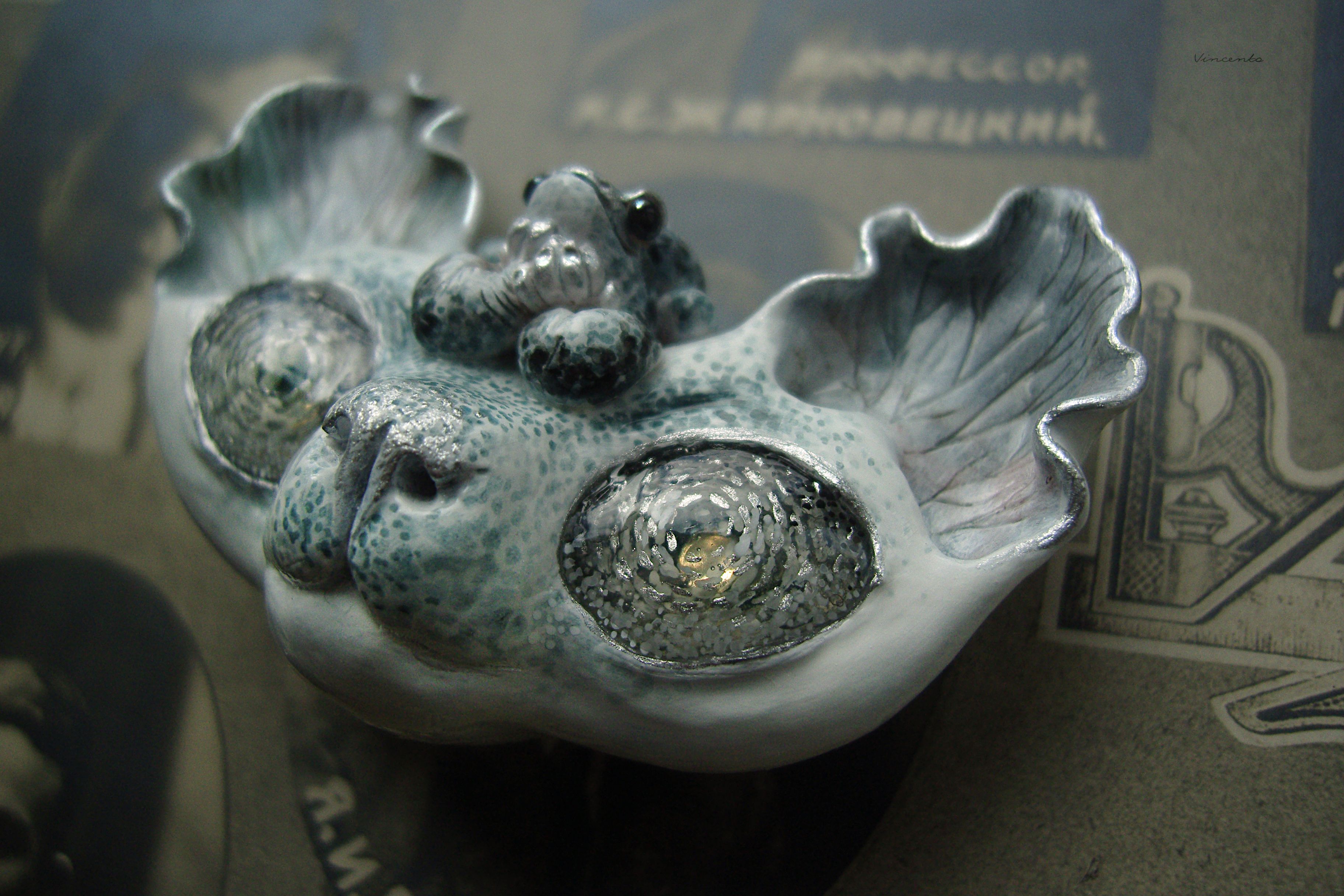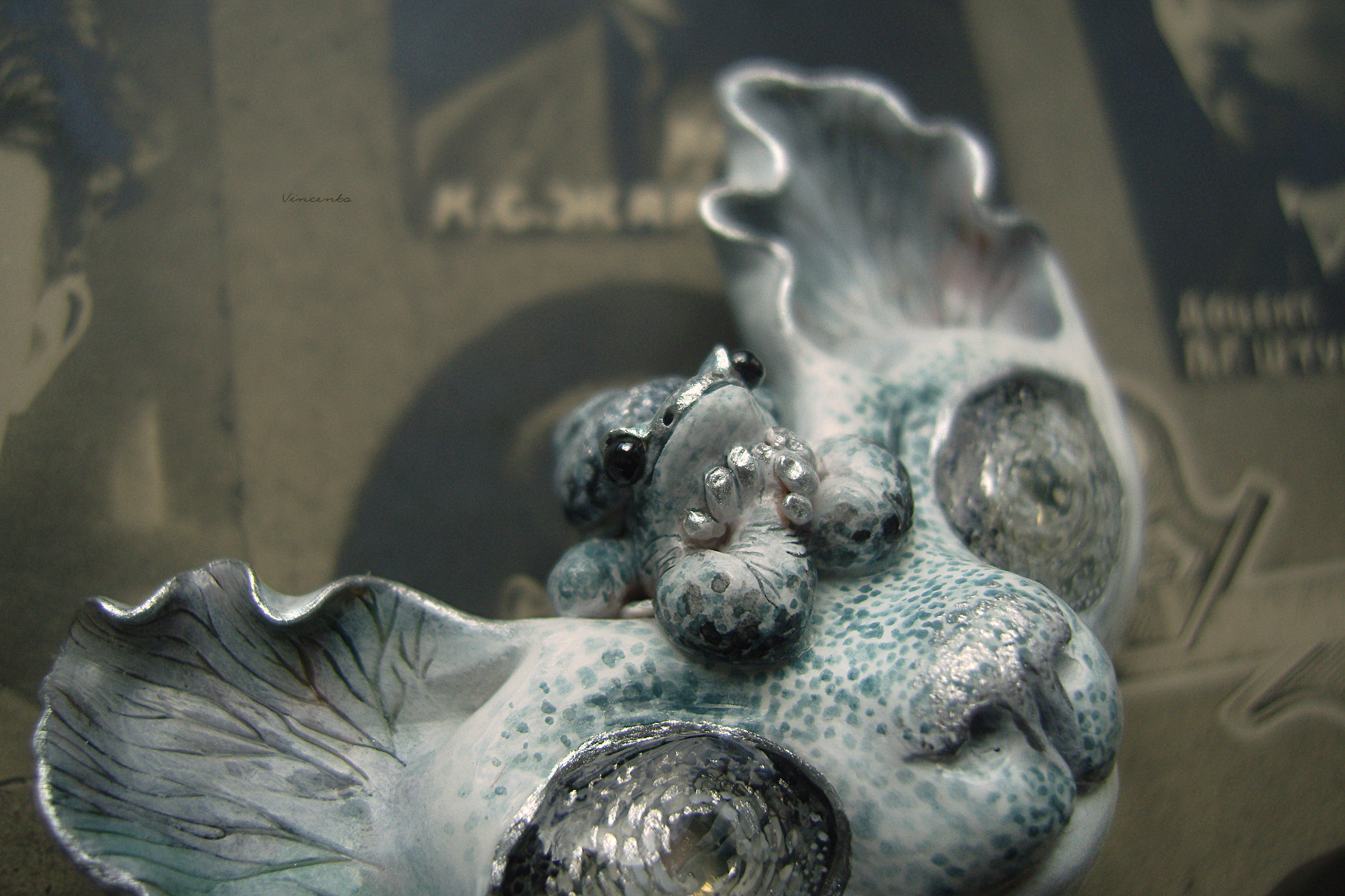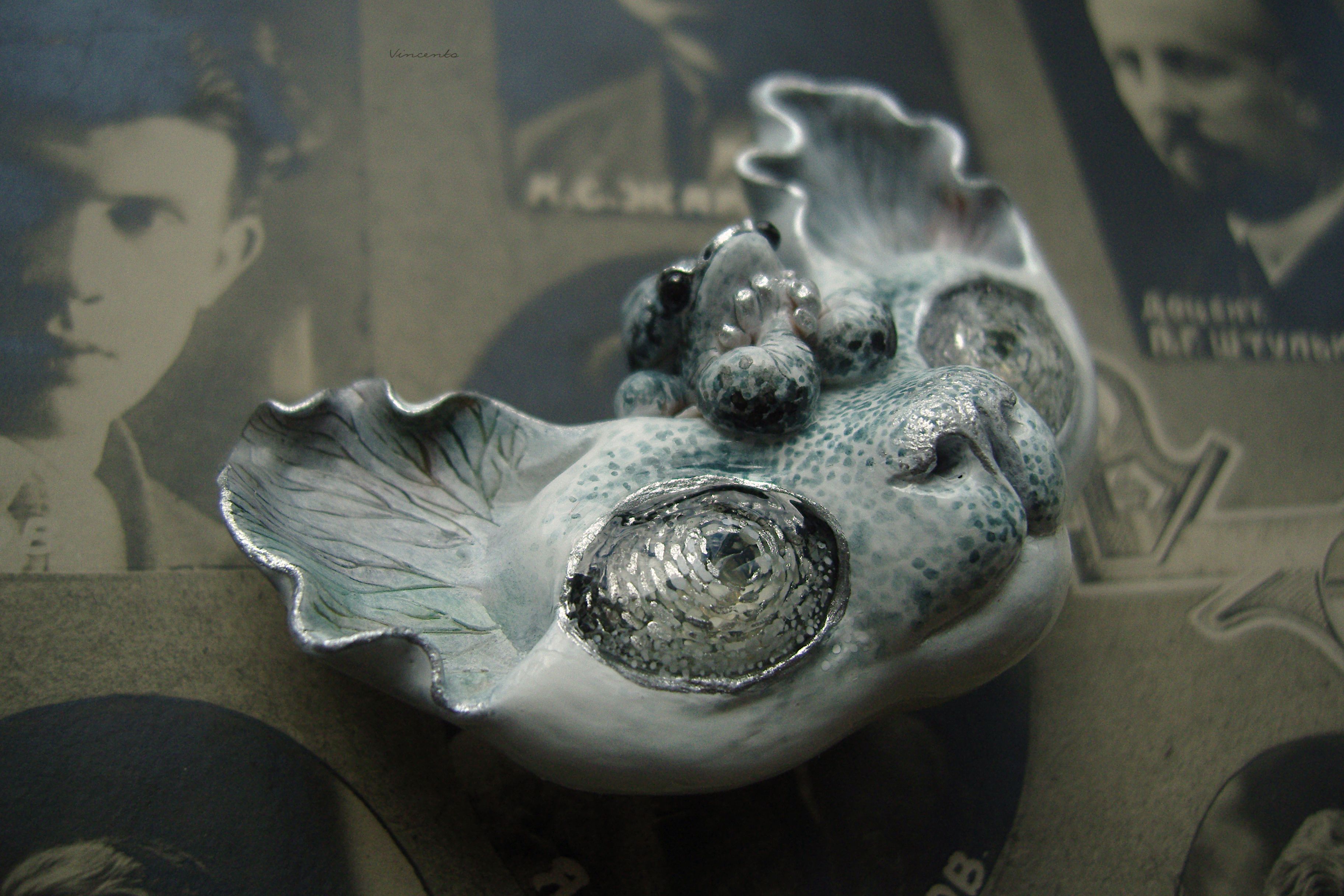 - Материалы: термоглина, папье-маше, акриловые краски, лак, стекловидная масса, металлическая фурнитура, акриловые кристаллы.