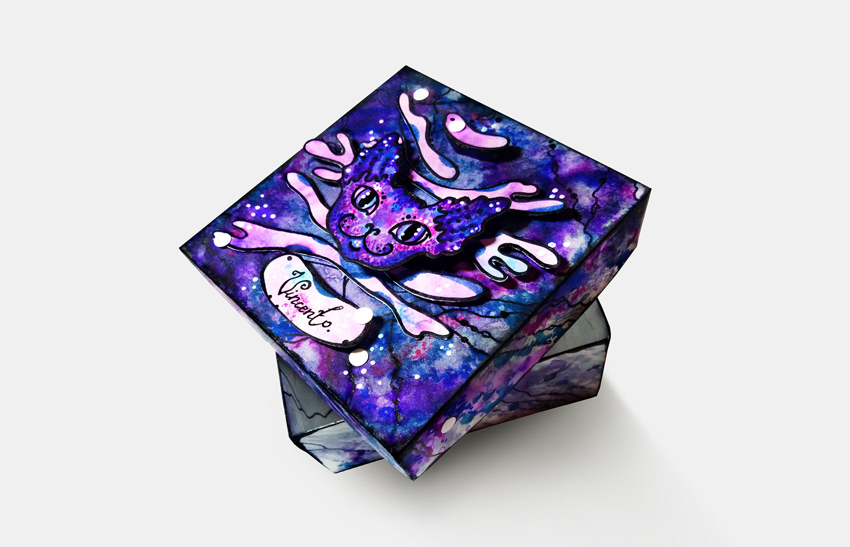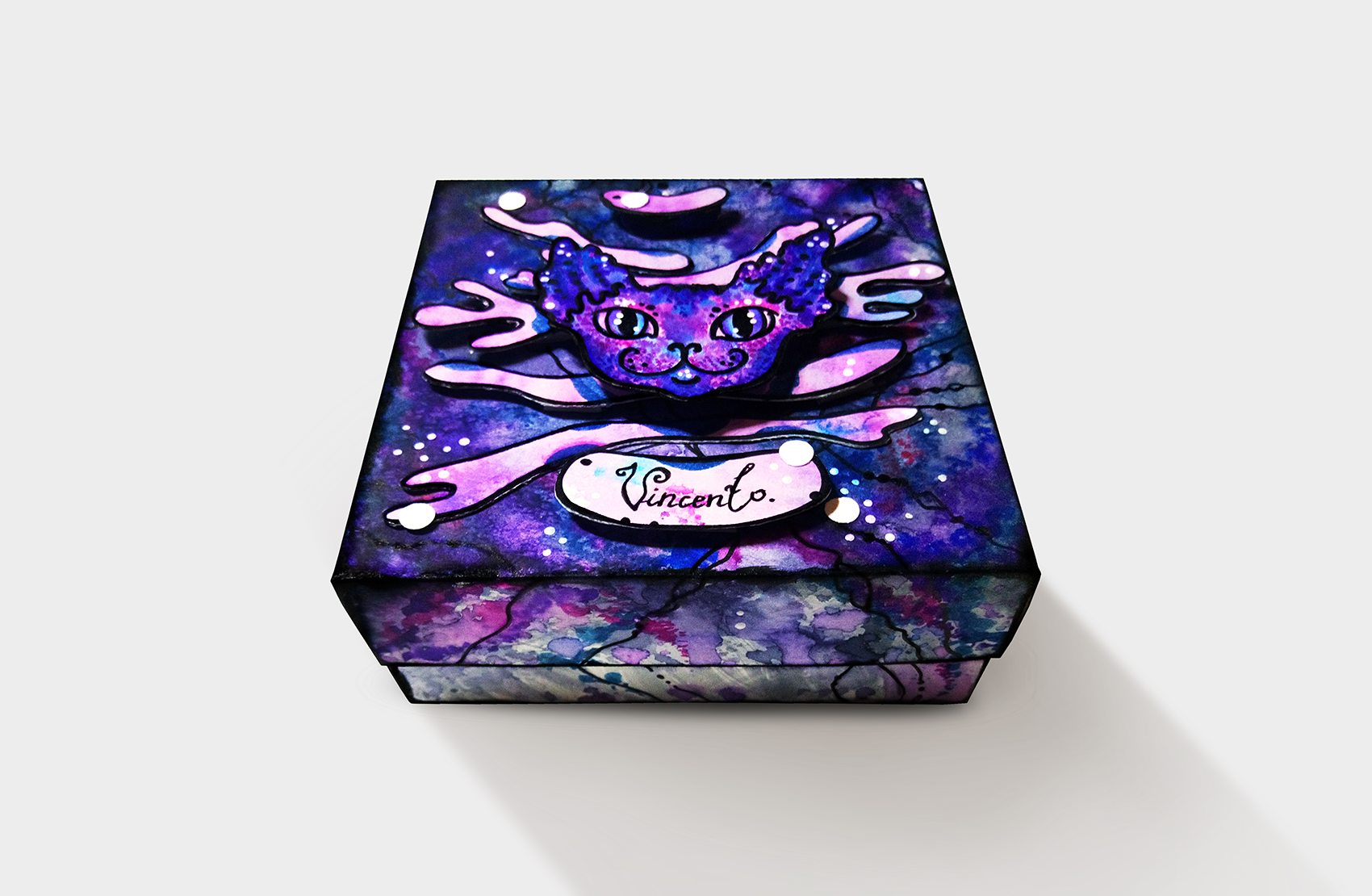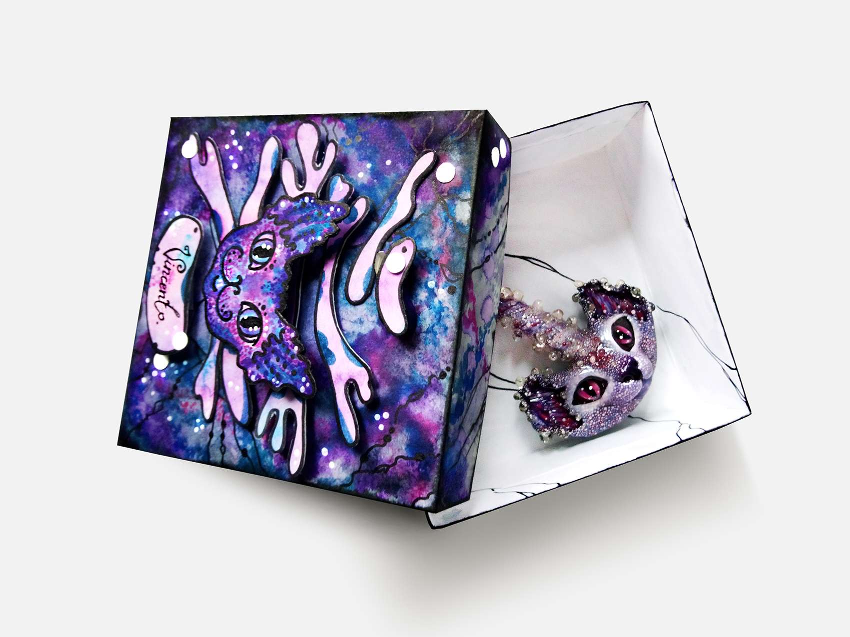 - Дизайн коробочки на фото был создан для броши с сумеречным Рогтябрём (вариация в фиолетовых тонах по мотивам осеннего украшения).