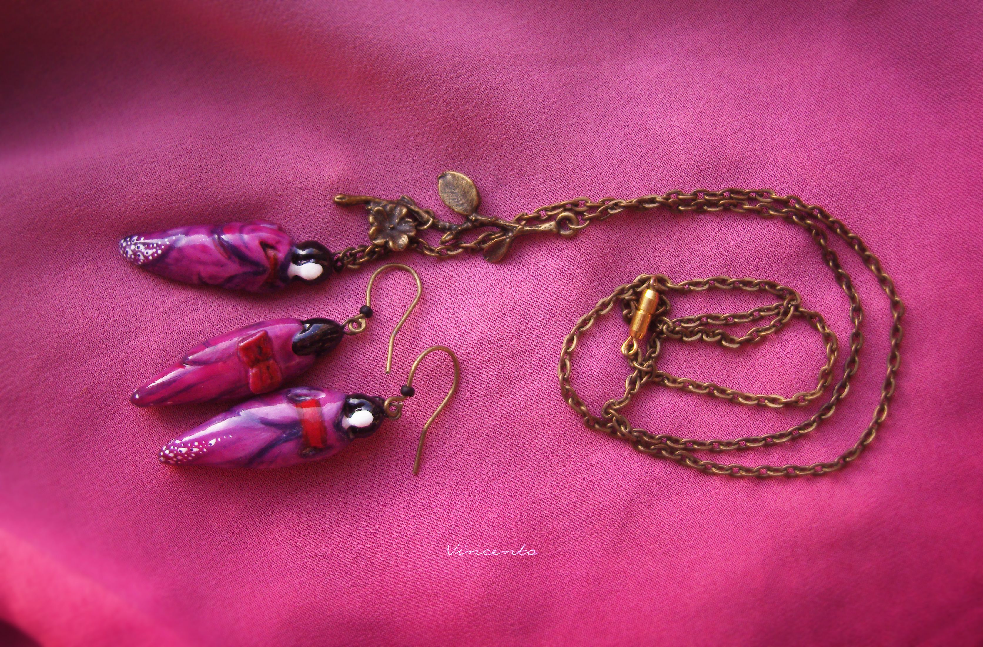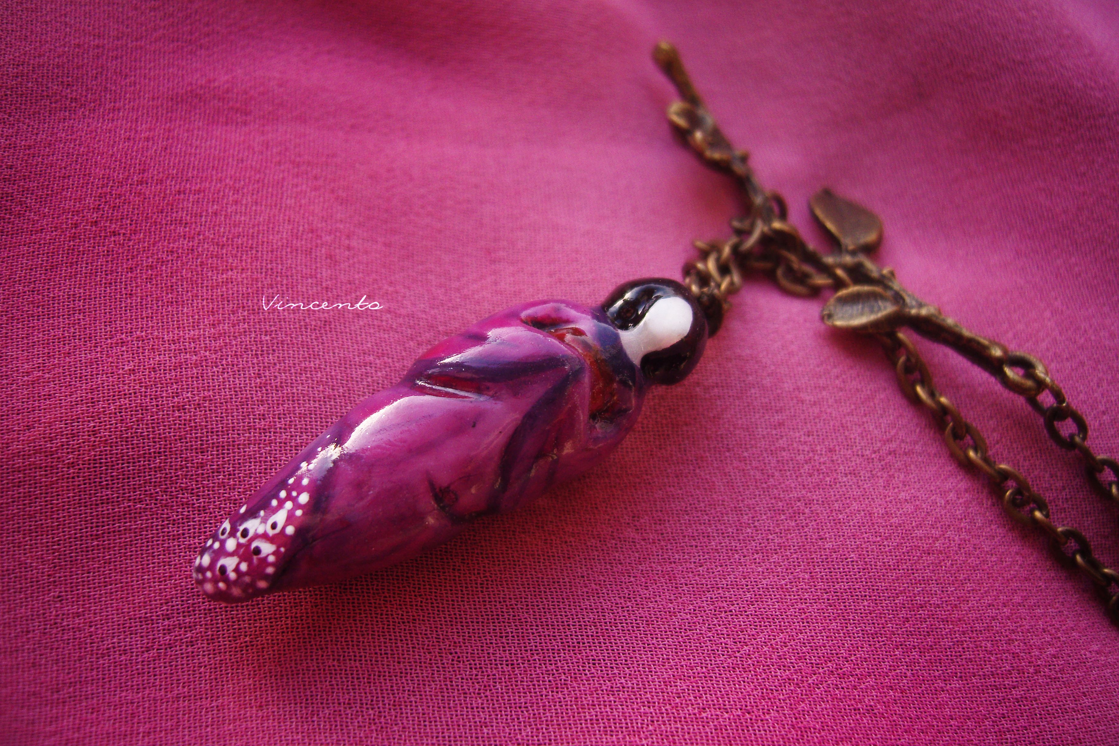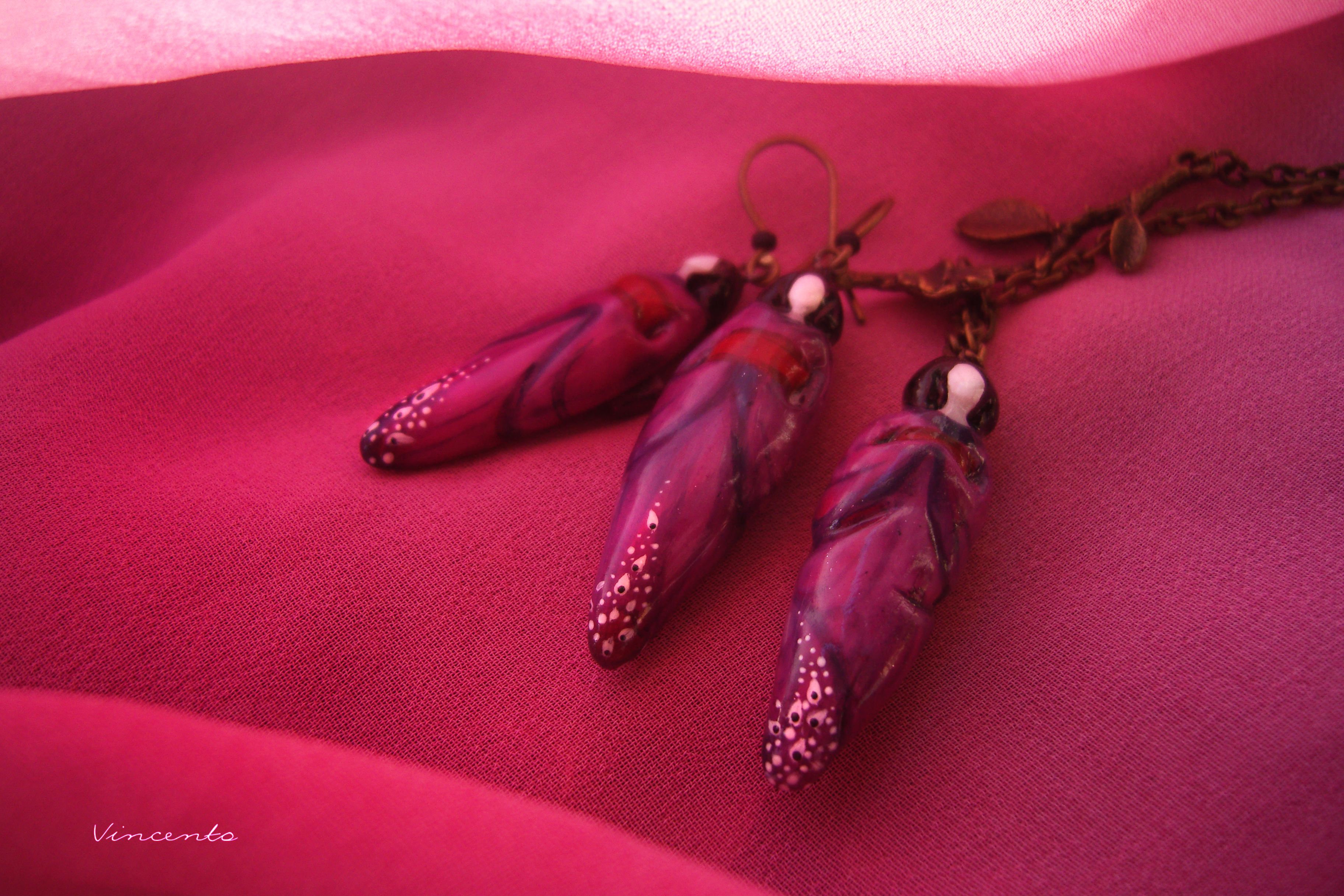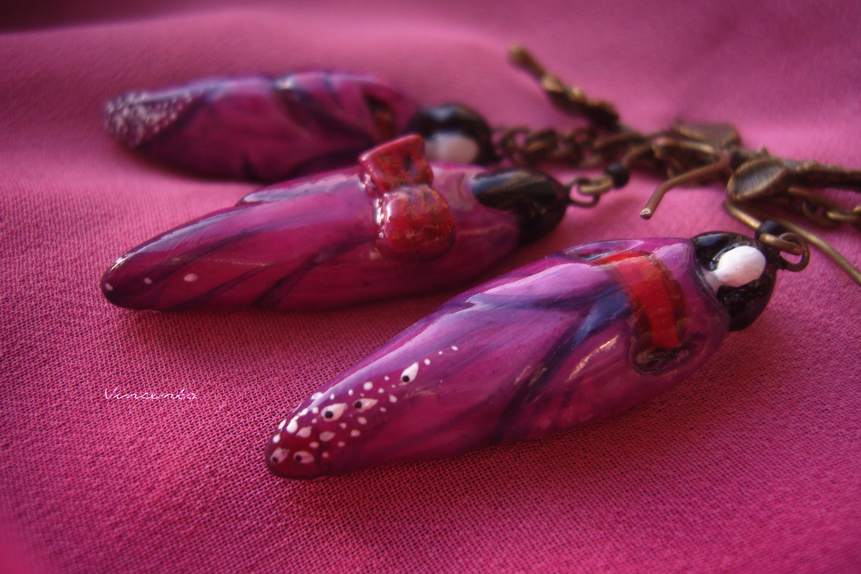 - Материалы: холодный фарфор, акриловые краски, лак, стекловидная масса, металлическая фурнитура, чешский бисер.