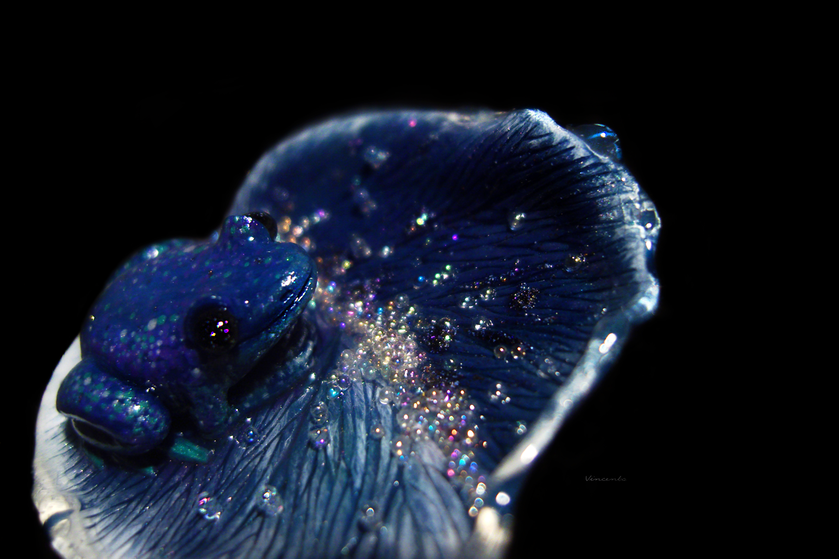 - Зачарованная, совершенно волшебная брошь в виде листа космической кувшинки, усыпанного звёздной пылью и квазарами лишайников цвета глубокого индиго, и миниатюрной лягушки - принцессы живых созвездий.