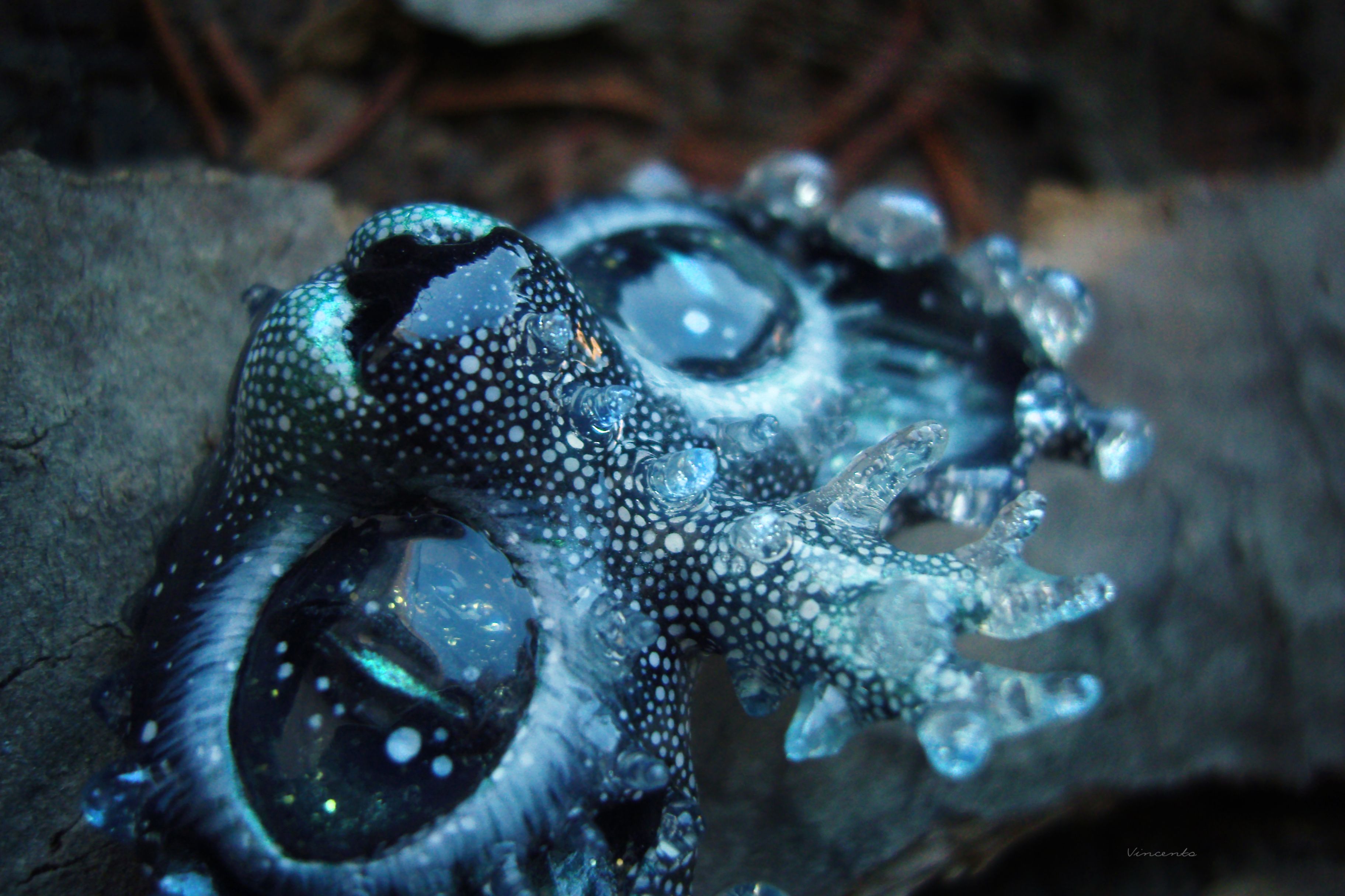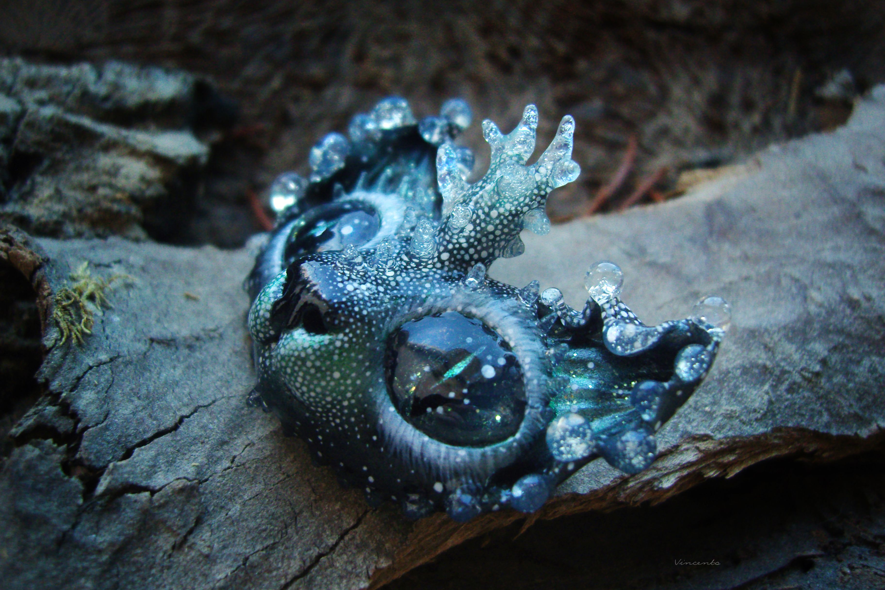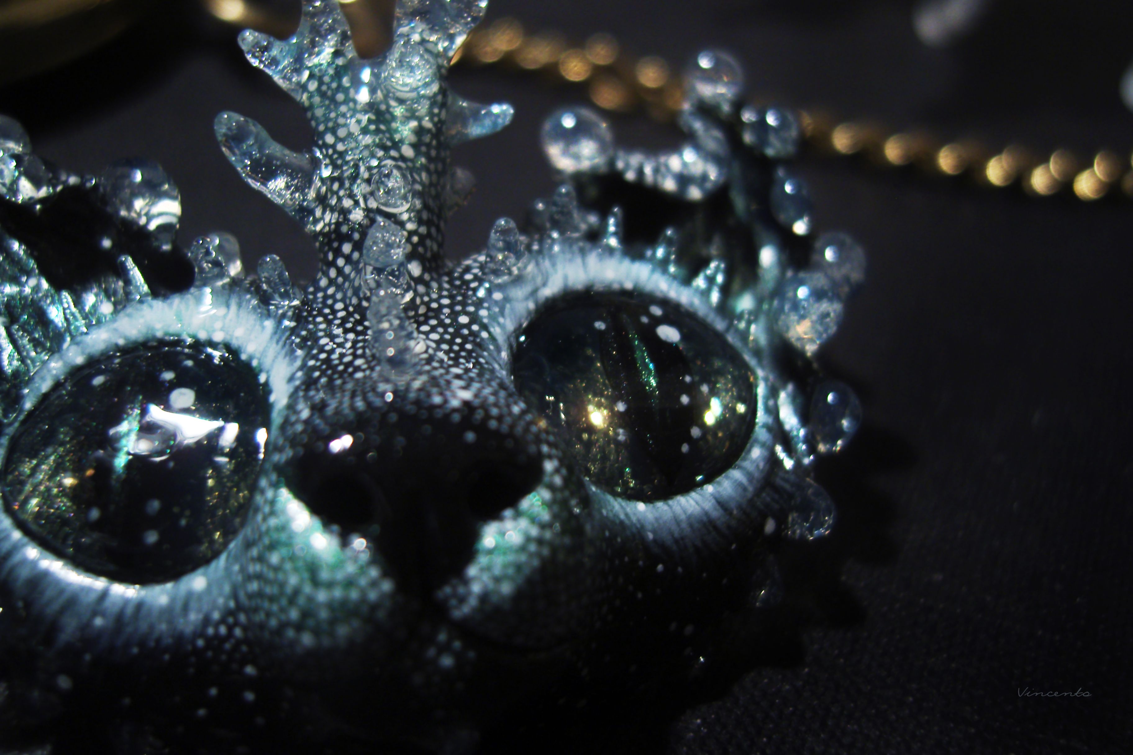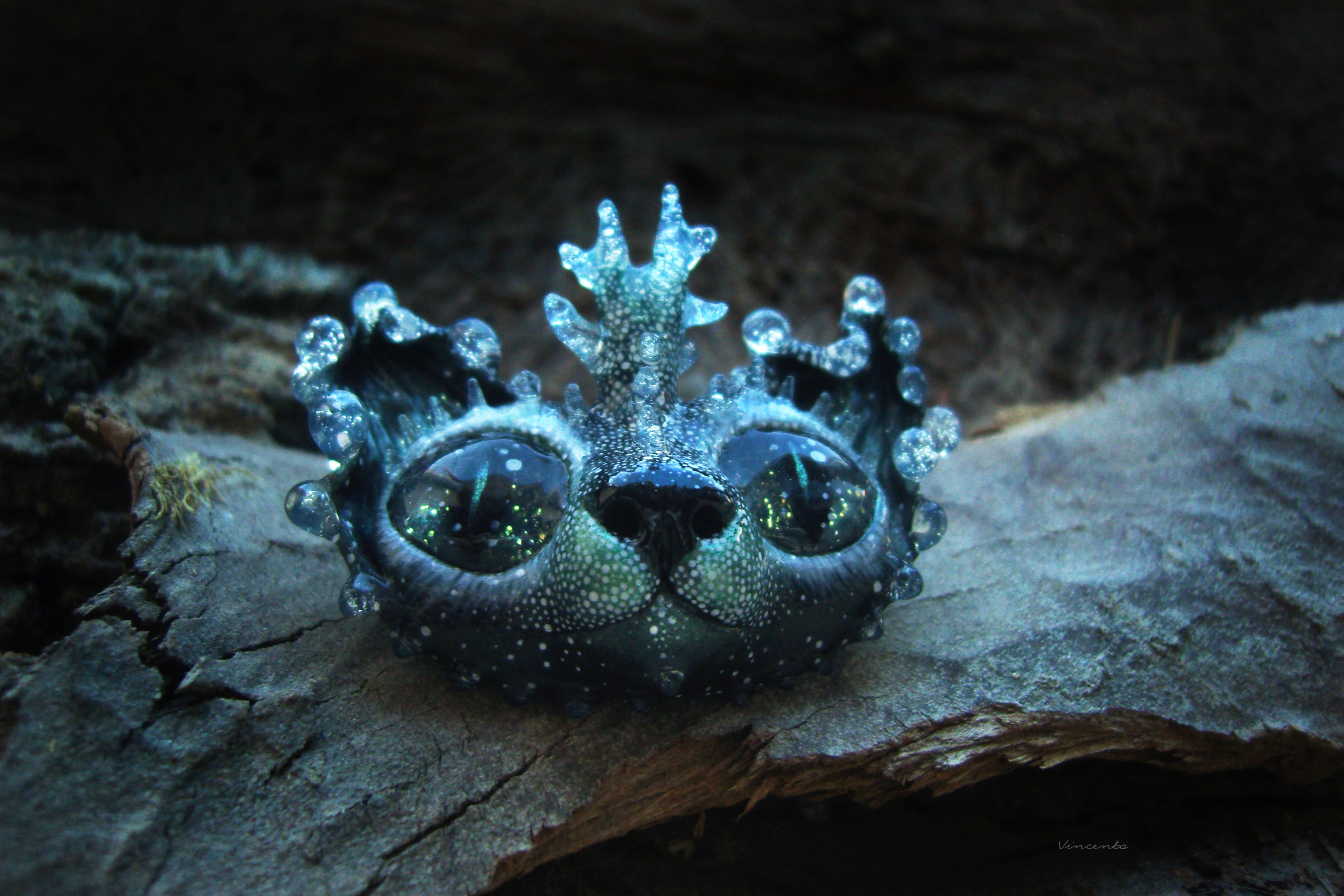 - Лёд сделан вручную на основе стекловидной массы и отливает голубовато-золотым (лёгкий эффект "лунного камня").