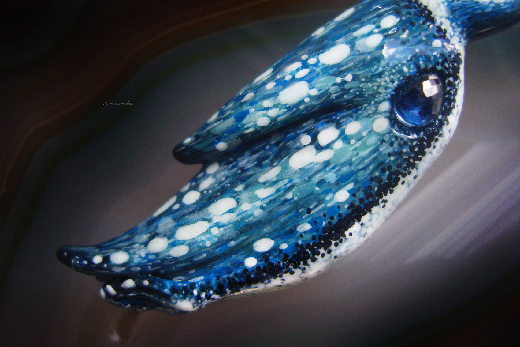 - Материалы: термоглина, папье-маше, акриловые краски, пигменты, лаки, стекловидная масса, металлическая фурнитура, натуральный сапфир, акриловые кристаллы.