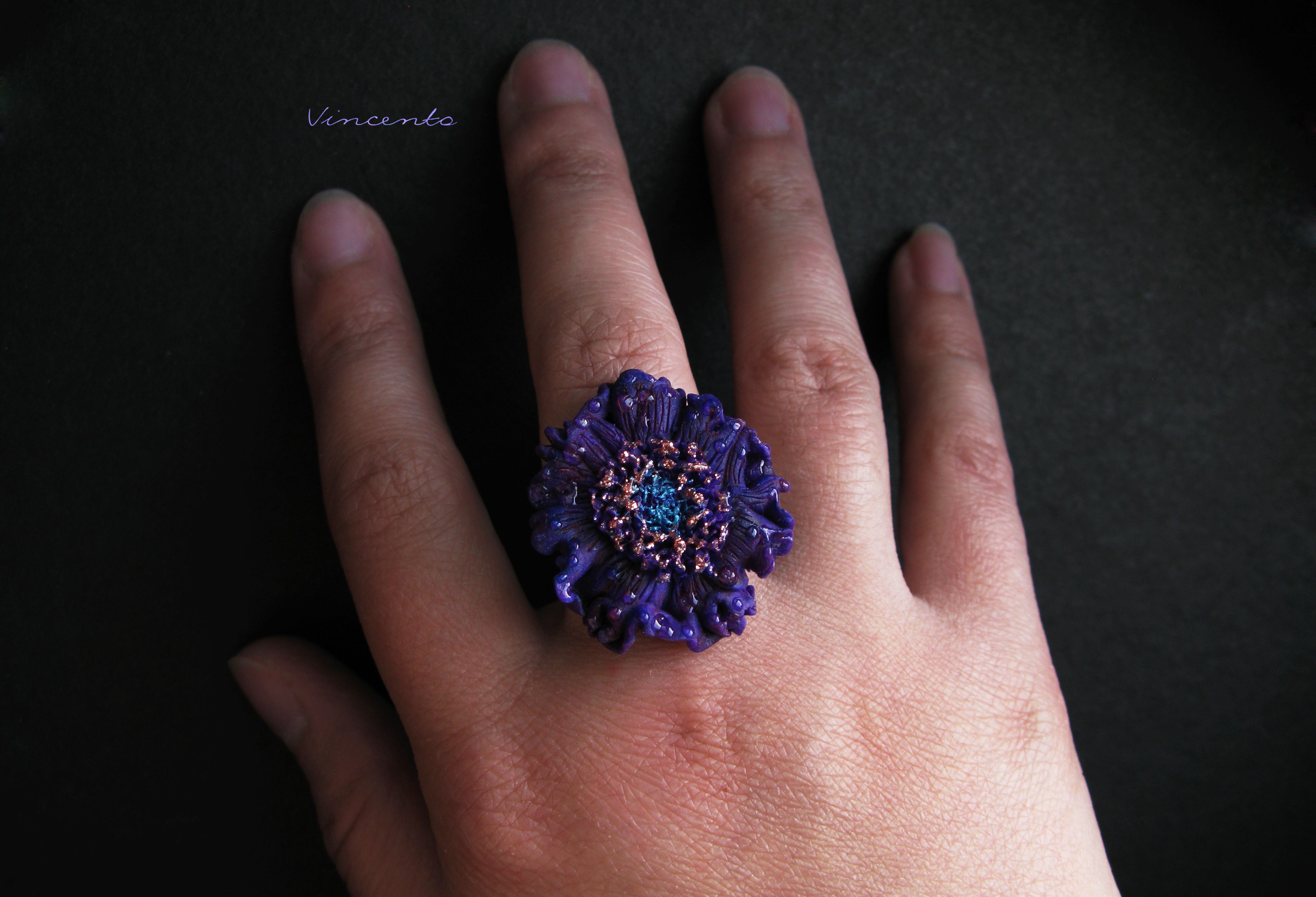 - Кольцо "Пыльца Фей" - яркое фиолетово-синее украшение ручной работы.