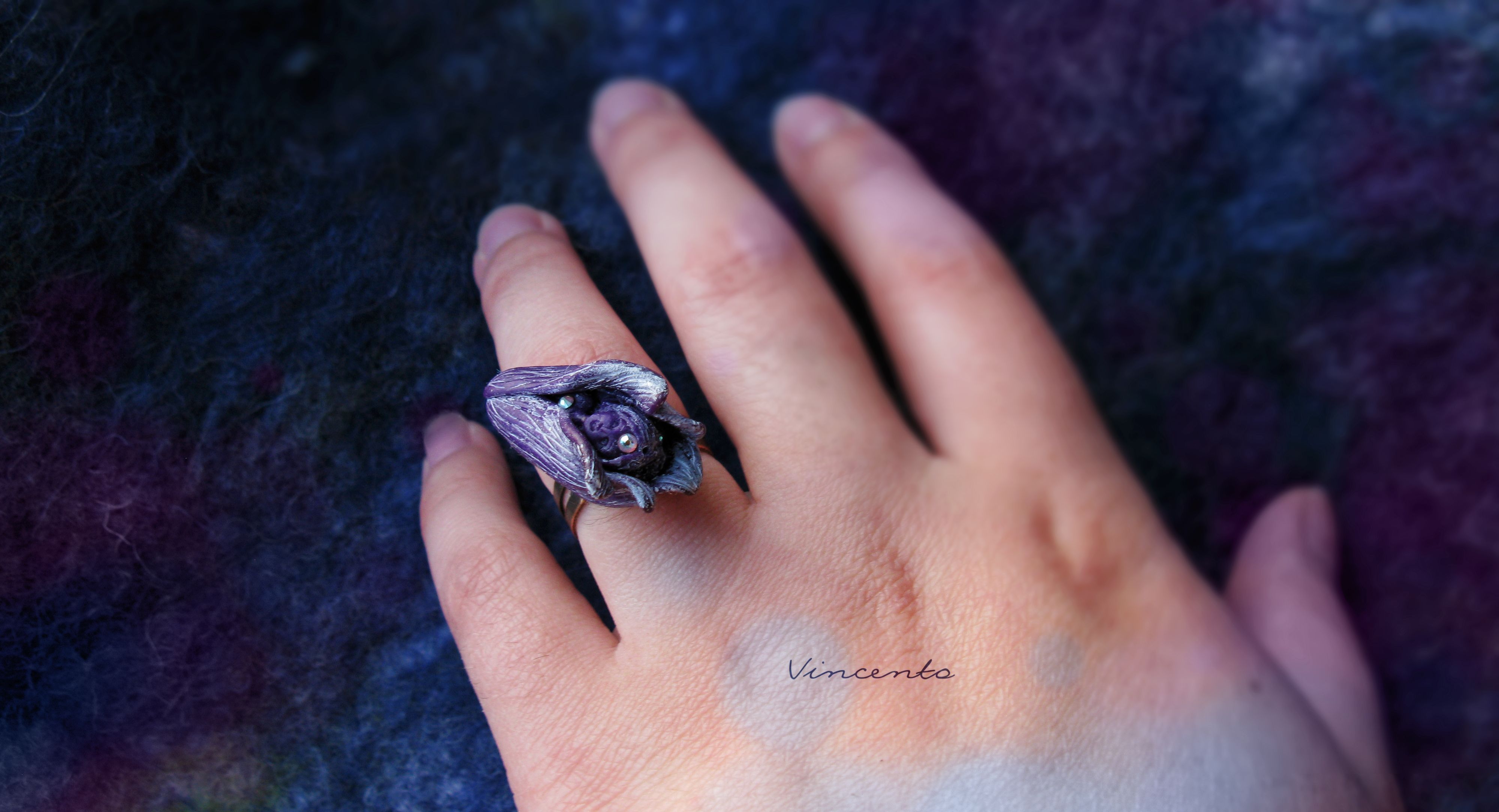 Волшебное кольцо с феей "Ночная Фея (Фея Цветов)" из коллекции необычных украшений Винсенто