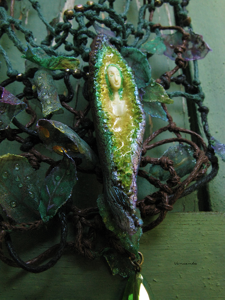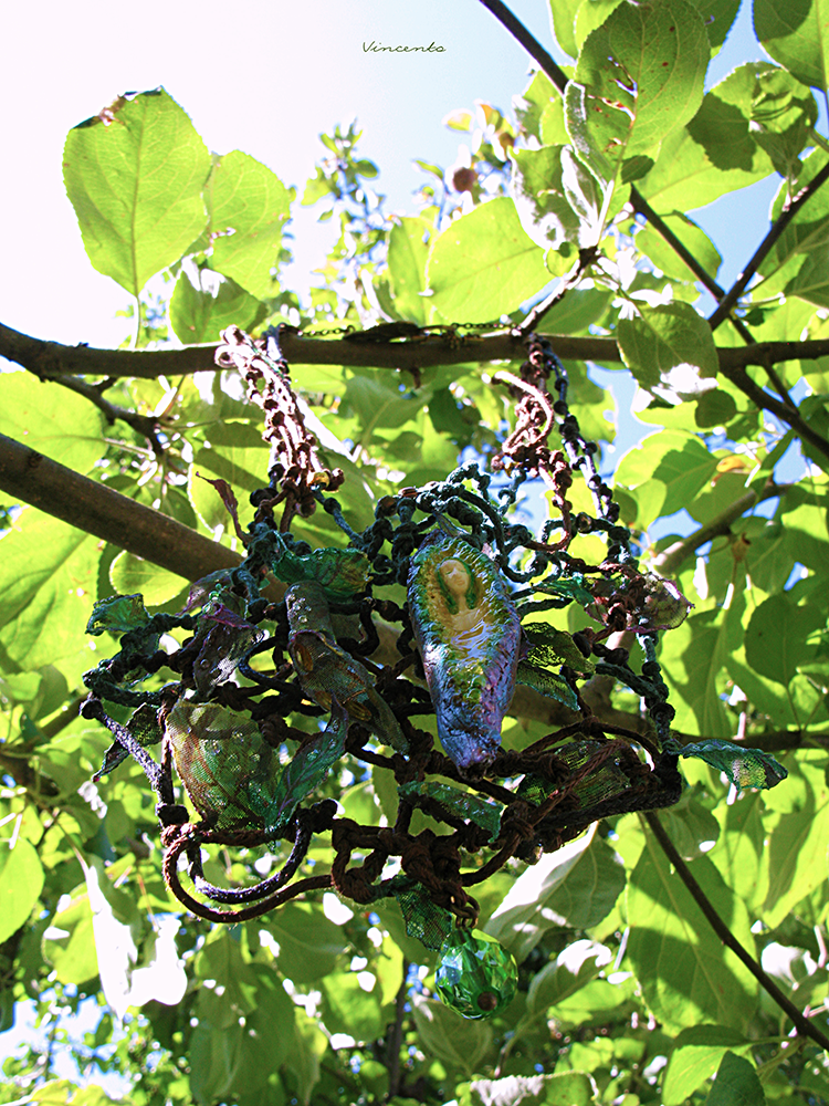 - Пышное колье в виде мифического духа леса - Дриады, прячущейся в ветвях волшебного дерева.