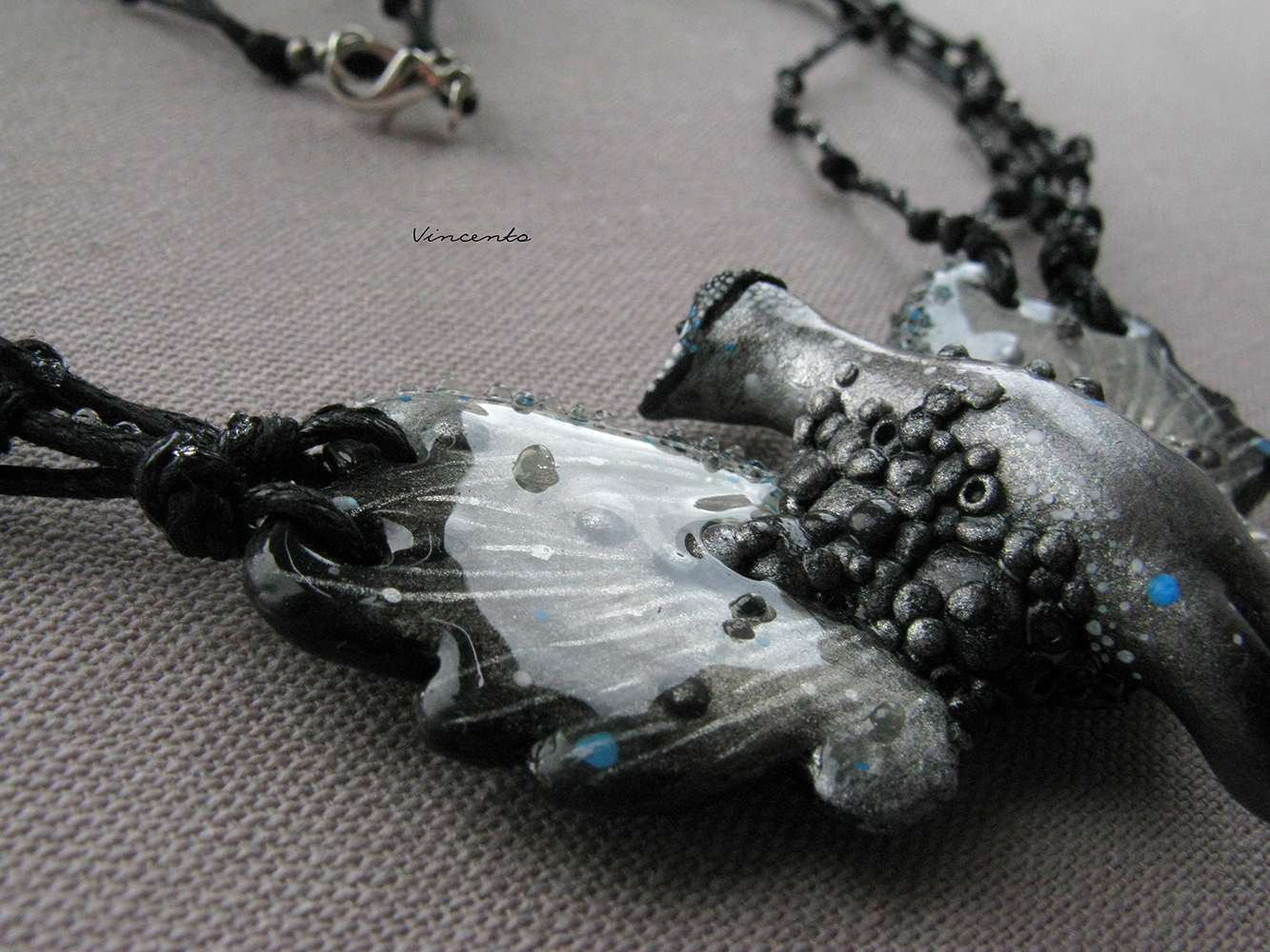 - Материалы: термоглина, папье-маше, акриловые краски, лак, стекловидная масса, металлическая фурнитура, вощёный шнур.