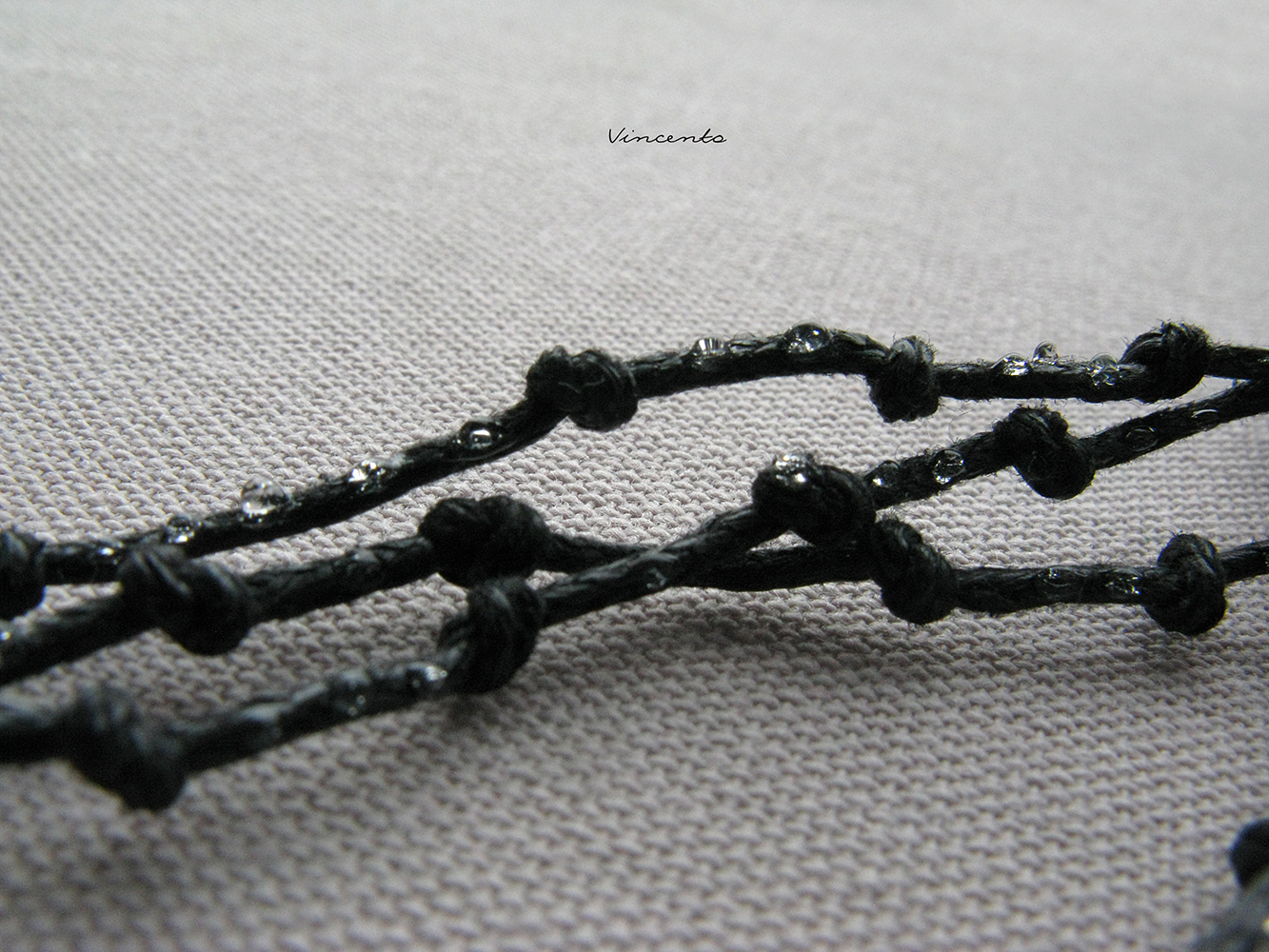 - Шнуры на колье также украшены крошечными капельками тумана.