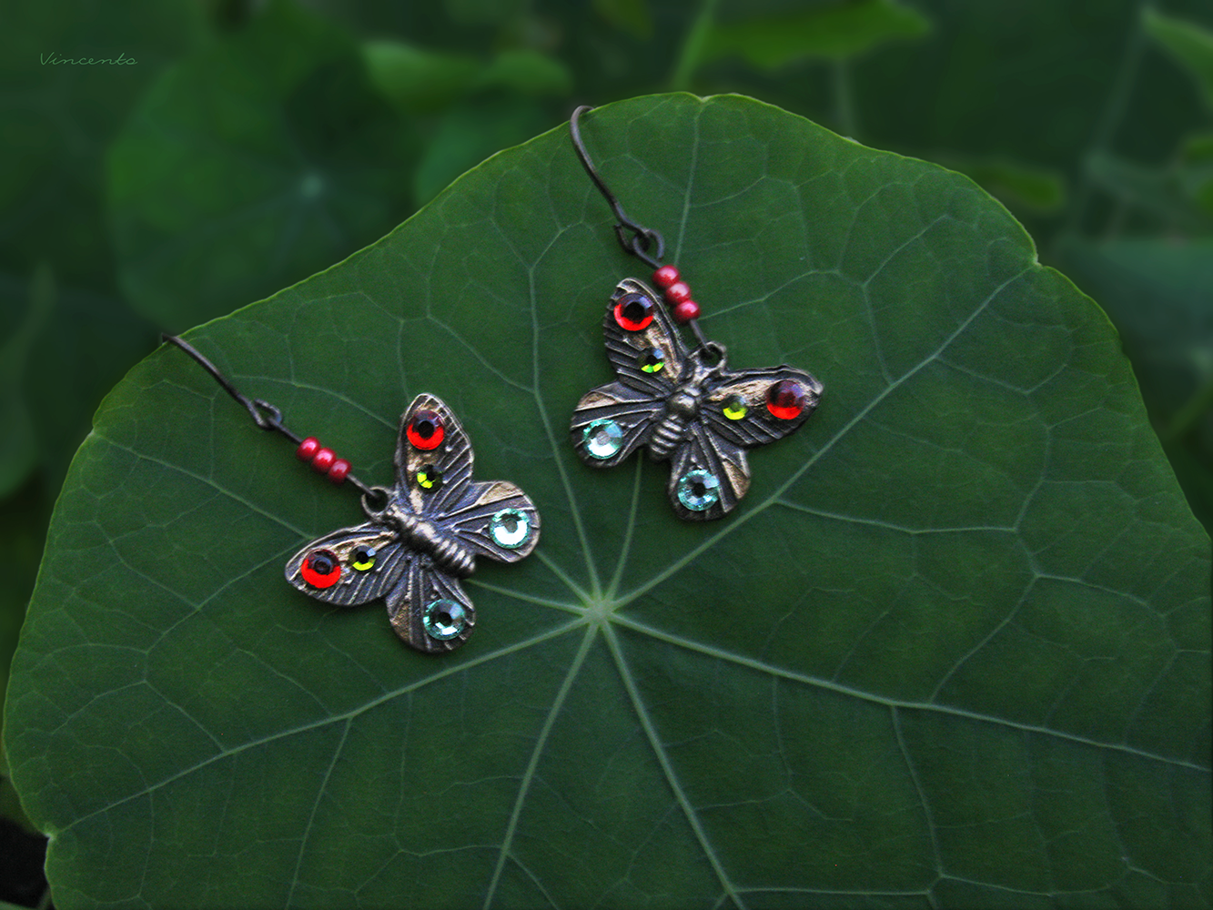 - Пёстрые серьги-бабочки с цветными стразами добавят Вашему образу мечтательные нотки восточных легенд!