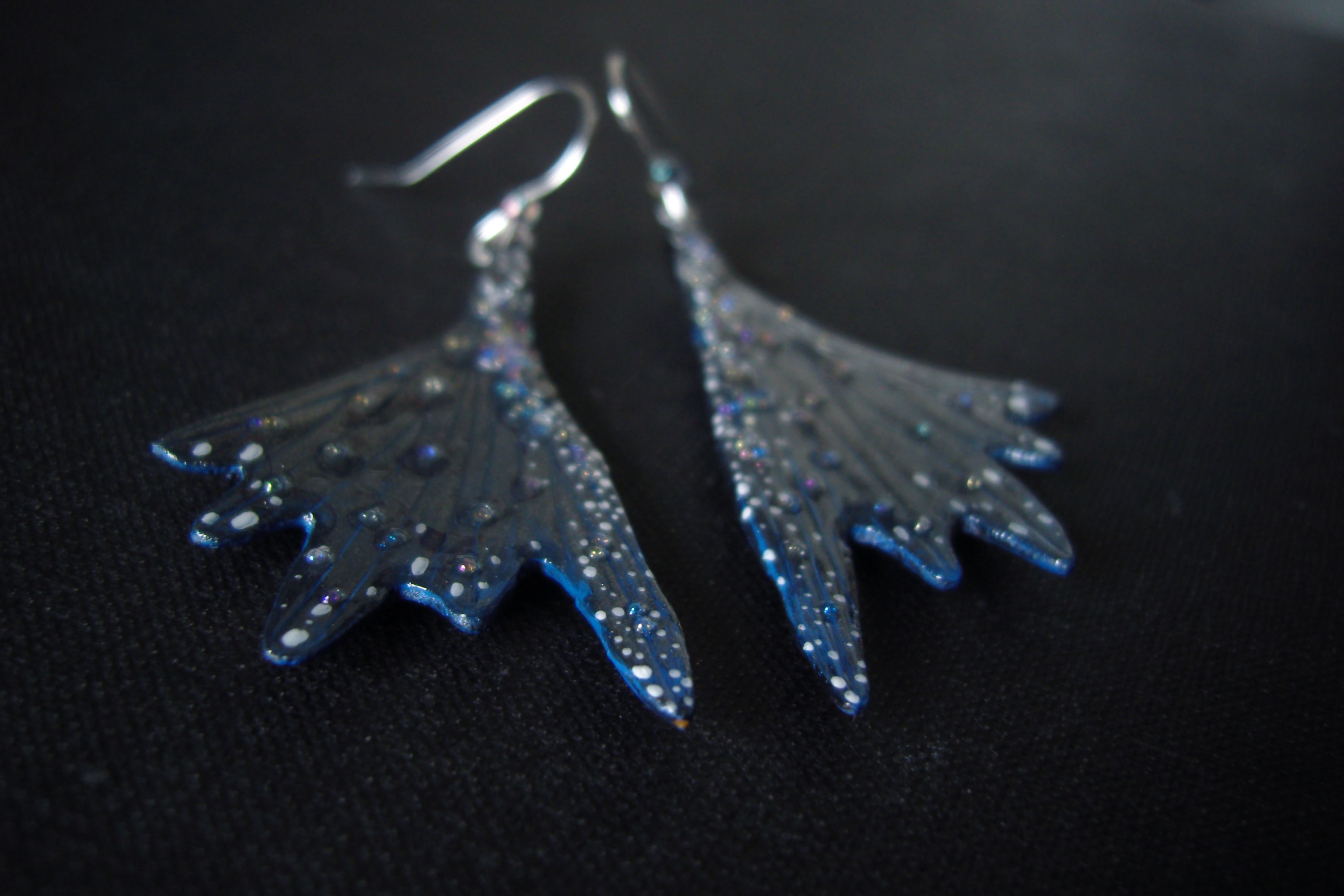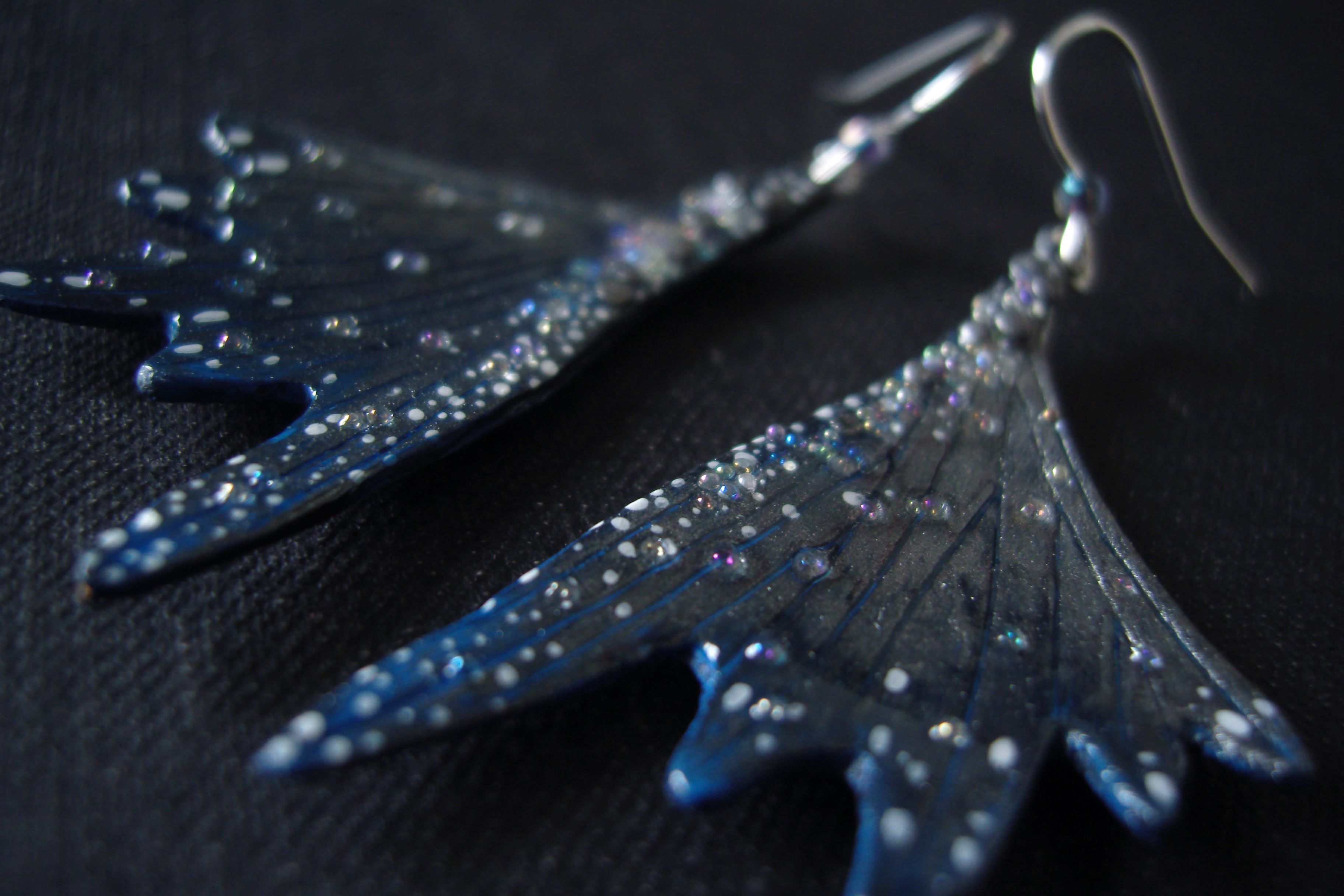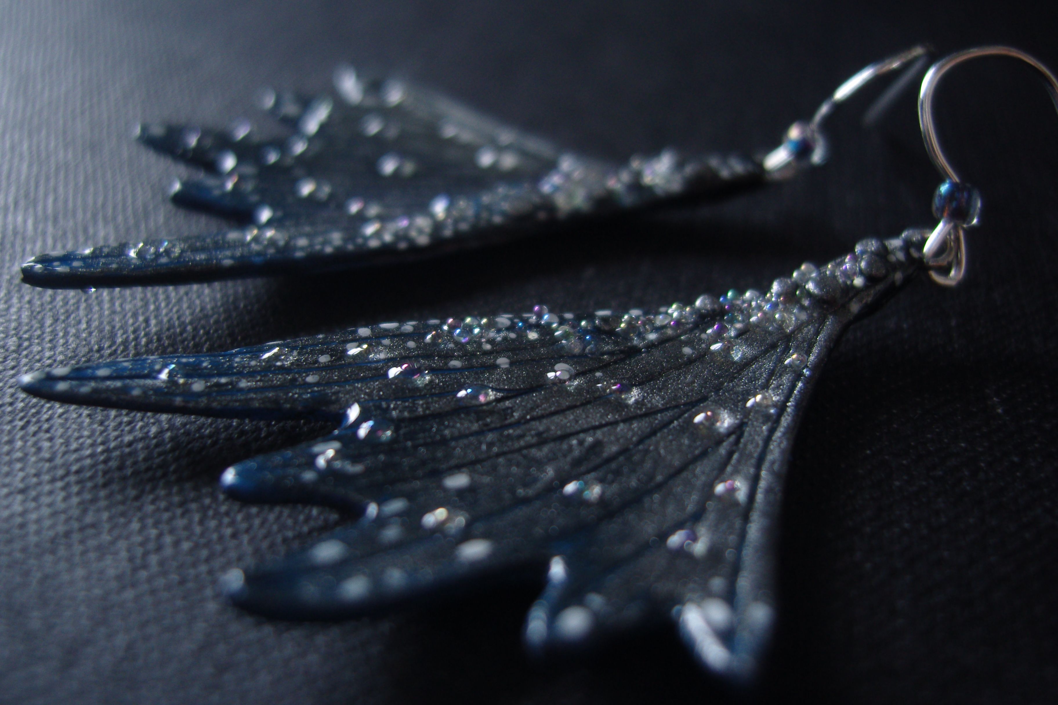 - Мистические серьги-крылышки в тёмной, серебристо-синей цветовой гамме, с чешским и микробисером.