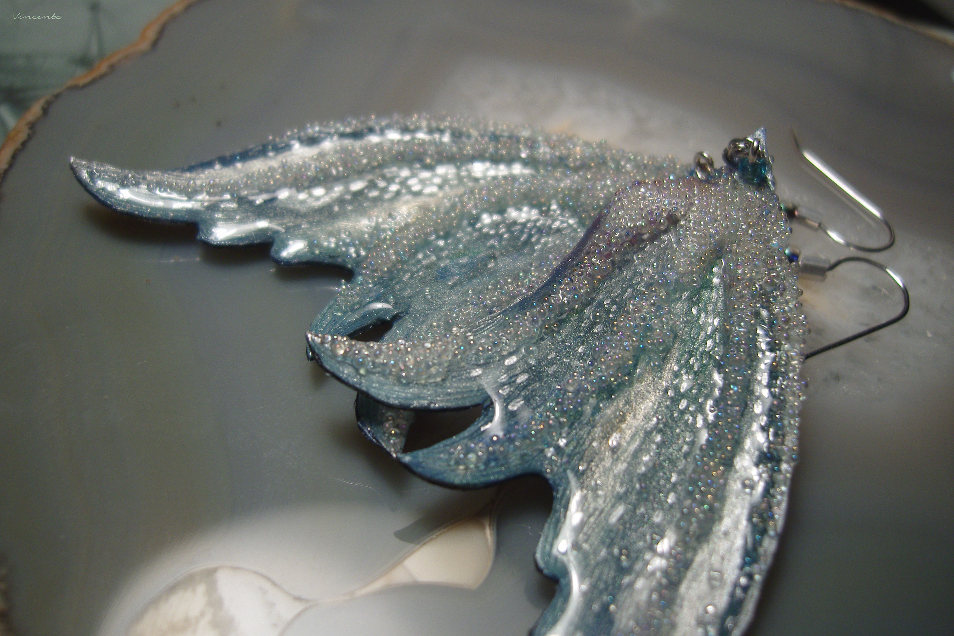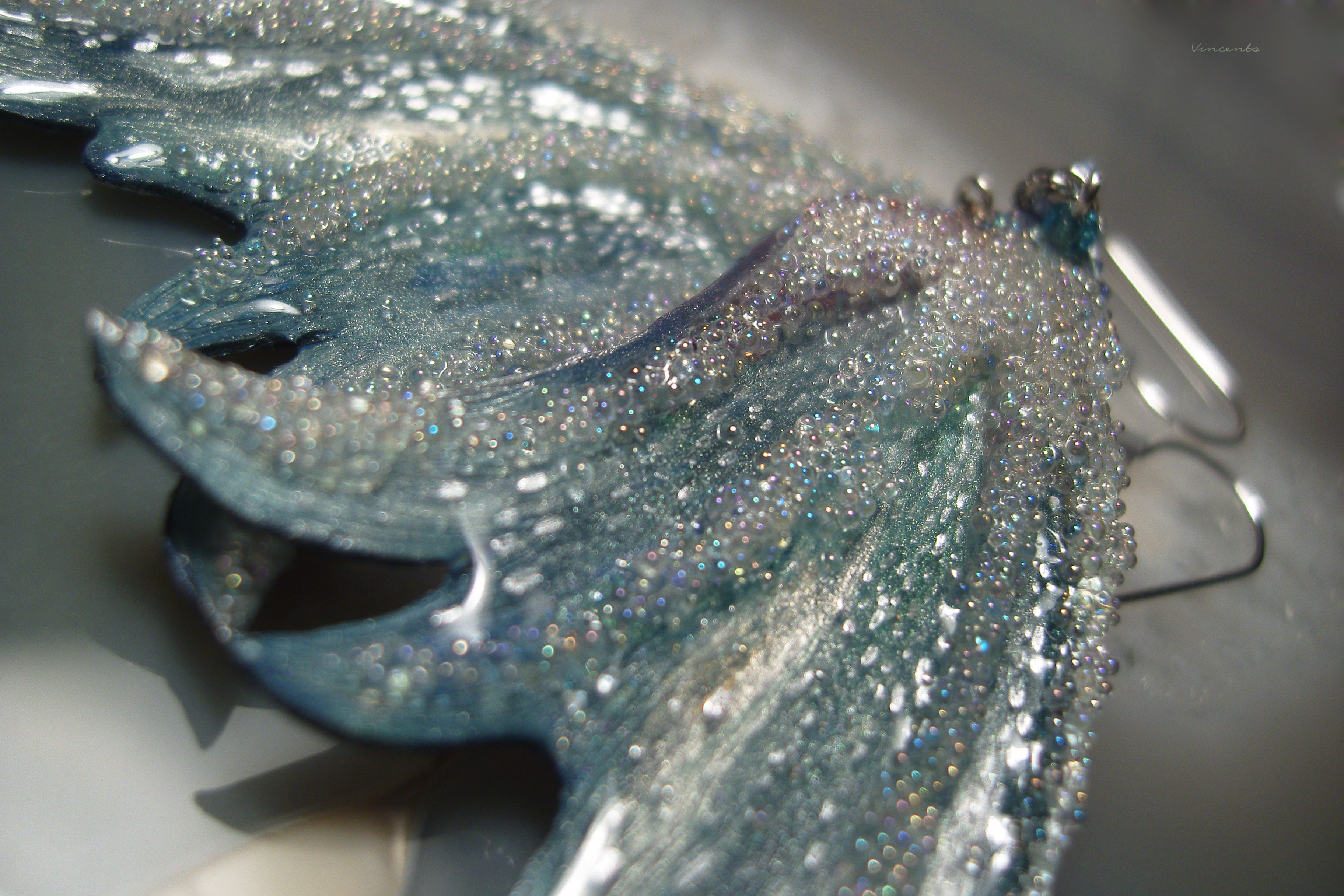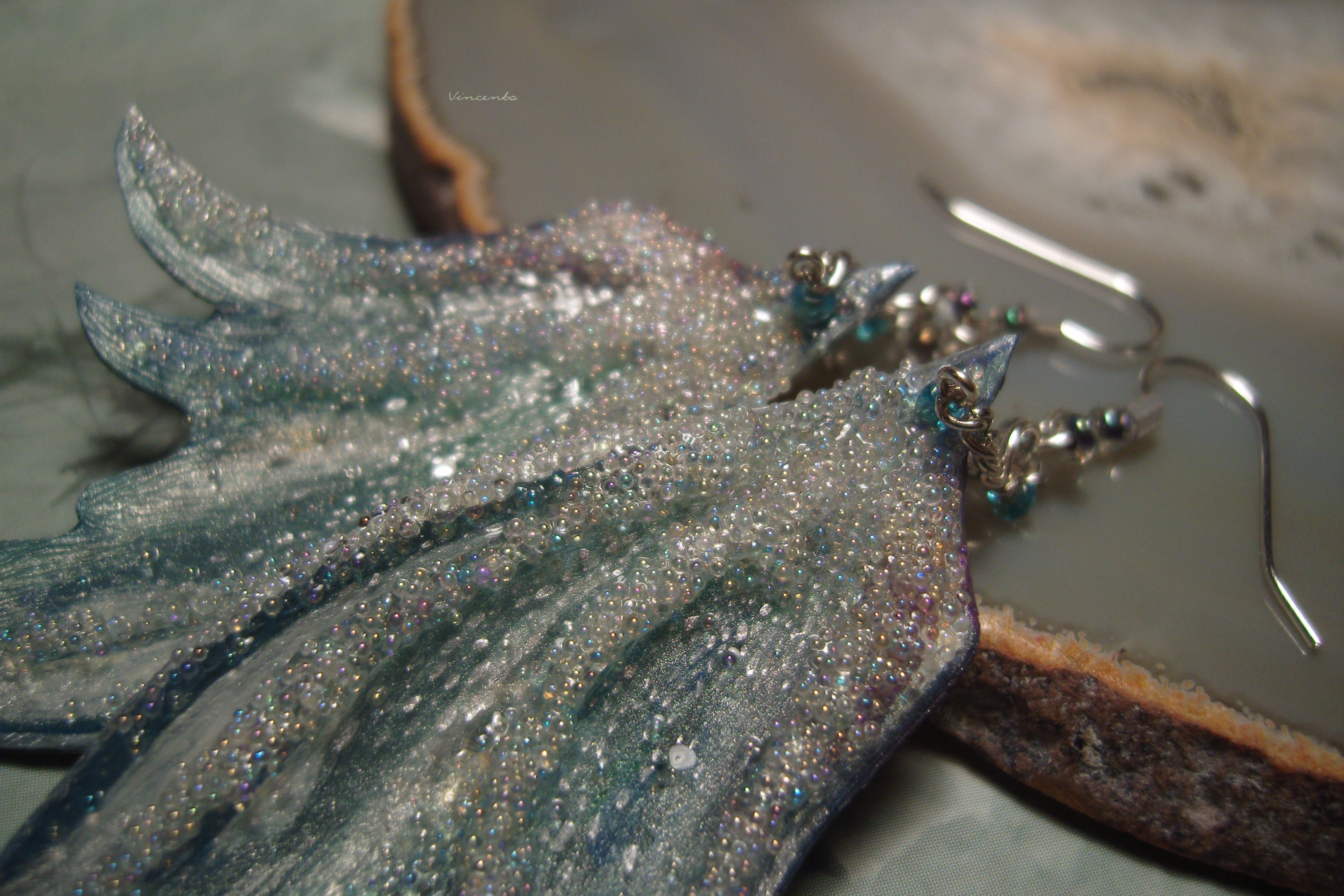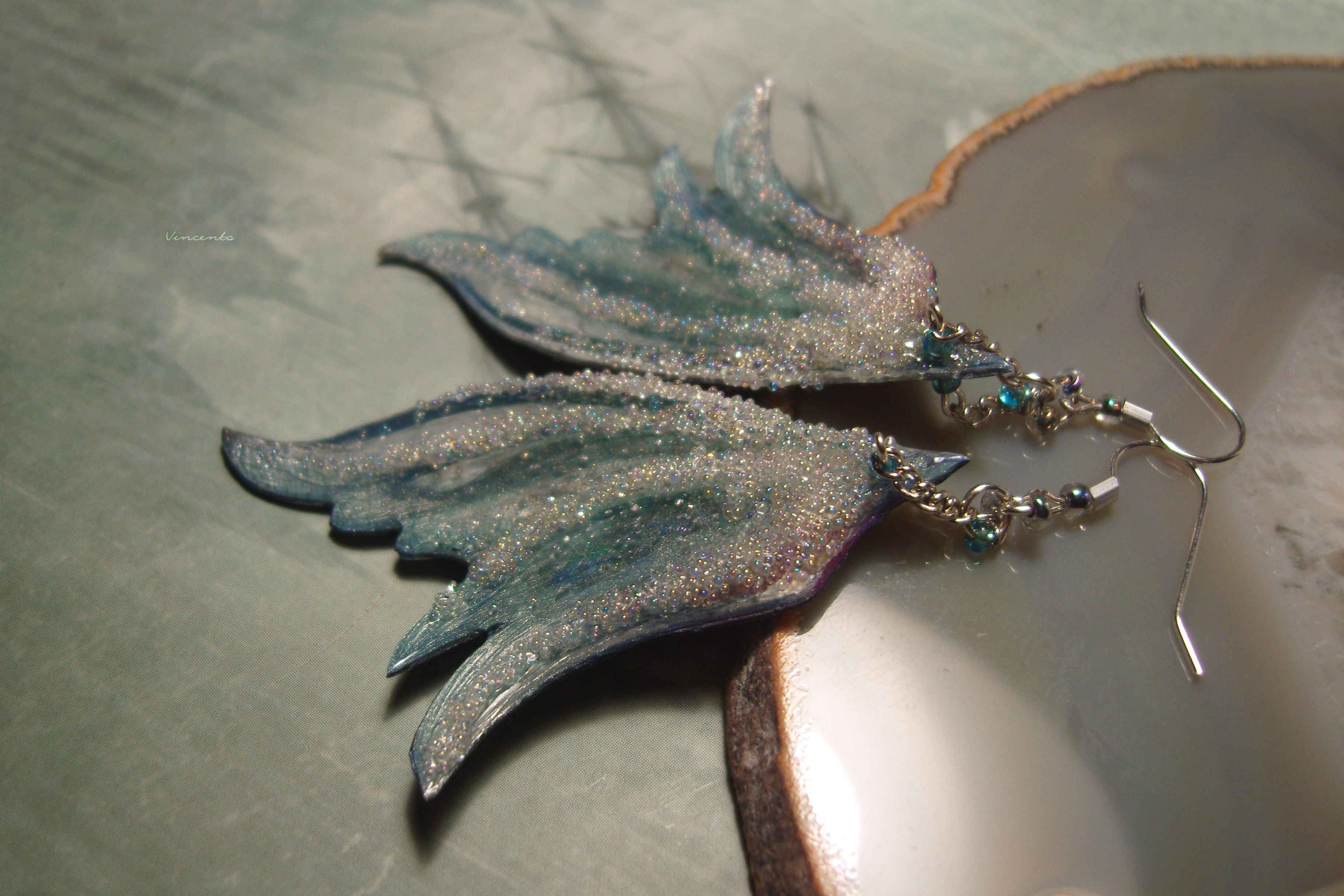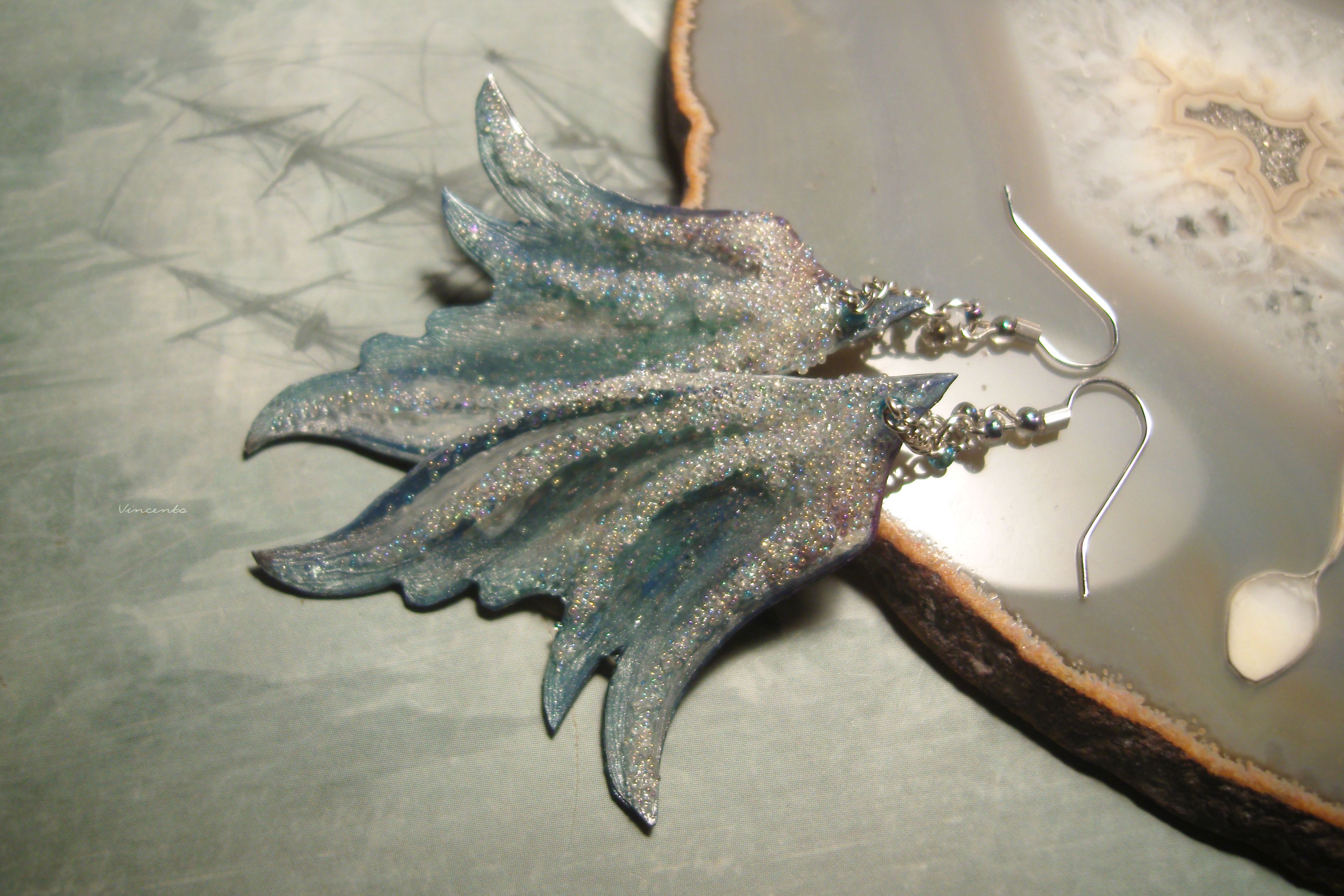 - Искристые, совершенно волшебные серьги в виде изящных крылышек настоящей Морозной Феи, какие обитают далеко-далеко, среди полярных льдов и бескрайних снежных равнин...