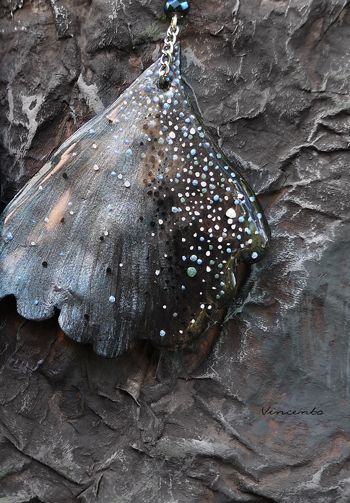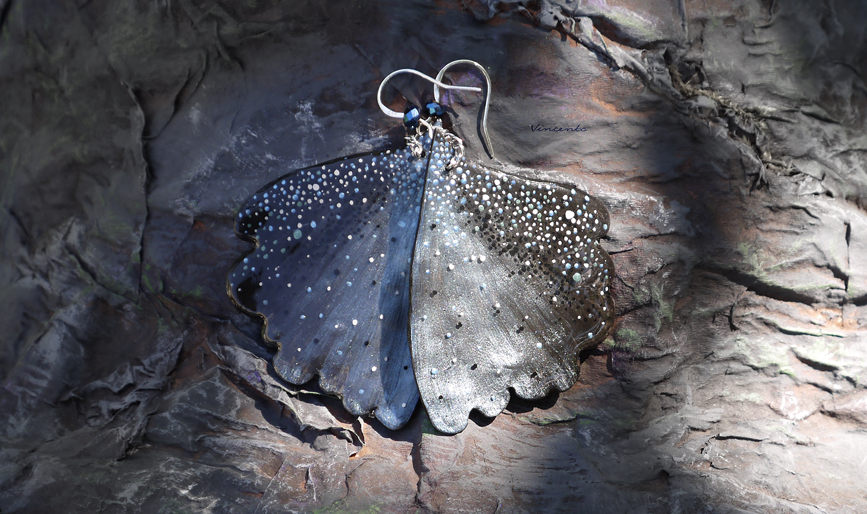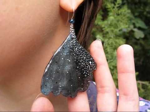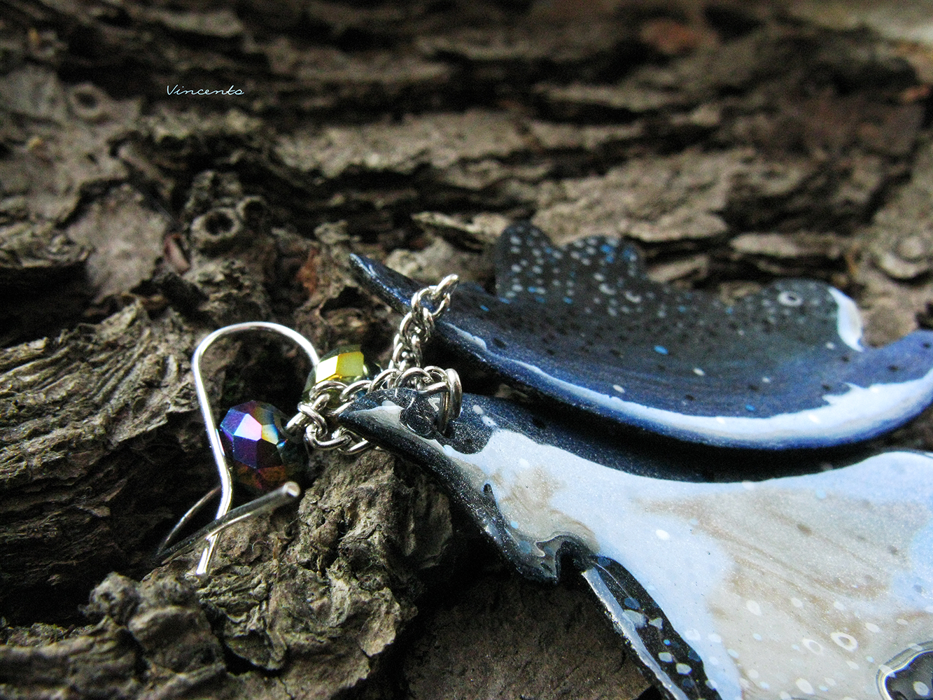 - "Крылышки Туманной Феи" - необычные крупные серьги в виде крыльев волшебного существа из Сумрачного Леса. Вы, конечно, слышали о Туманных Феях? Они обитают на берегах озёр и появляются на рассвете, когда густая пелена тумана покрывает водную гладь... А в середине лета - июле-августе - они сбрасывают свои старые крылышки, чтобы успеть обзавестись новыми к холодам. Так вот эти самые крылышки мы и нашли во время недавней прогулки по Тропе Эльфов!