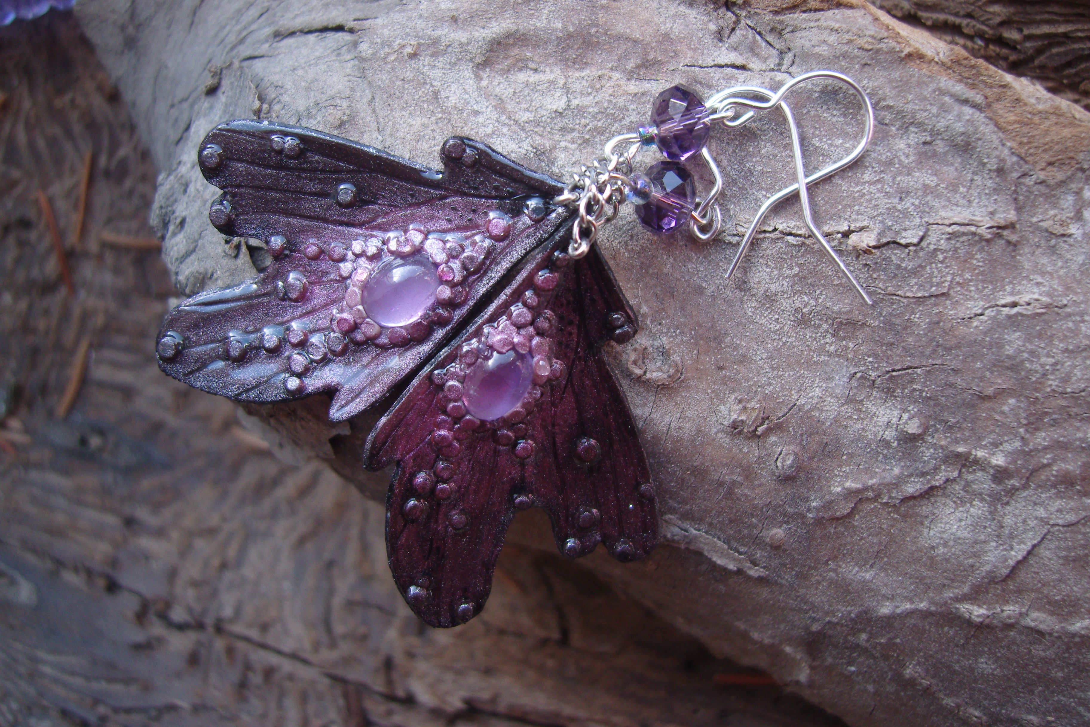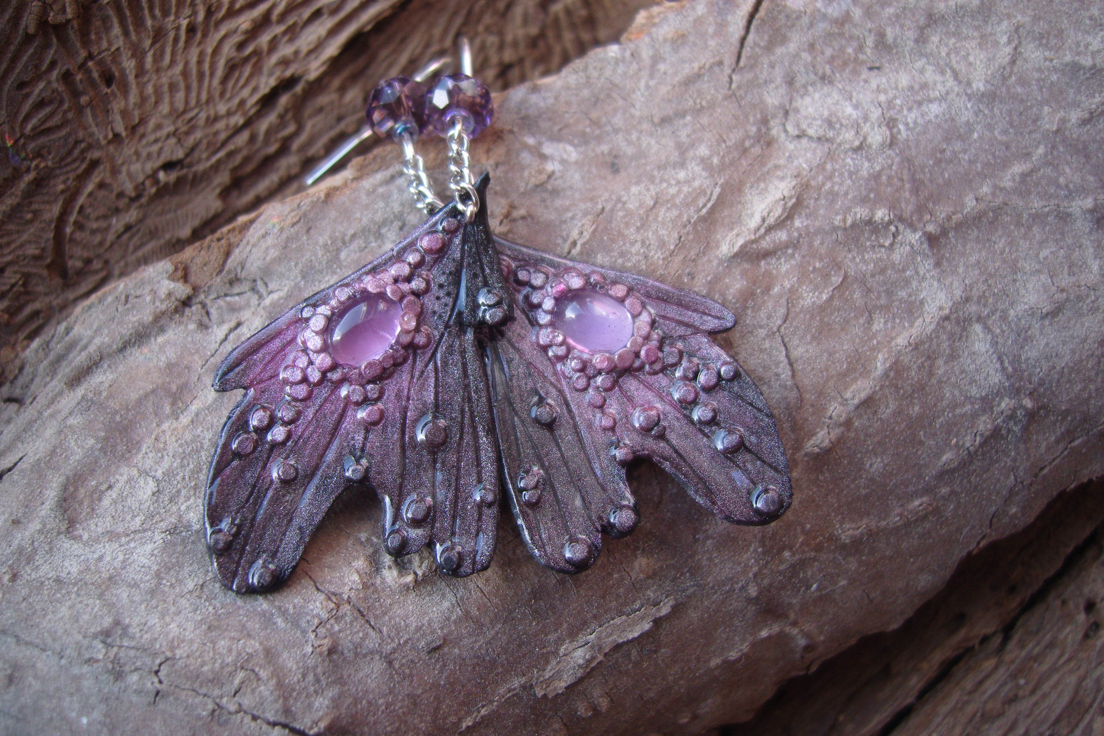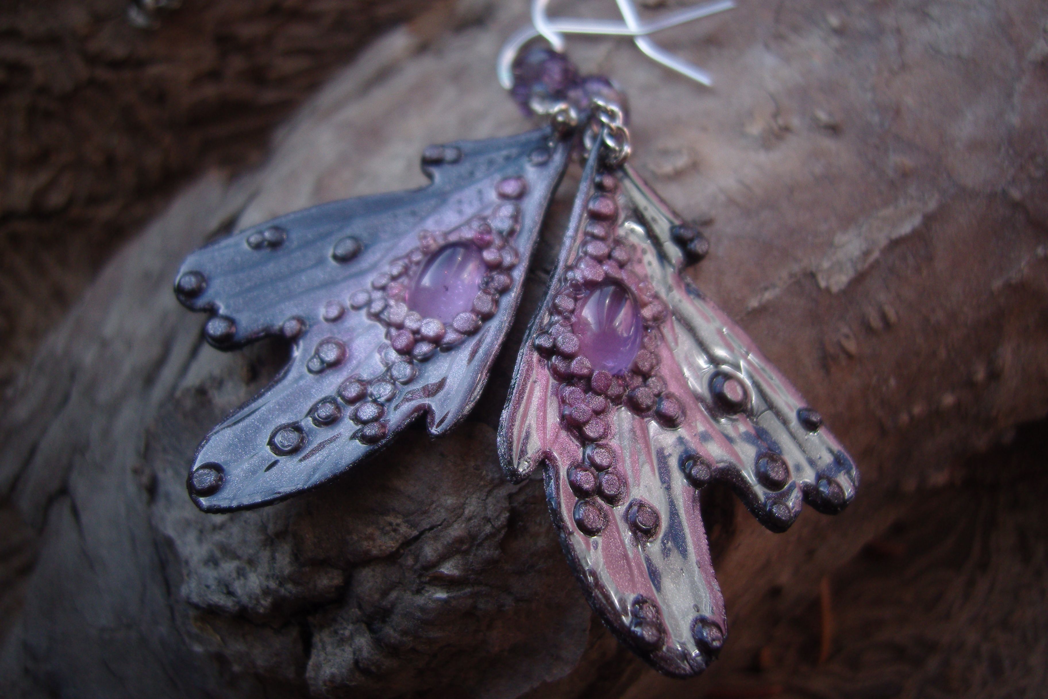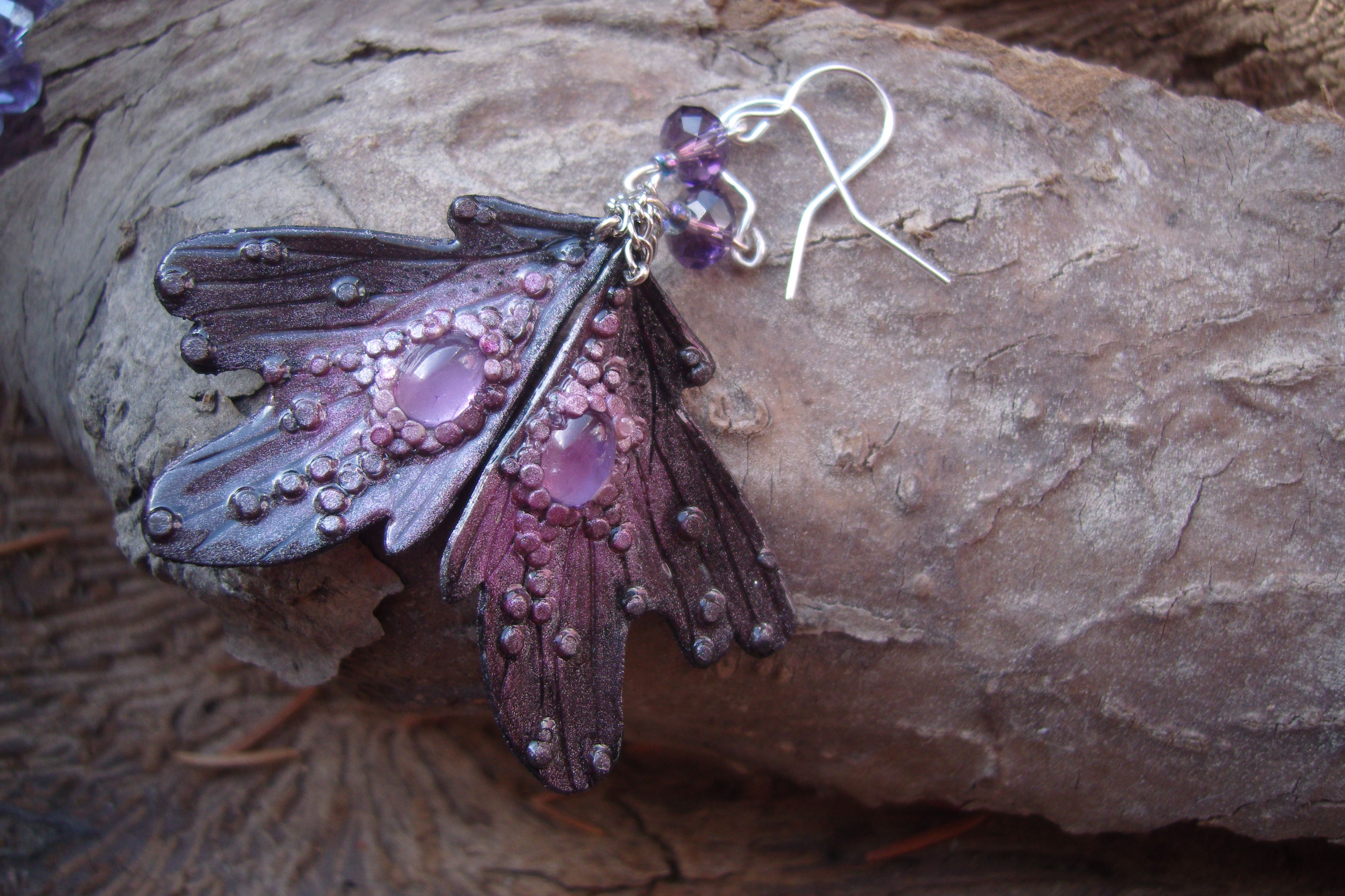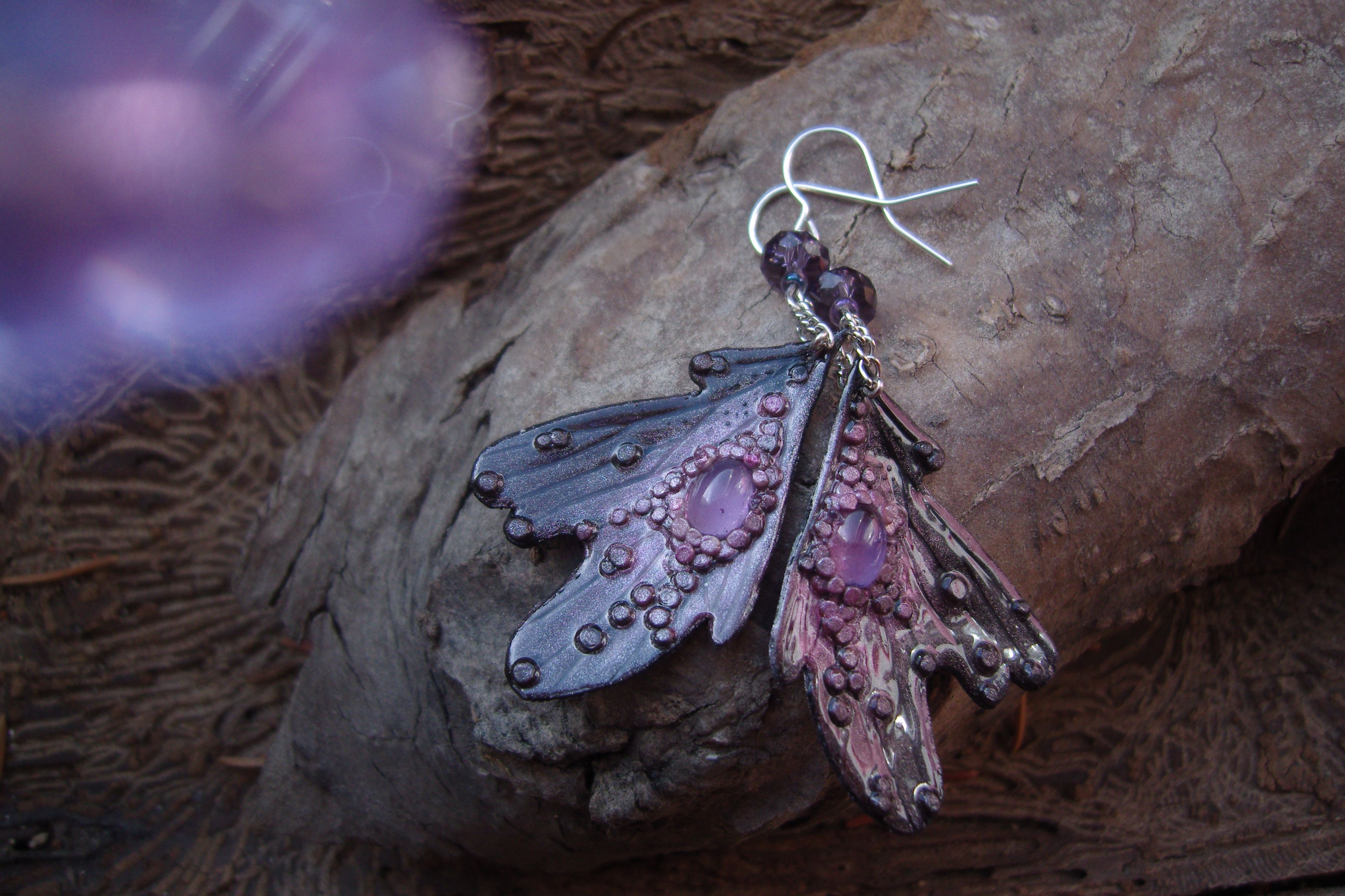- Изысканные и совершенно волшебные серьги в виде крылышек настоящей Причудливой феи, украшенные камешками натуральных аметистов.