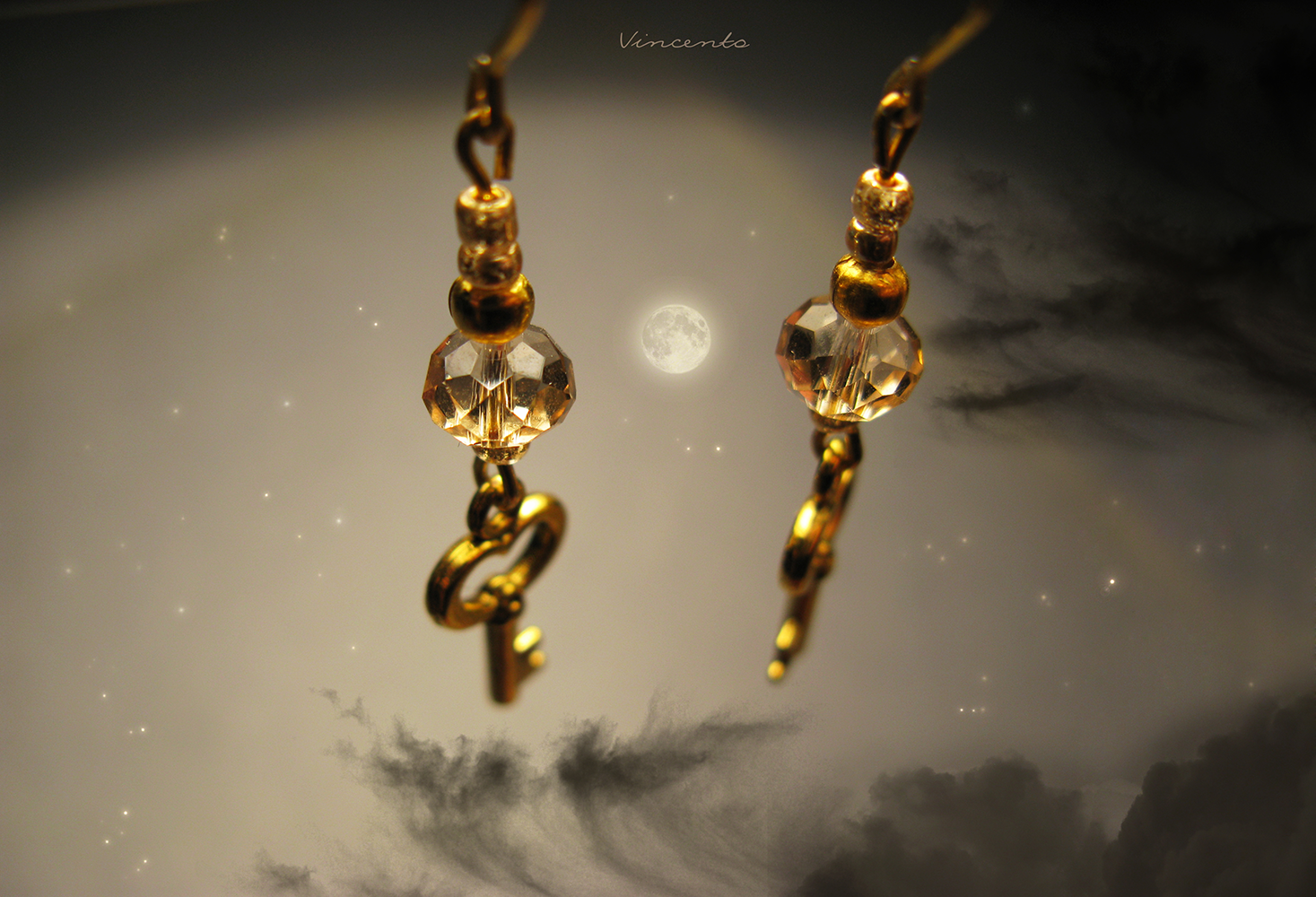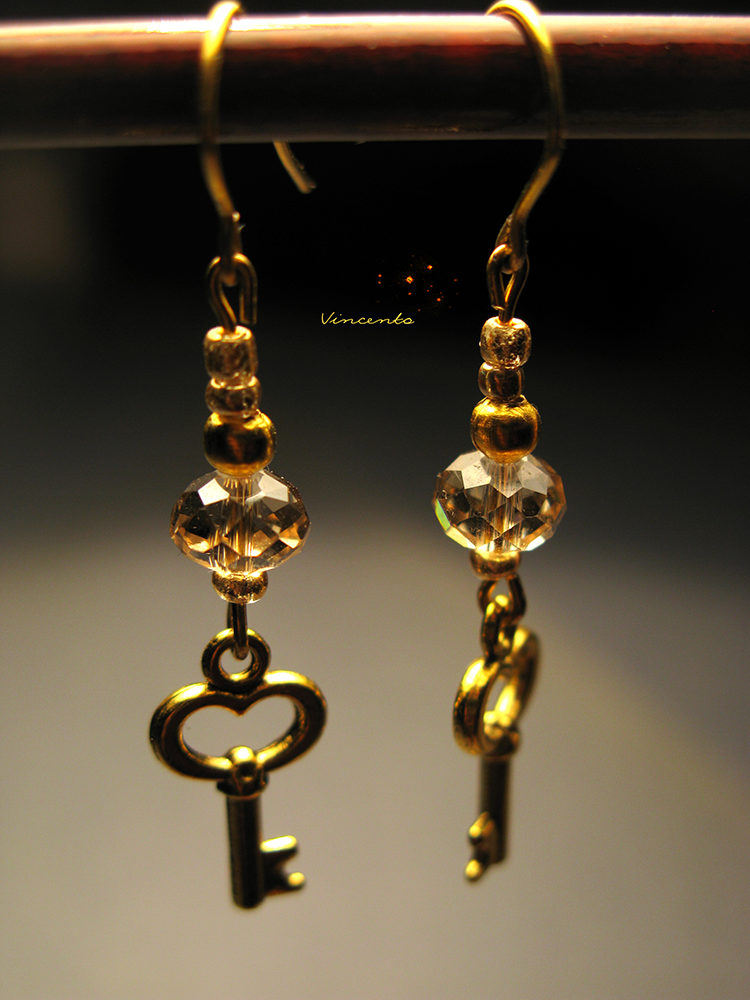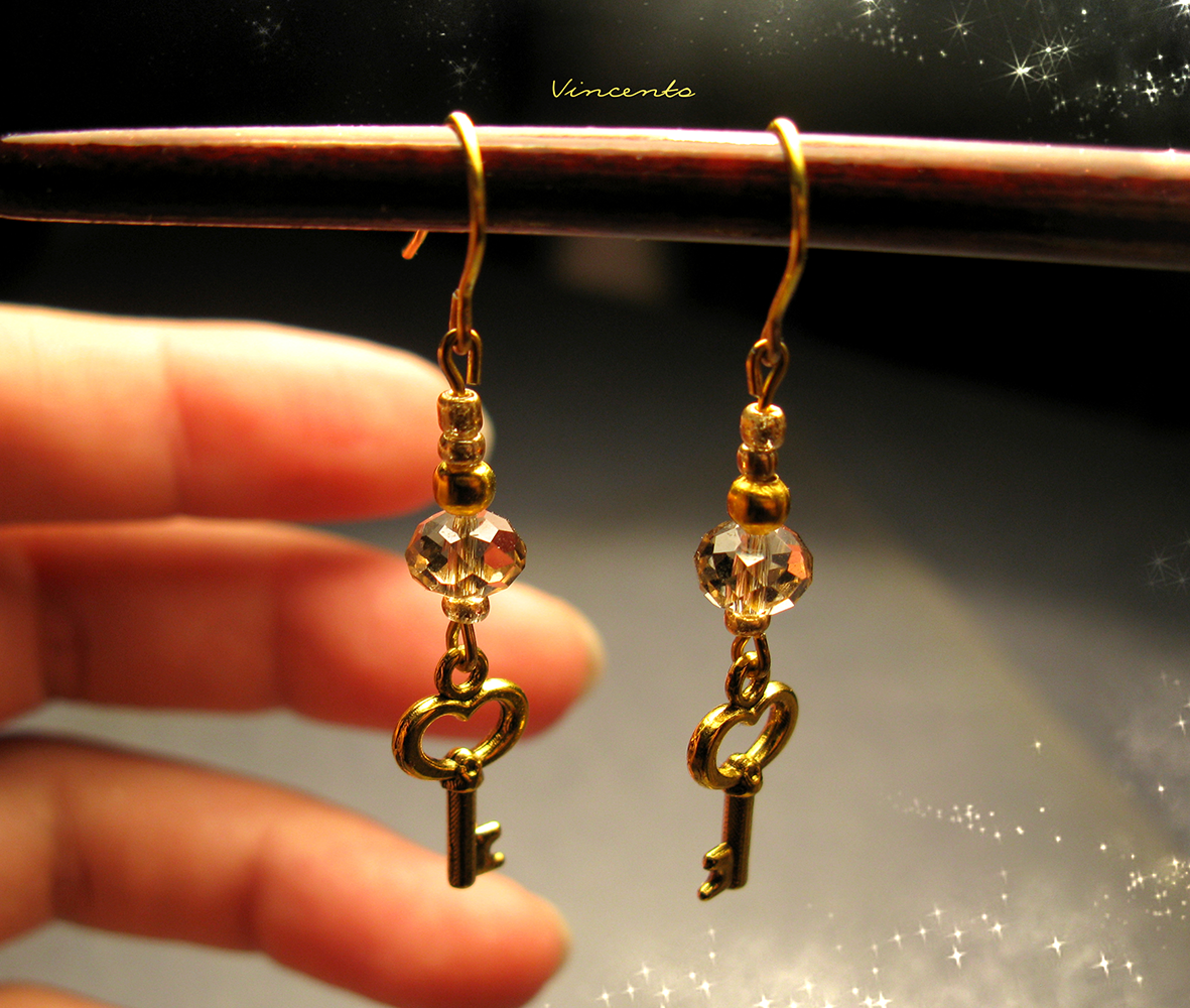 - Серьги "Золотой ключик" - романтичное украшение с золотыми ключиками и хрустальными бусинами.