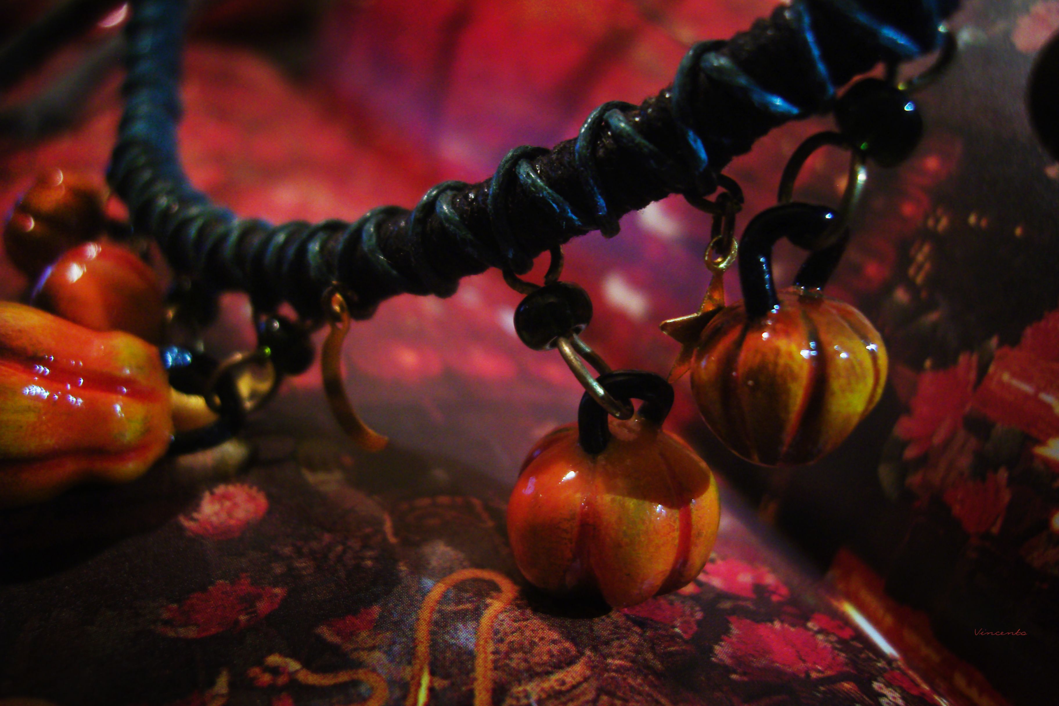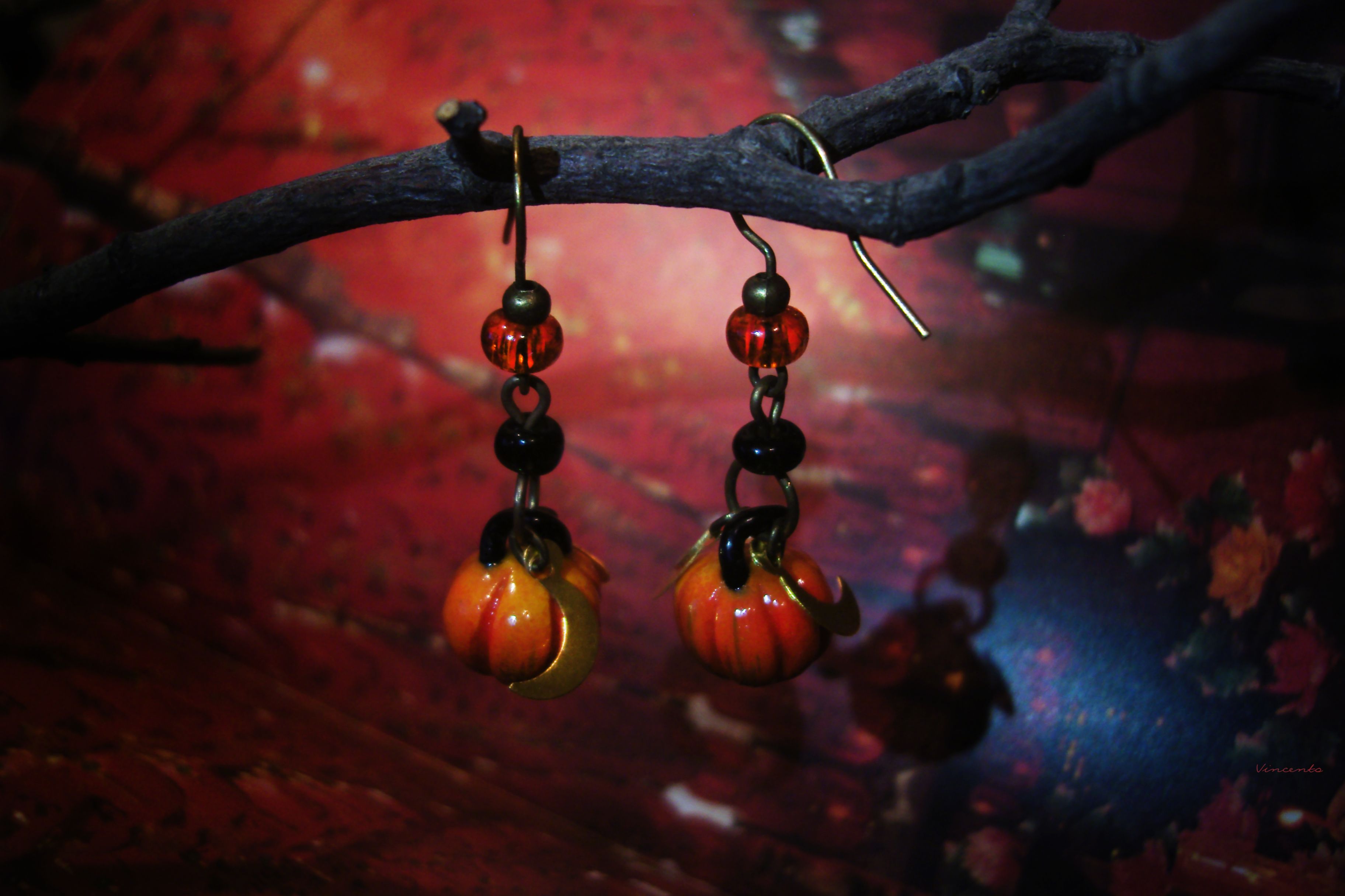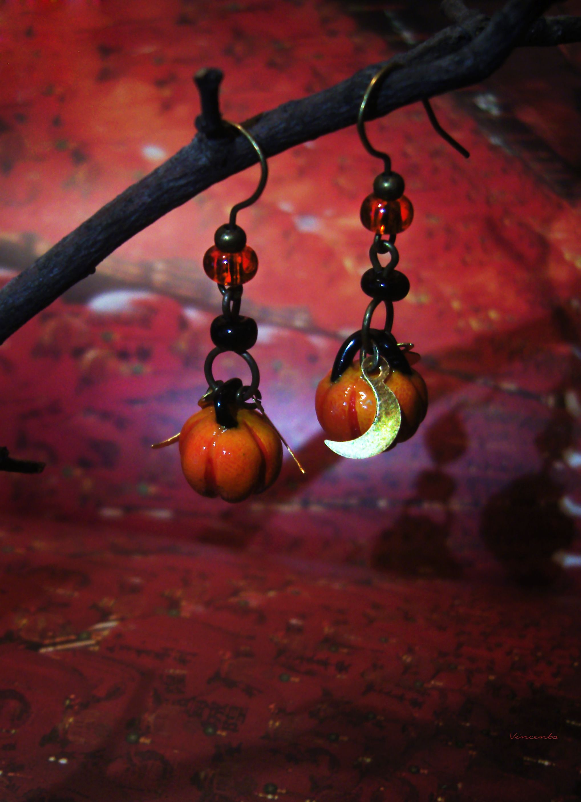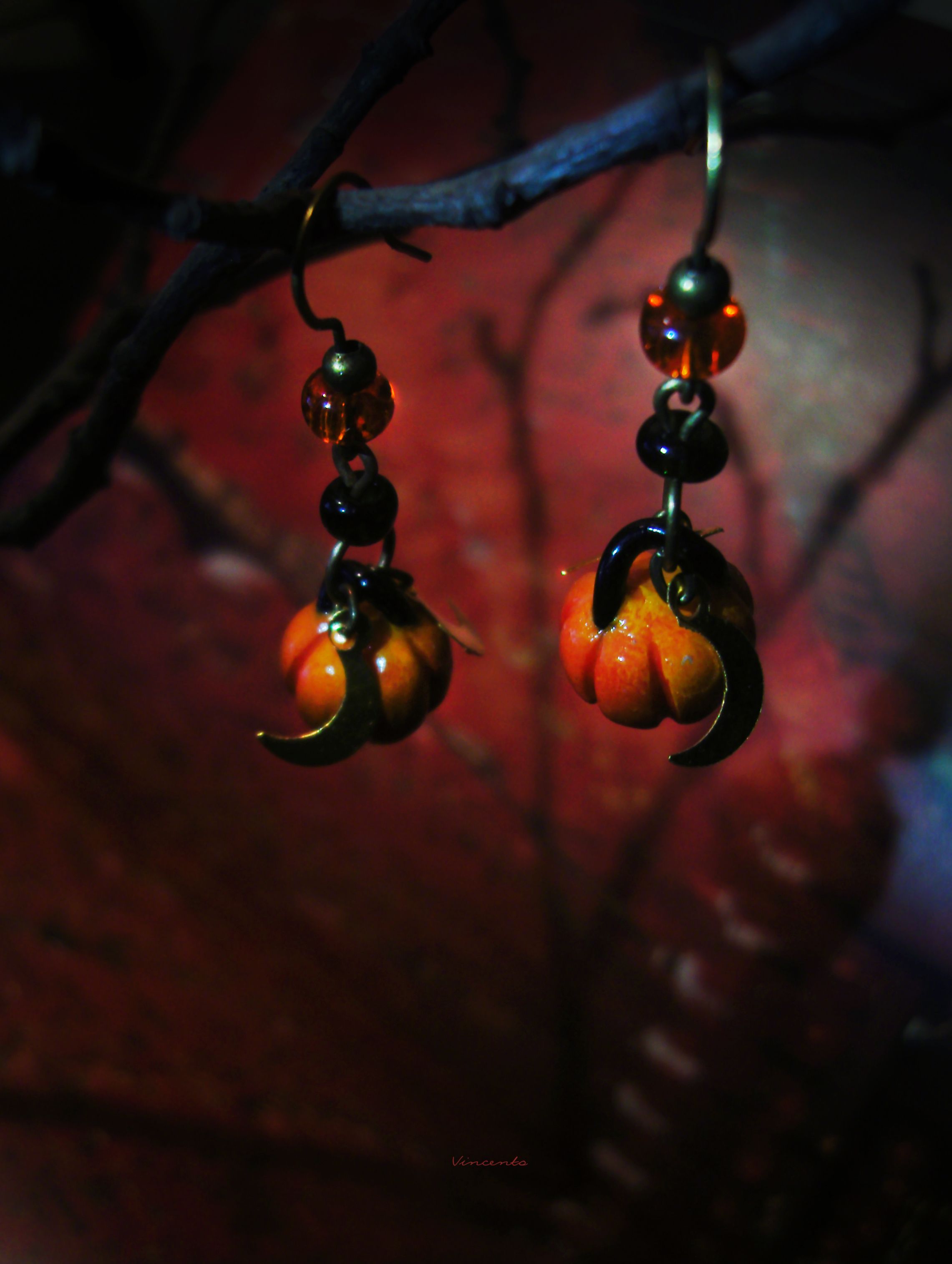 - Мистический комплект необычных украшений с подвесками в виде миниатюрных огненно-рыжих тыковок, сверкающих серпов месяца и тонких лучистых звёздочек к таинственному празднику Хэллоуина.