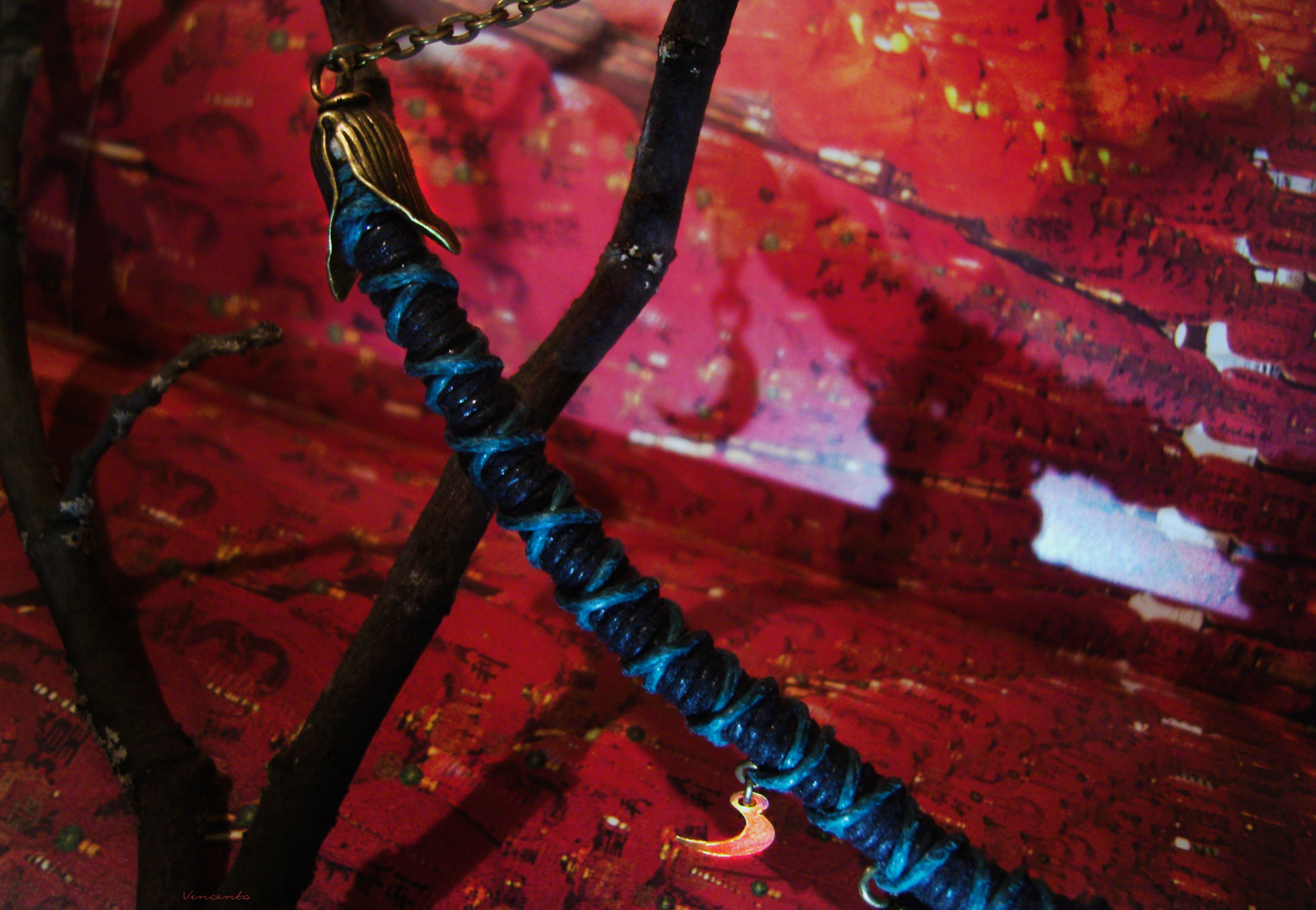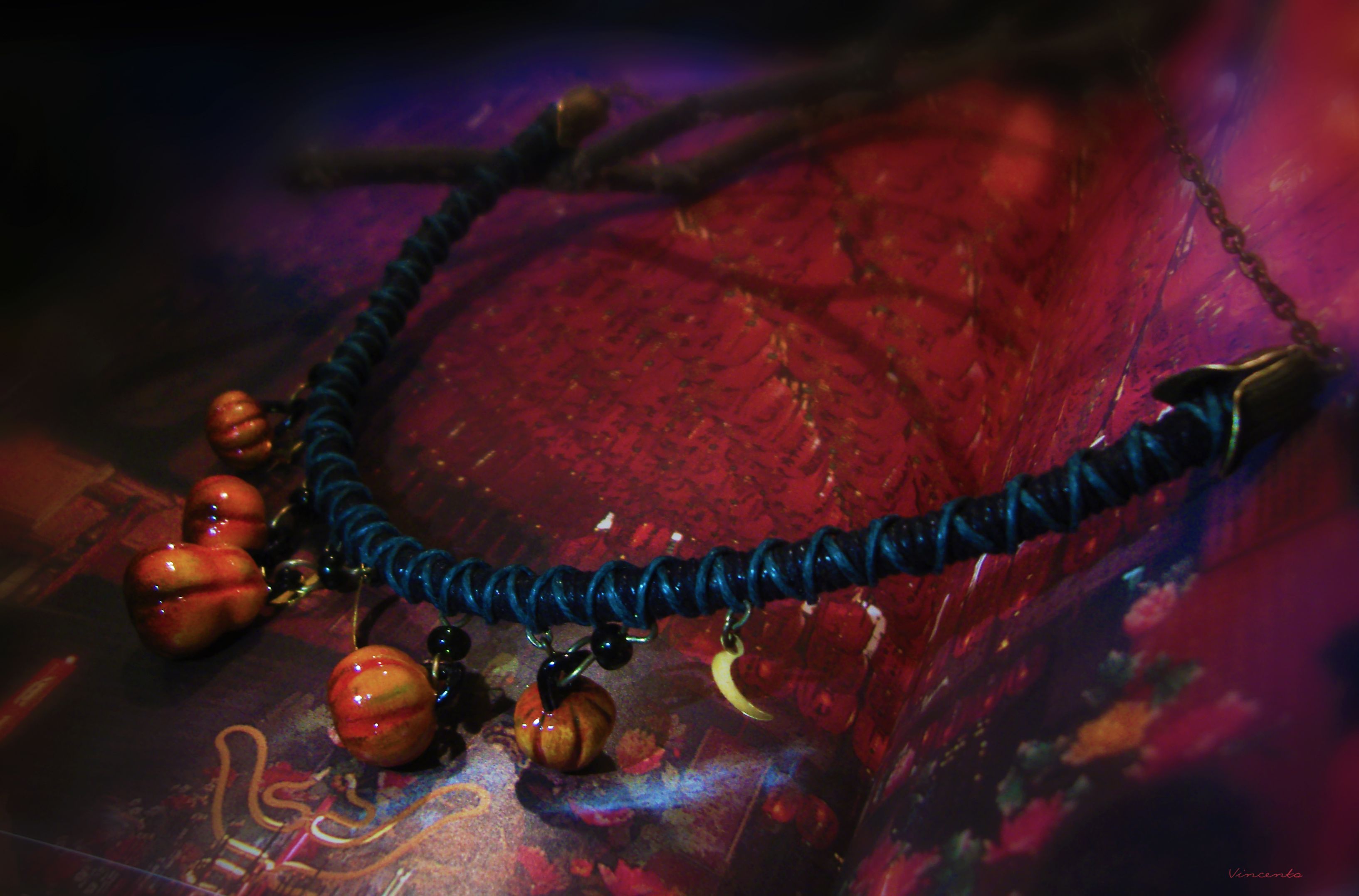 - Материалы: термоглина, акриловые краски, лак, стекловидная масса, металлическая фурнитура, стеклянные бусины, вощёный шнур.