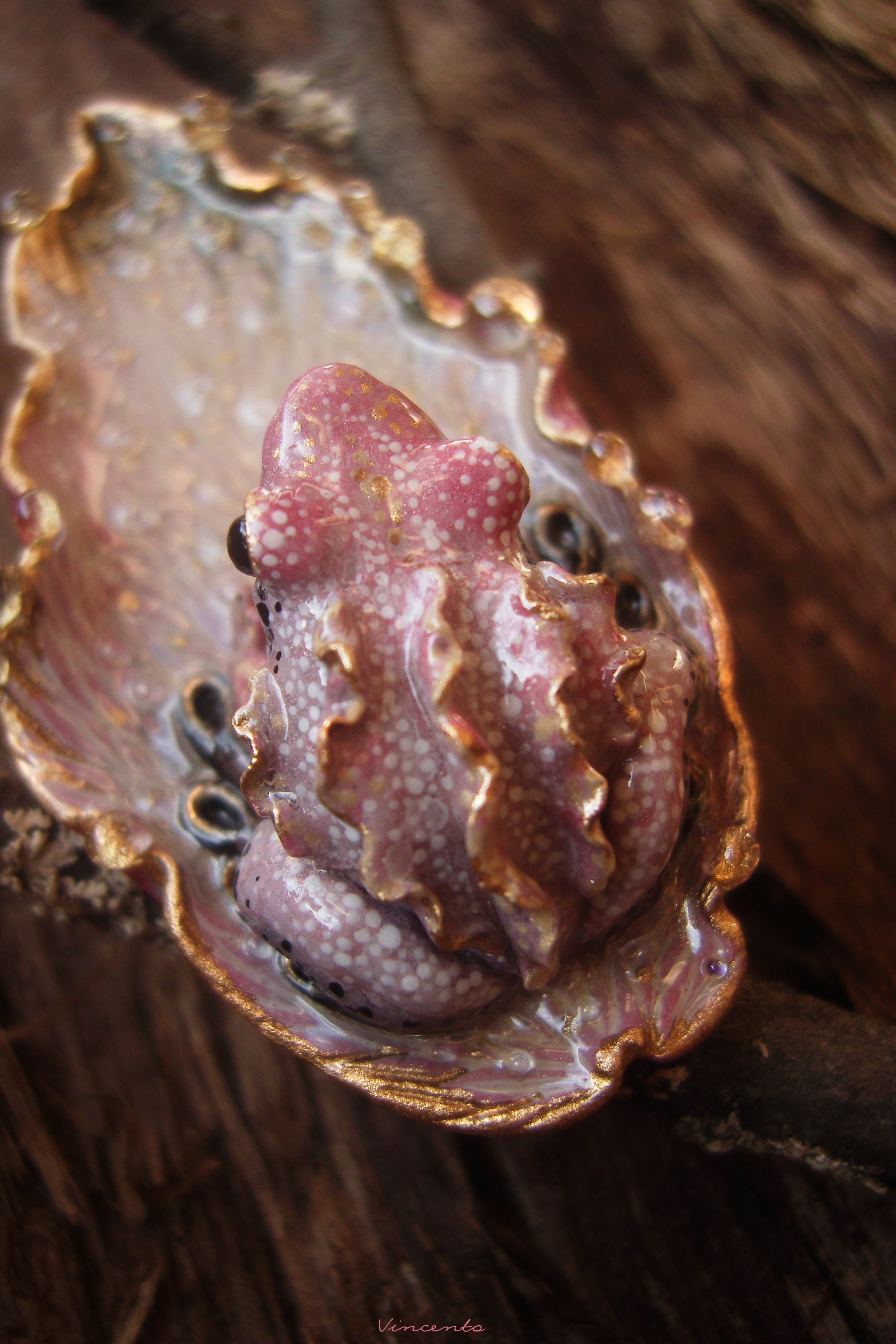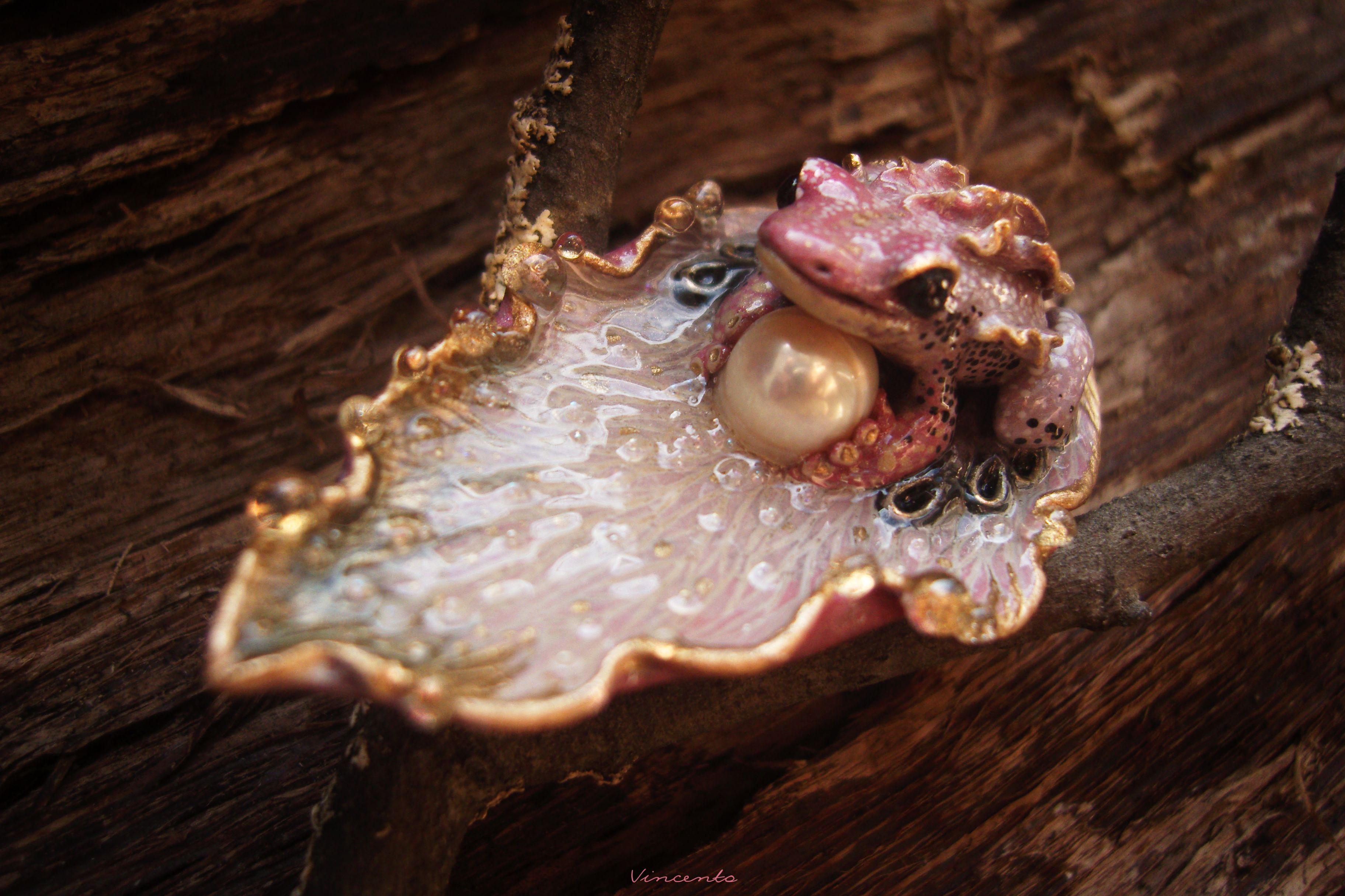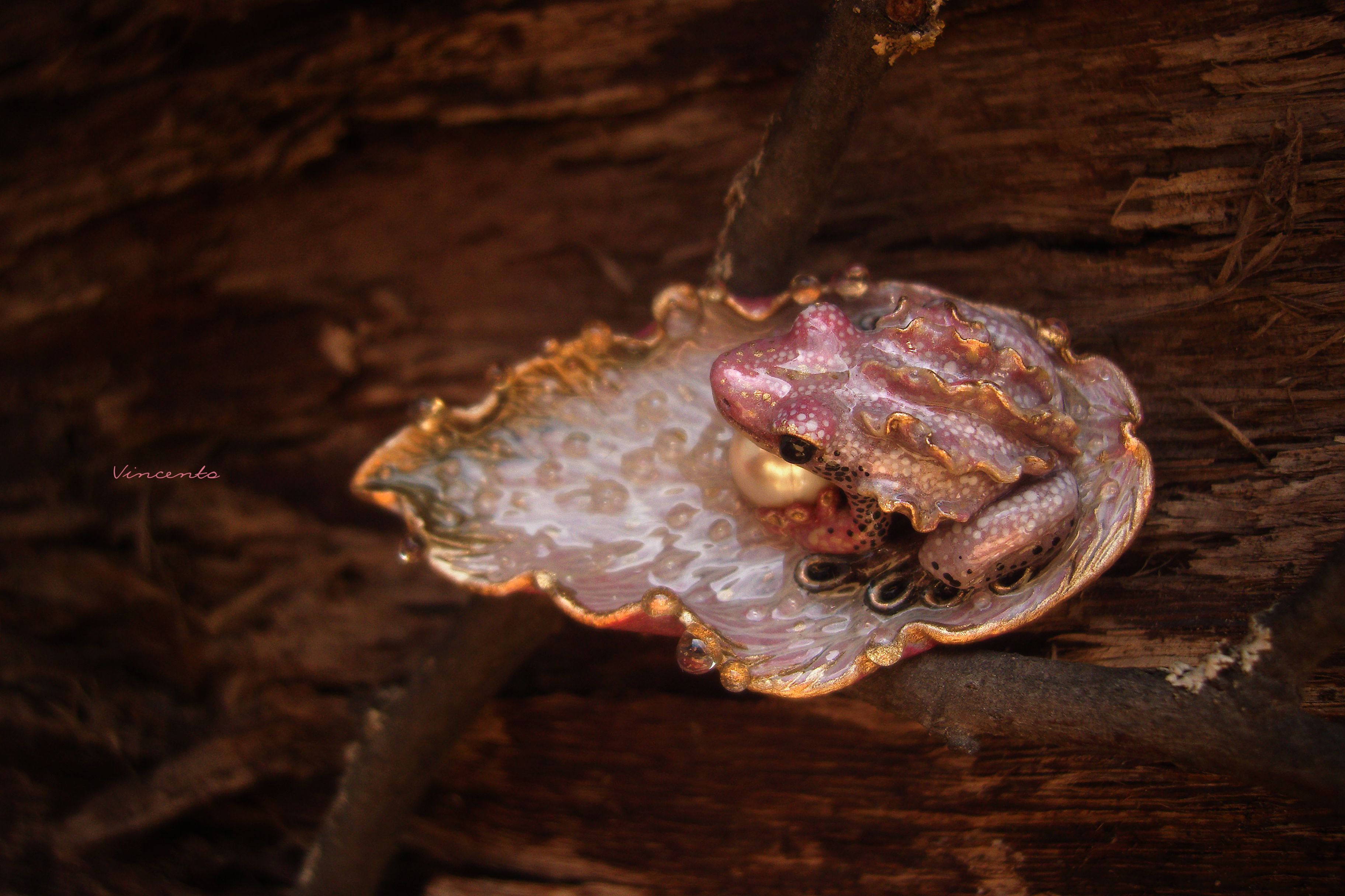 "Жемчужница Авроры", волшебная брошь с лягушкой