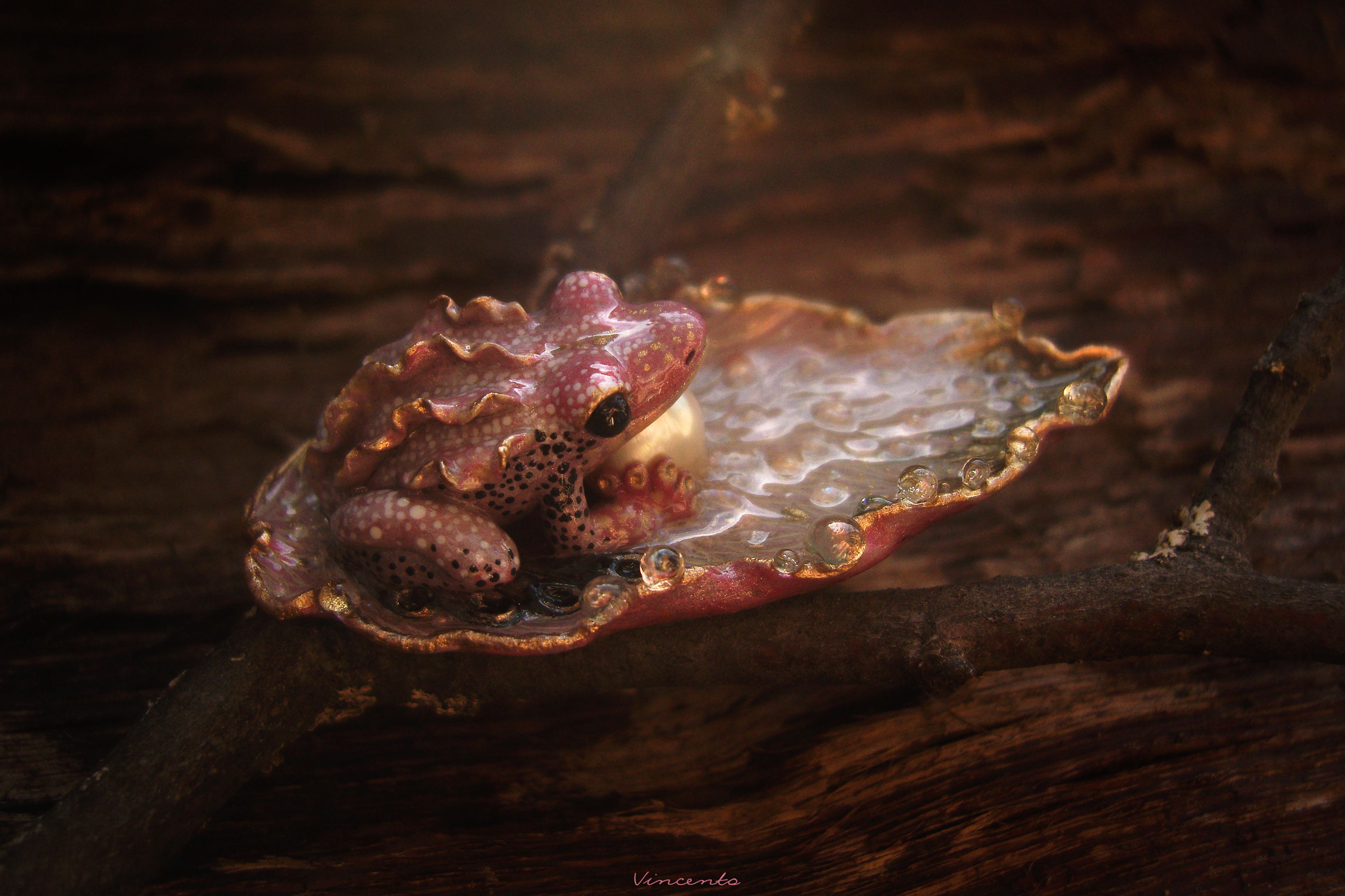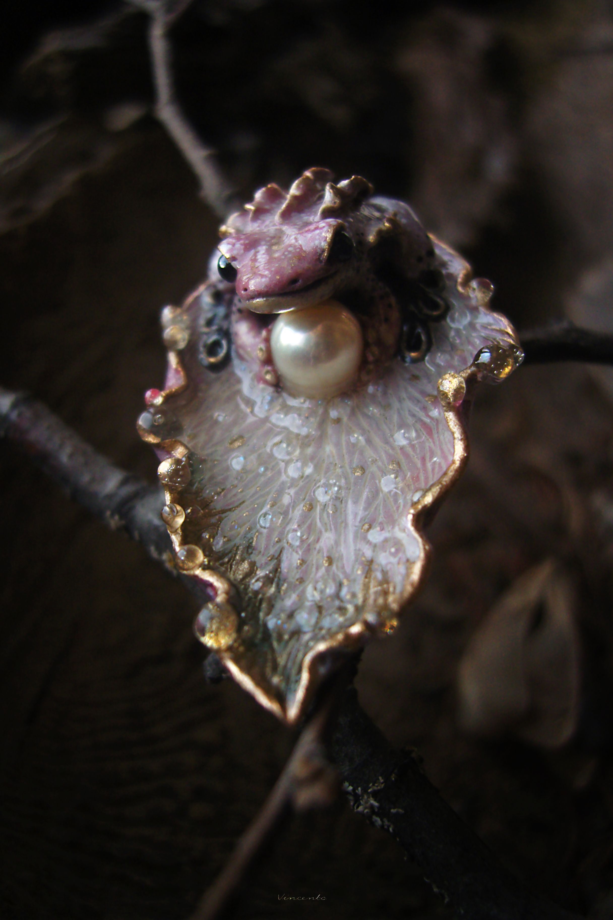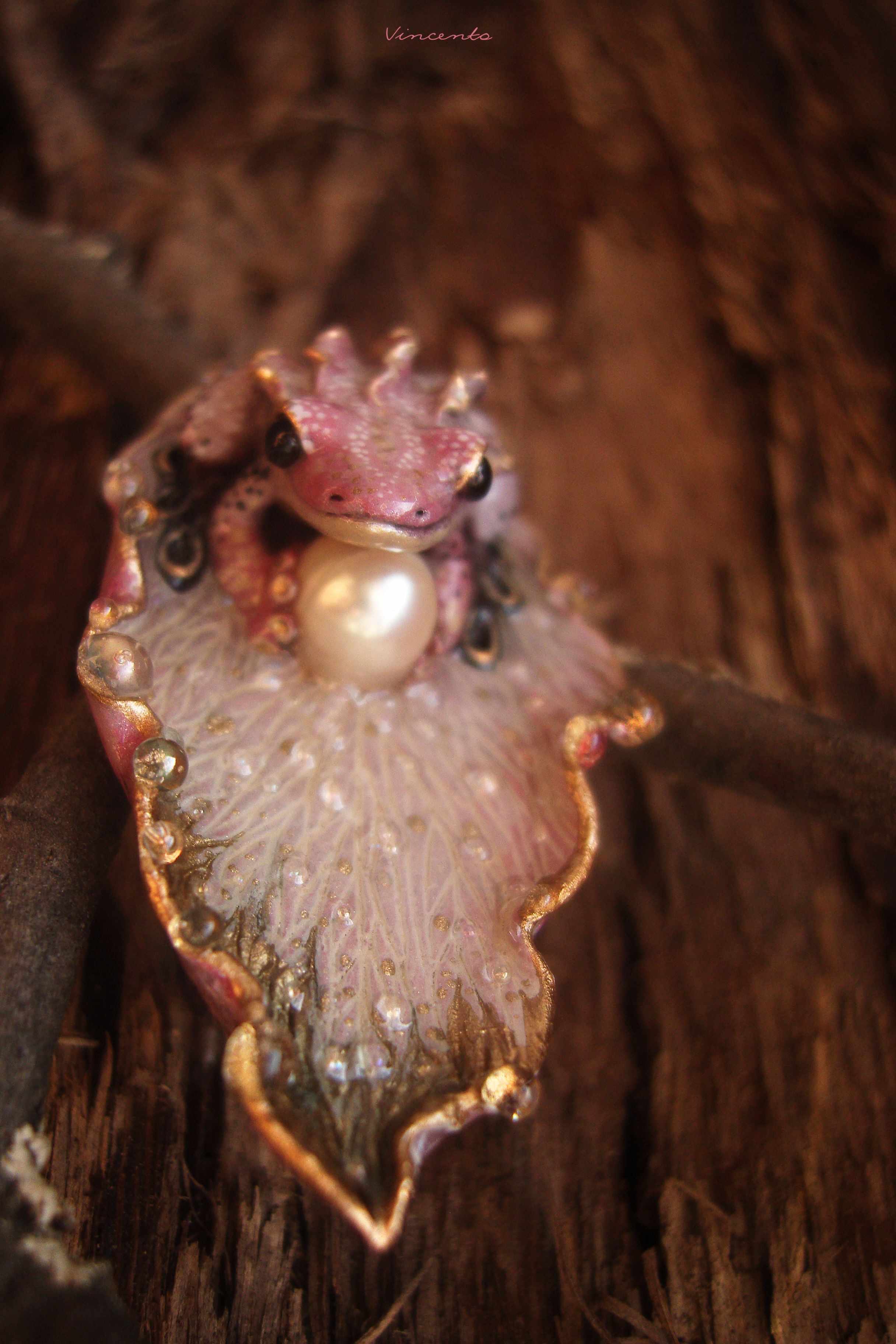"Жемчужница Авроры", волшебная брошь с лягушкой