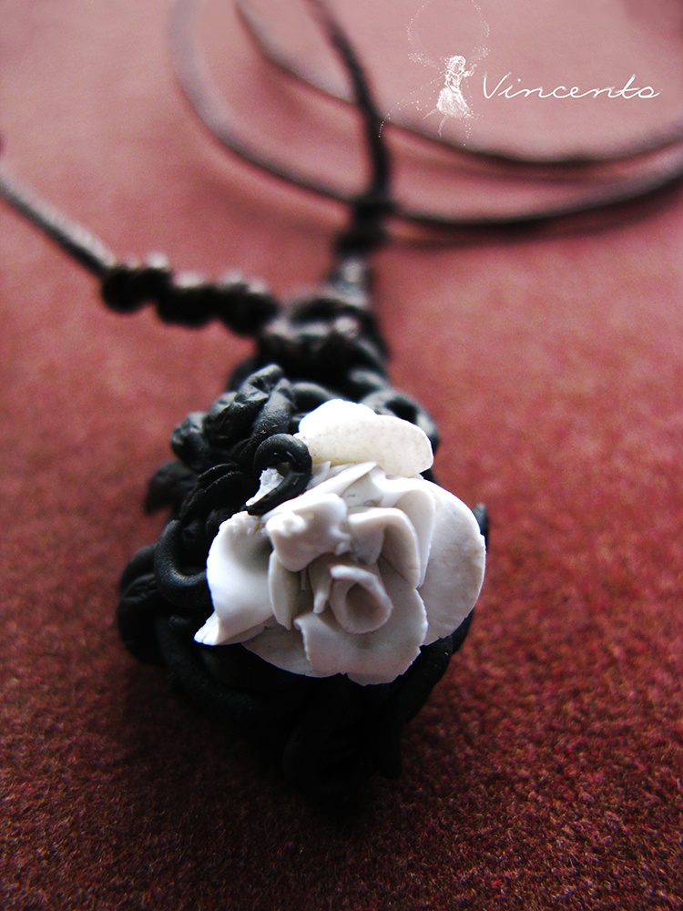 Зимняя Роза. Необычный кулон в виде розы из полимерной глины